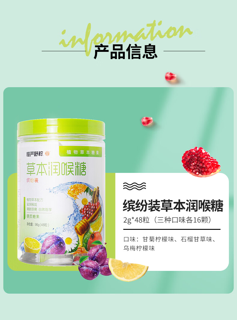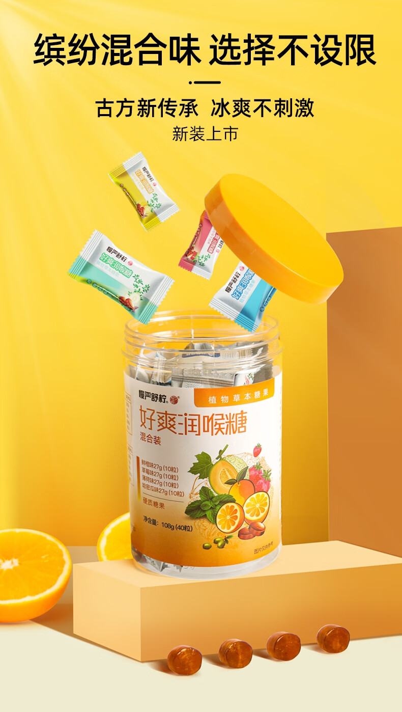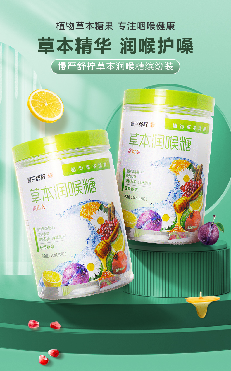 慢严舒柠润喉糖草本润喉咽喉教师润嗓子草本配方清凉清润糖果零食含片 3口味缤纷装96g*2瓶