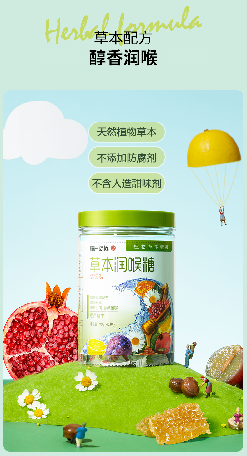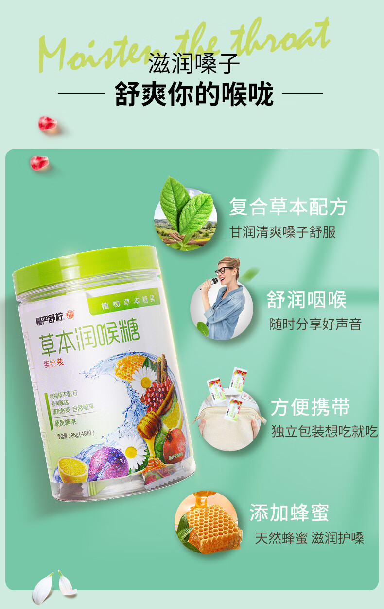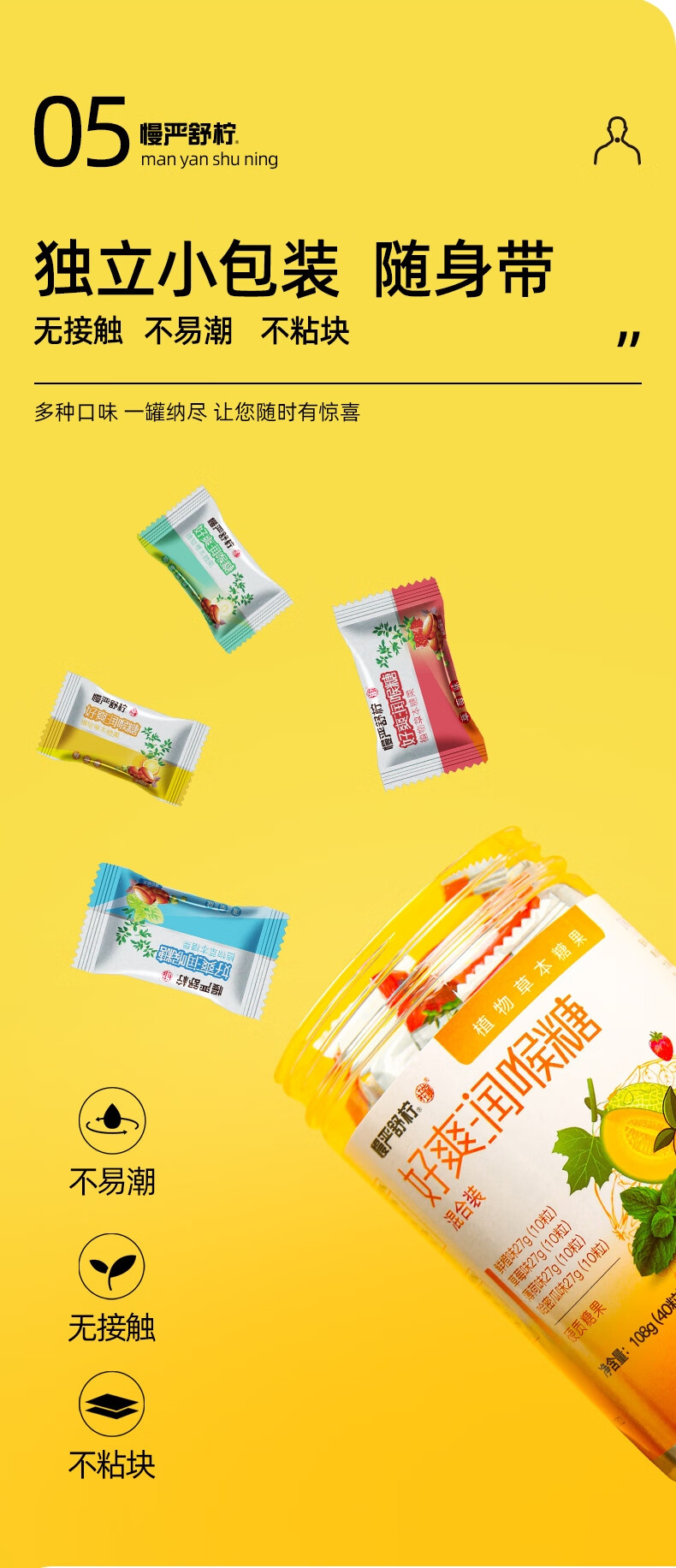 慢严舒柠润喉糖草本润喉咽喉教师润嗓子草本配方清凉清润糖果零食含片 3口味缤纷装96g*2瓶