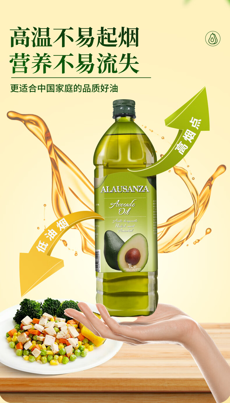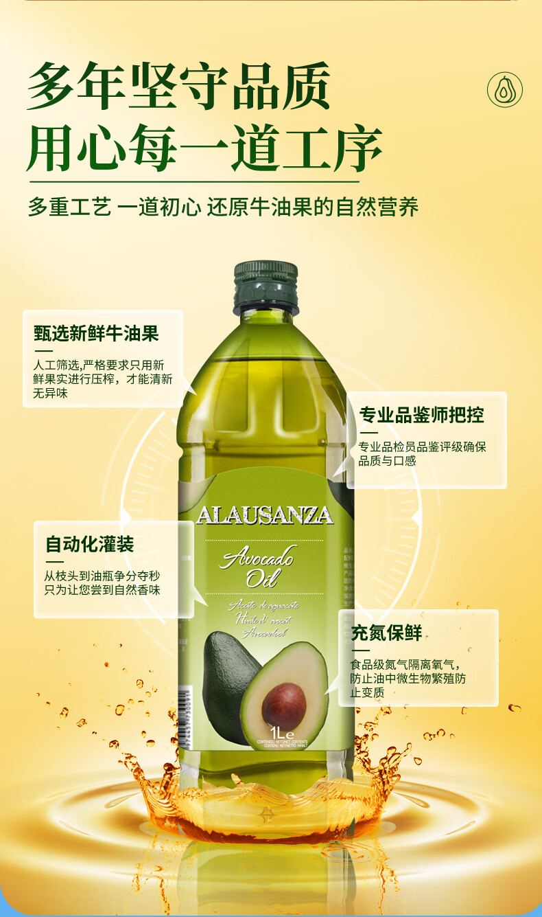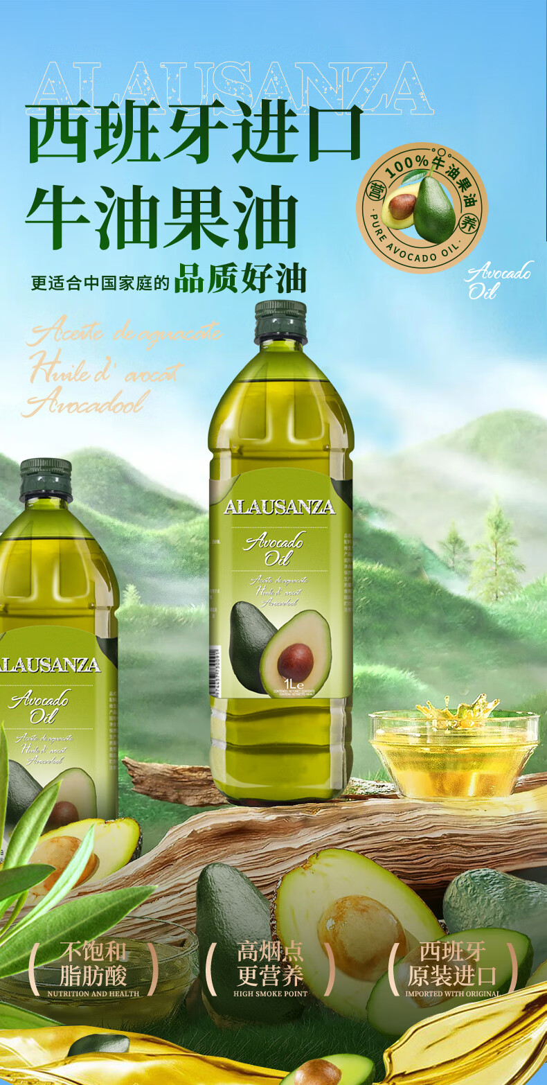 简觅ALAUSANZA牛油果油1L 西班牙原装进口 儿童热炒轻食凉拌鳄梨油