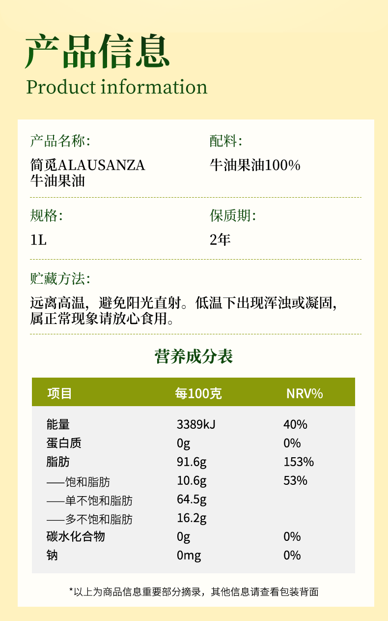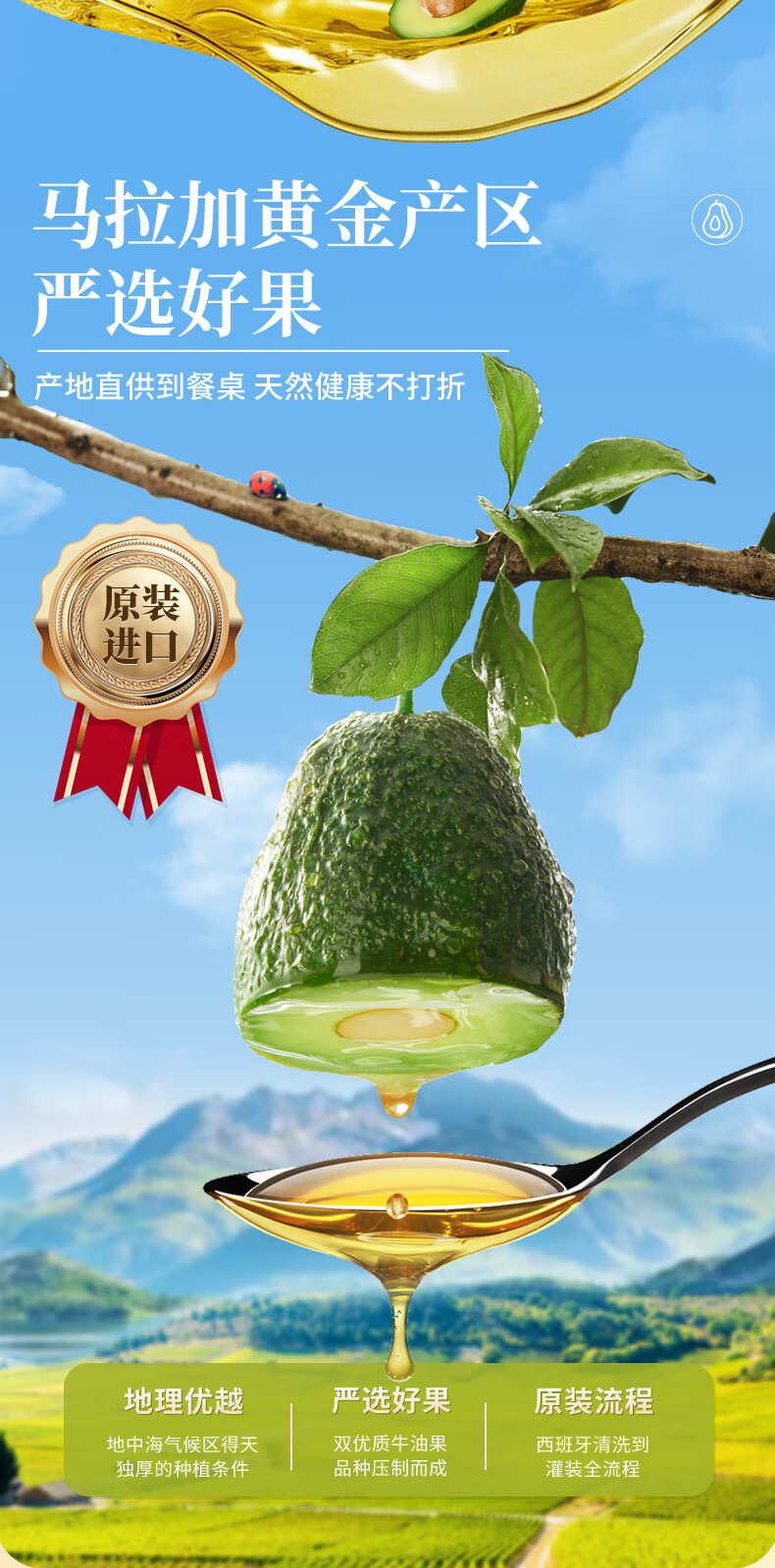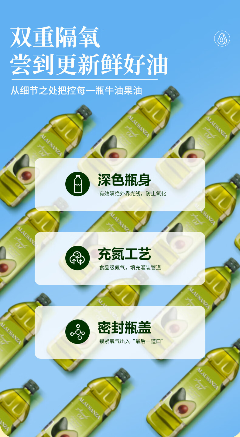 简觅ALAUSANZA牛油果油1L 西班牙原装进口 儿童热炒轻食凉拌鳄梨油