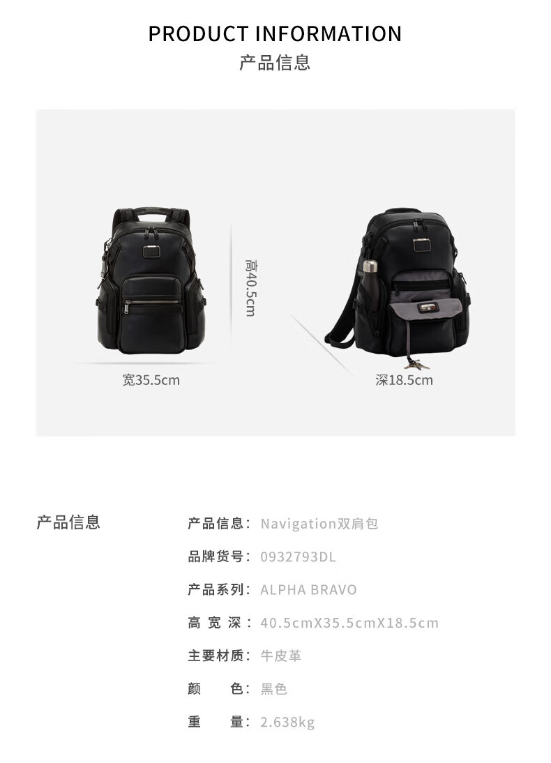 途明(TUMI)ALPHABRAVO高端大容量皮质男士双肩包0932789DL黑色