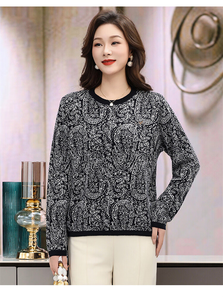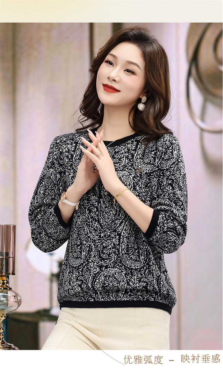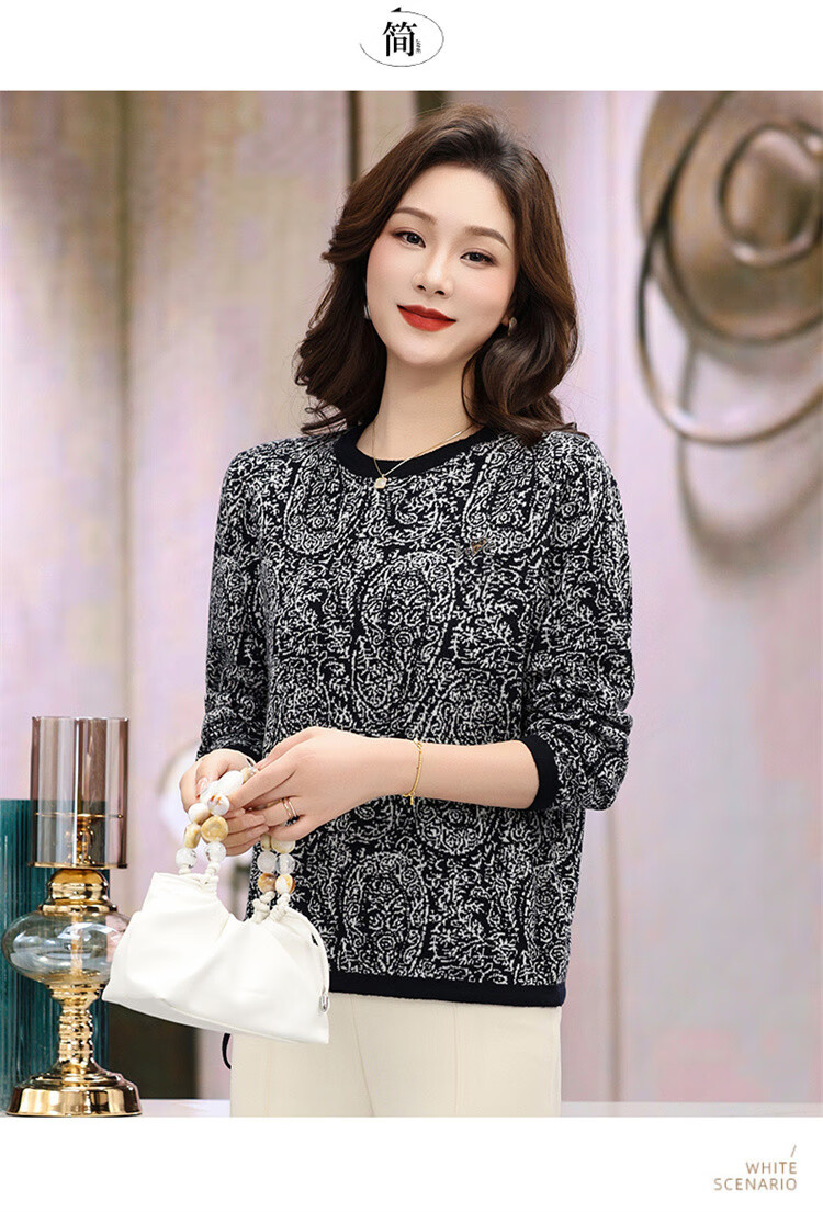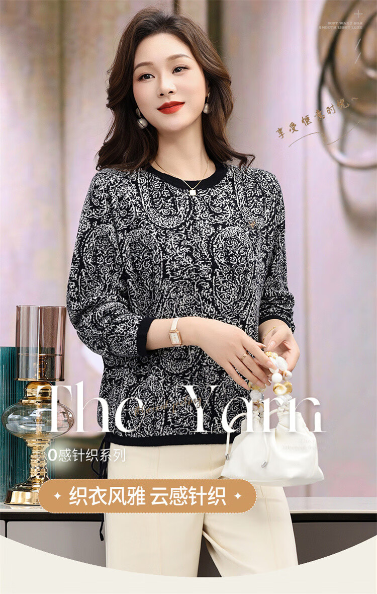 简狐春秋季妈妈装打底衫中老年女装长袖圆领毛衣气质减龄针织上衣