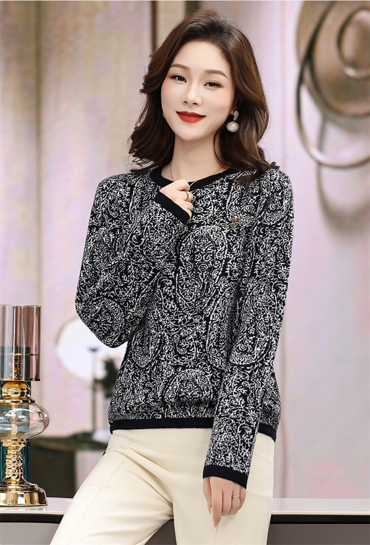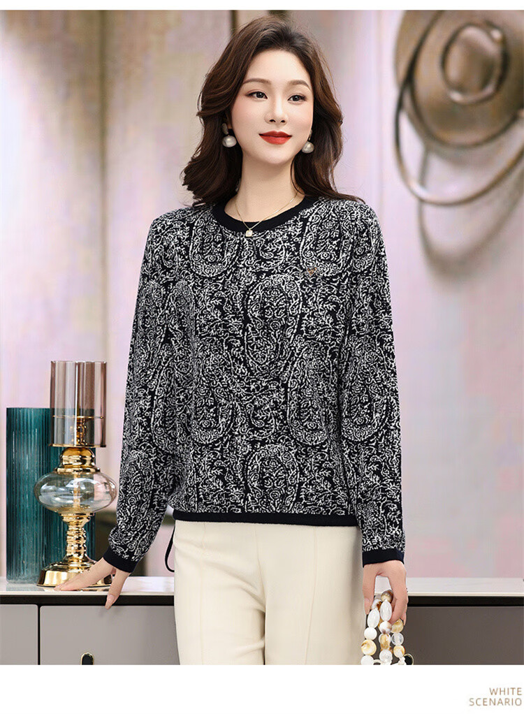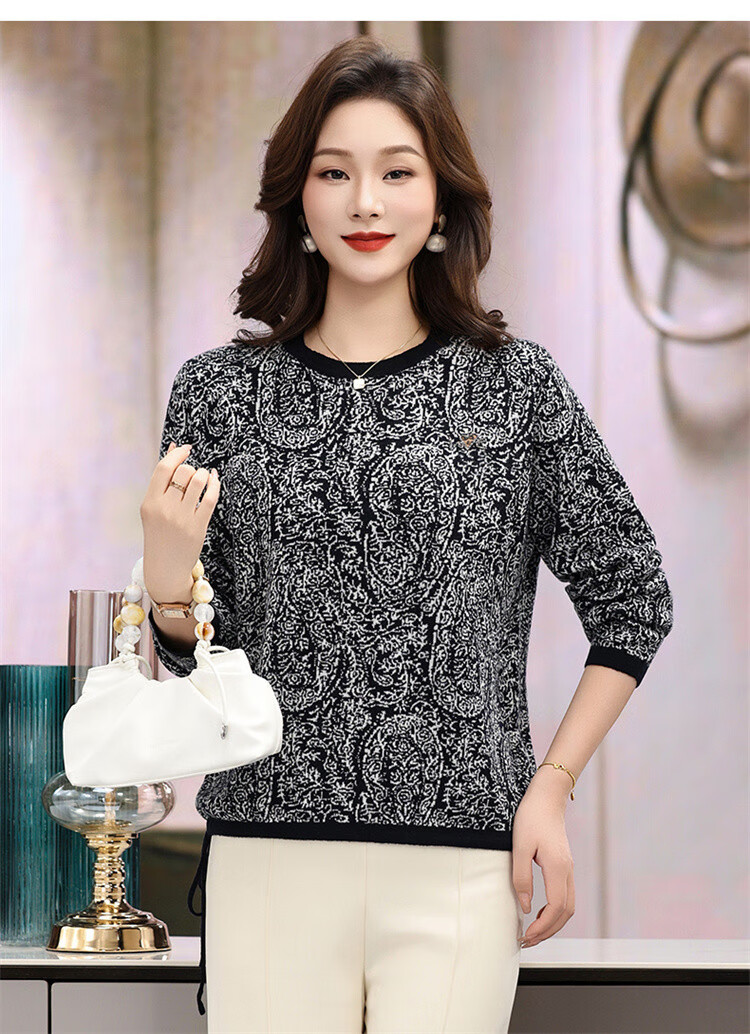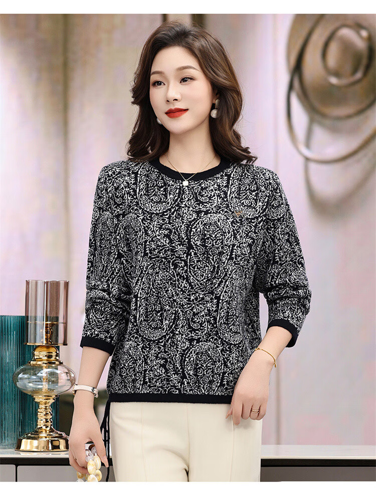 简狐春秋季妈妈装打底衫中老年女装长袖圆领毛衣气质减龄针织上衣