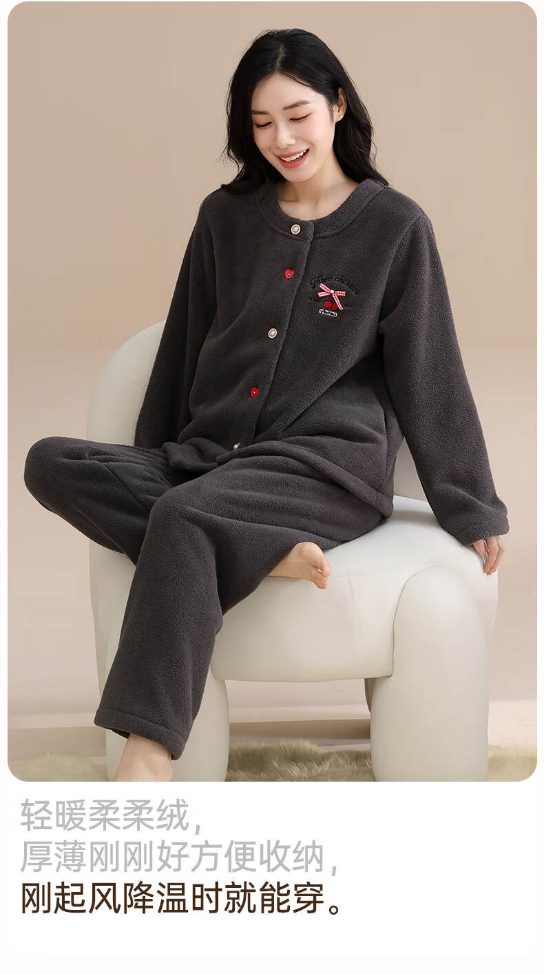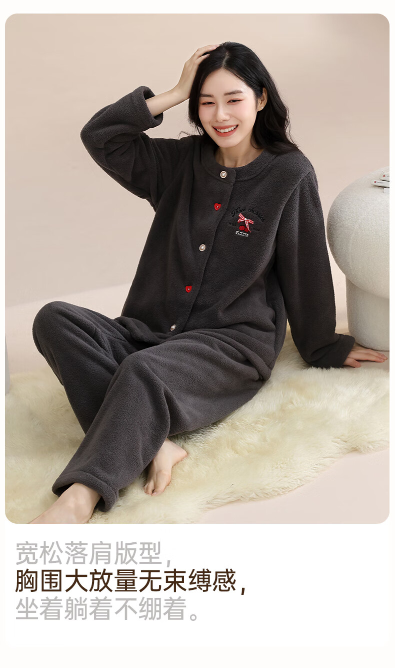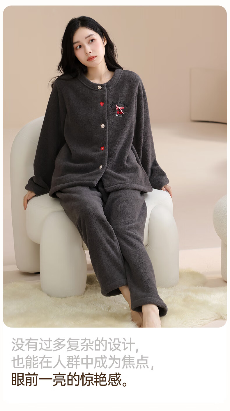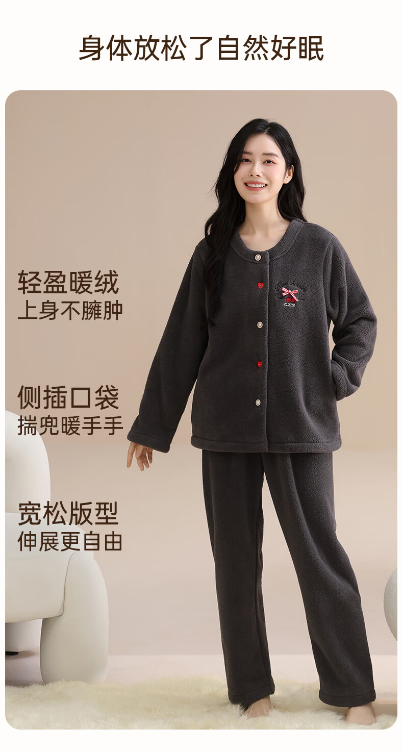 玛伦萨双面德绒睡衣女秋冬季2025新款可外穿保暖长袖长裤女士家居服 深灰 M
