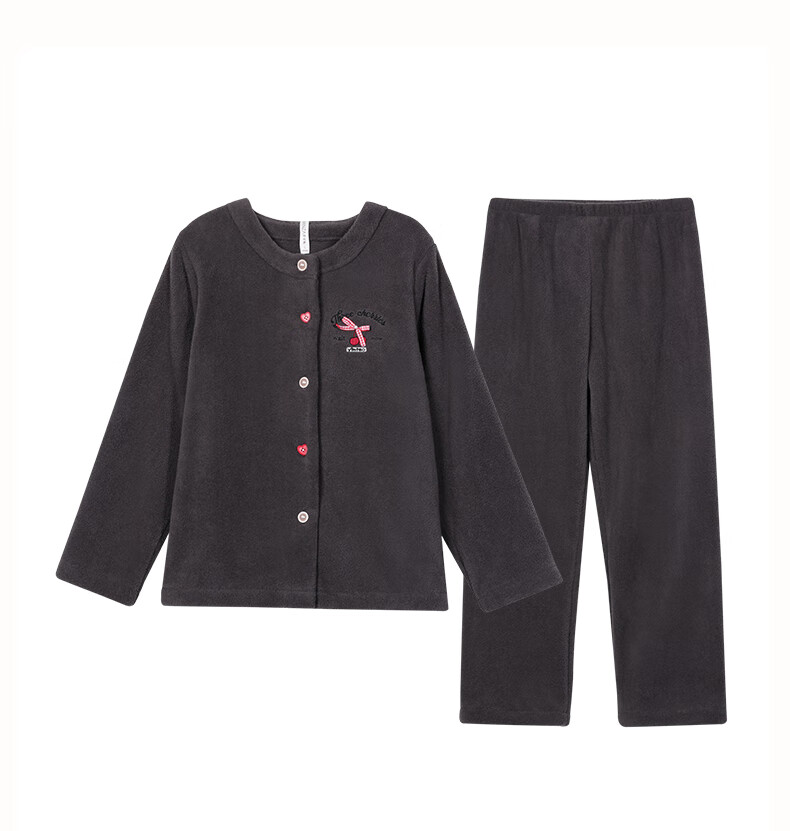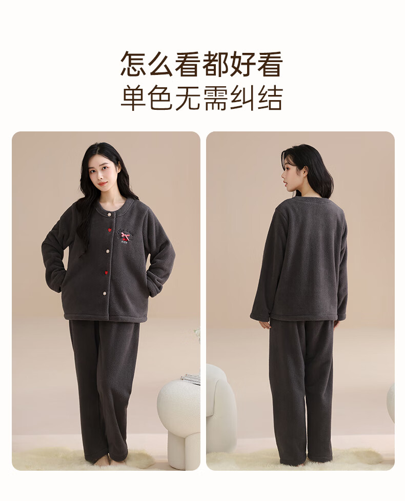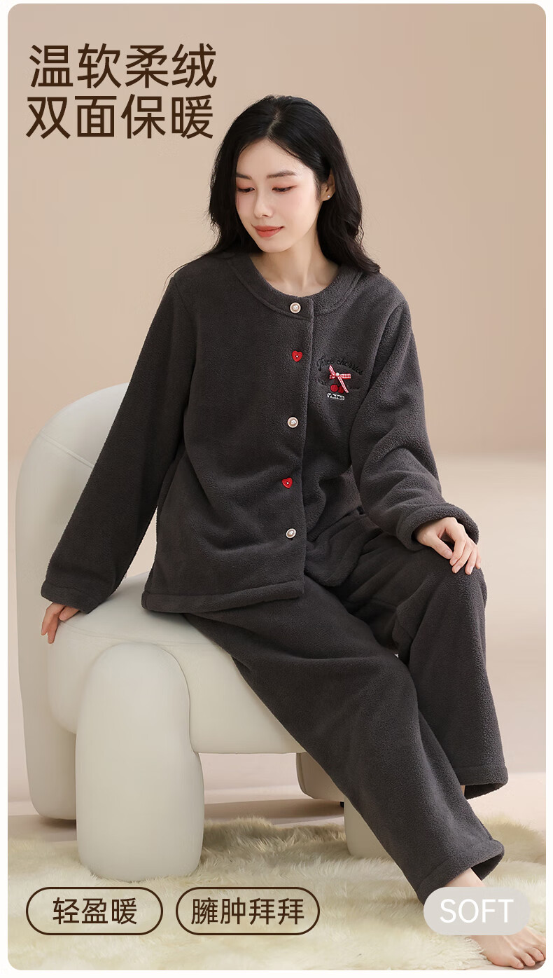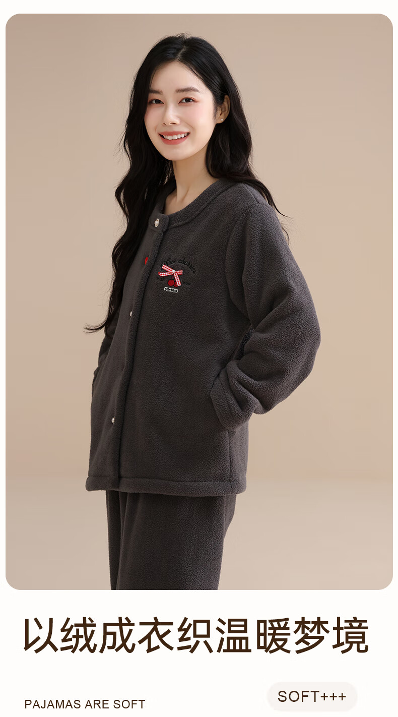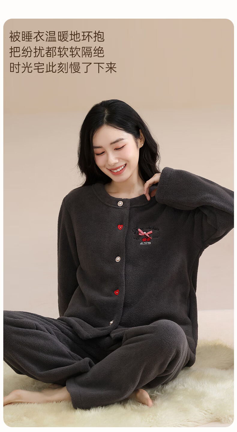 玛伦萨双面德绒睡衣女秋冬季2025新款可外穿保暖长袖长裤女士家居服 深灰 M