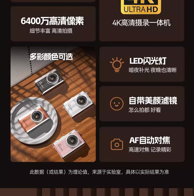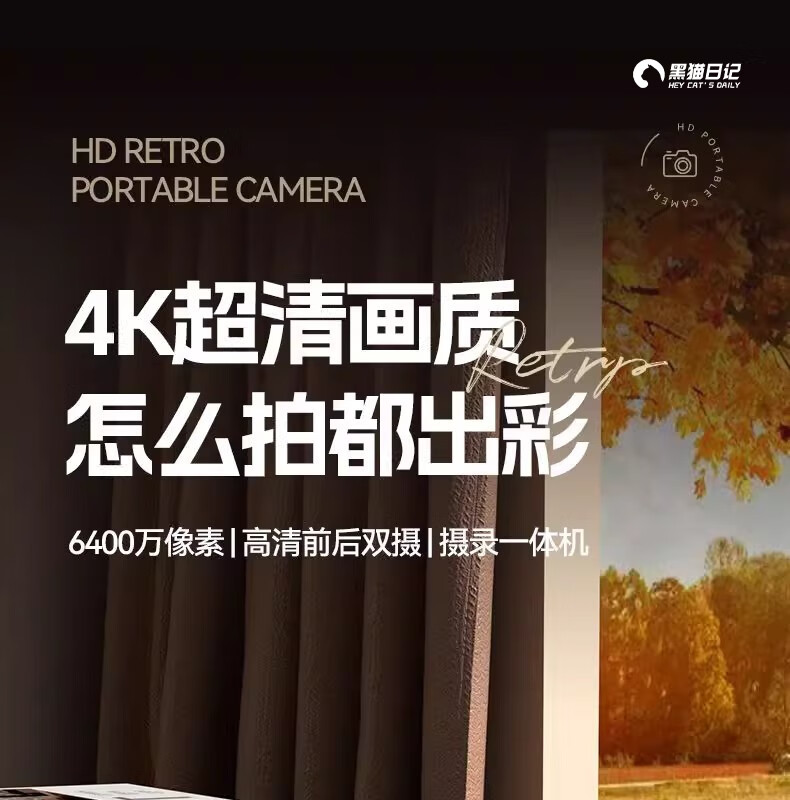 黑猫日记DK17数码相机ccd学生复古校园小相机手持vlog入门拍摄可爱儿童卡片随身拍立得拍照玩具礼物白64G