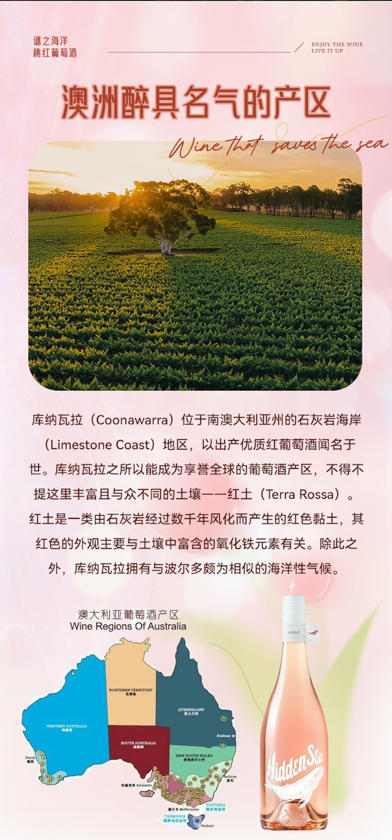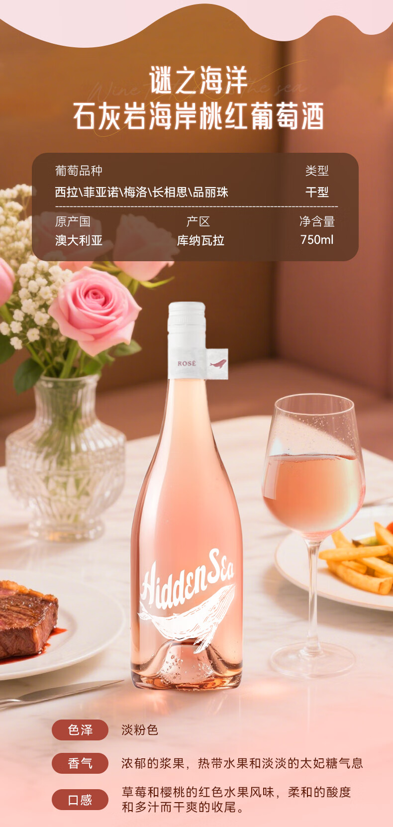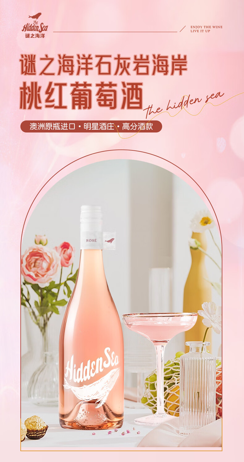 谜之海洋TheHiddensea澳大利亚进口干桃红葡萄酒750ml单支 婚宴酒 自饮