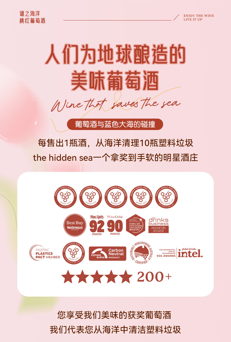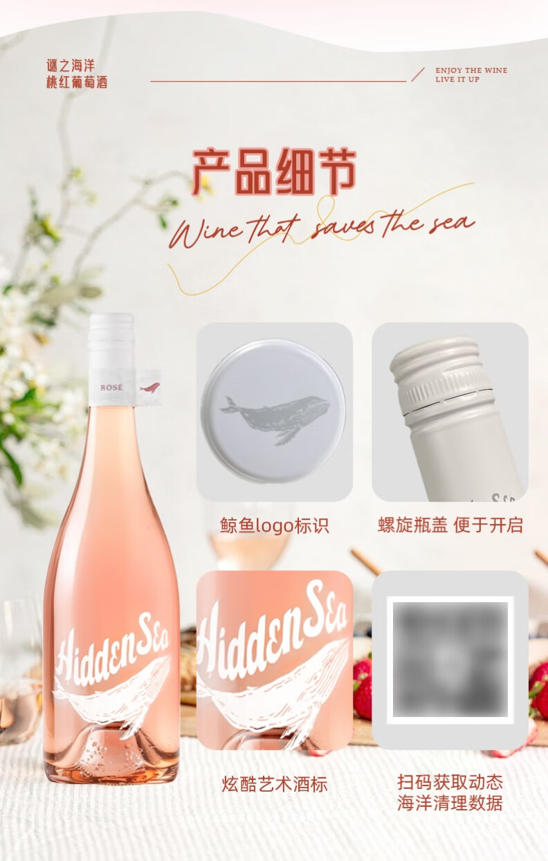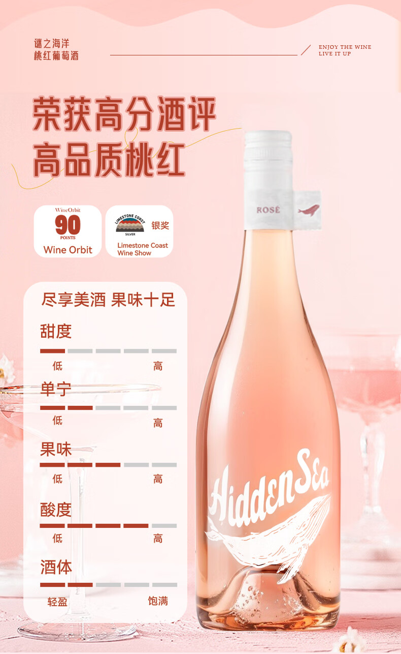 谜之海洋TheHiddensea澳大利亚进口干桃红葡萄酒750ml单支 婚宴酒 自饮