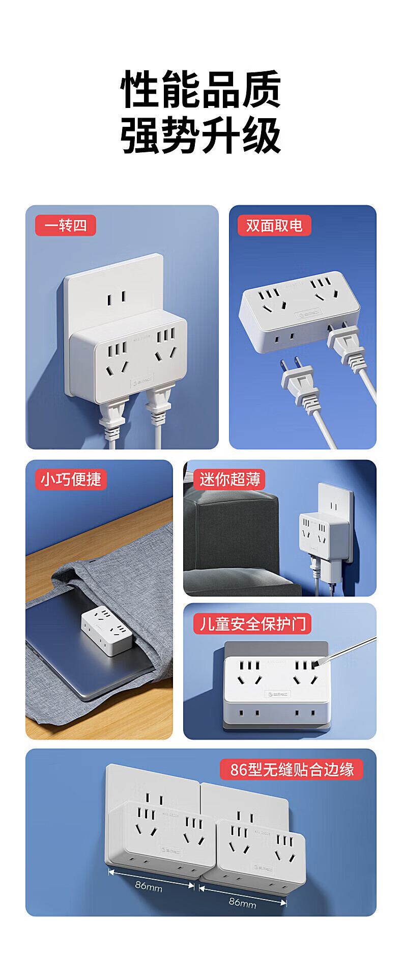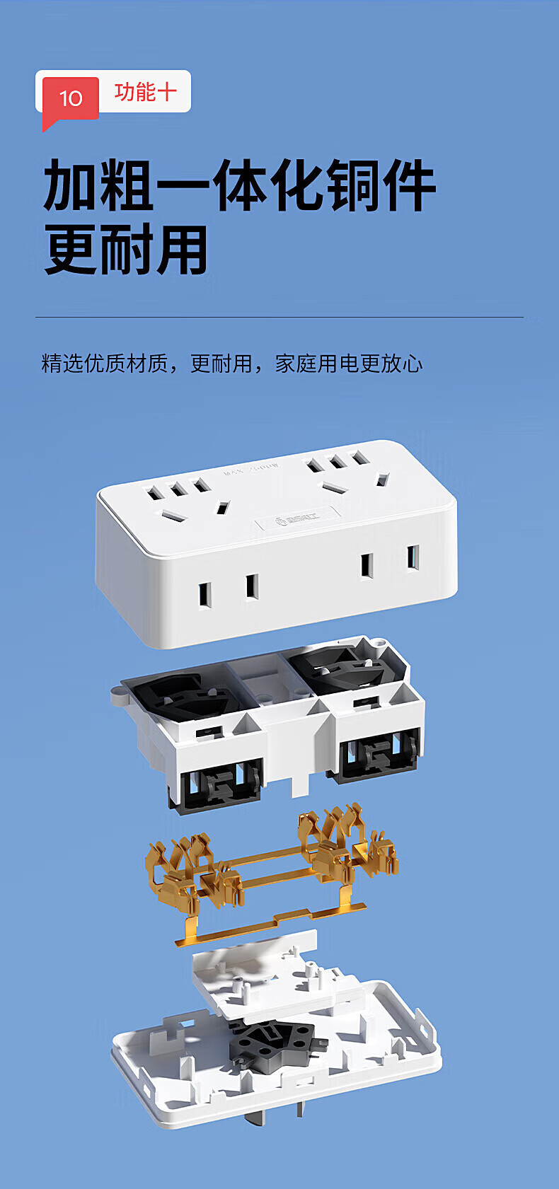 国际电工扩展开关插排墙壁电源转换器原位替换拓展式面板多孔延伸面板插座 白色带总控【向右扩展】明装10孔