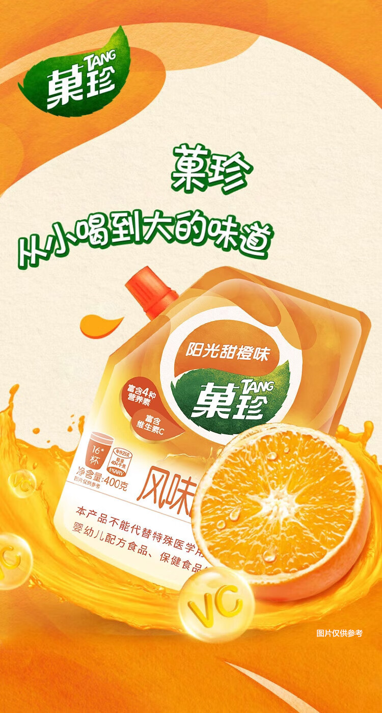 菓珍阳光甜橙味 壶嘴装400g*3(共3袋)果珍维C橙汁冲饮果汁粉