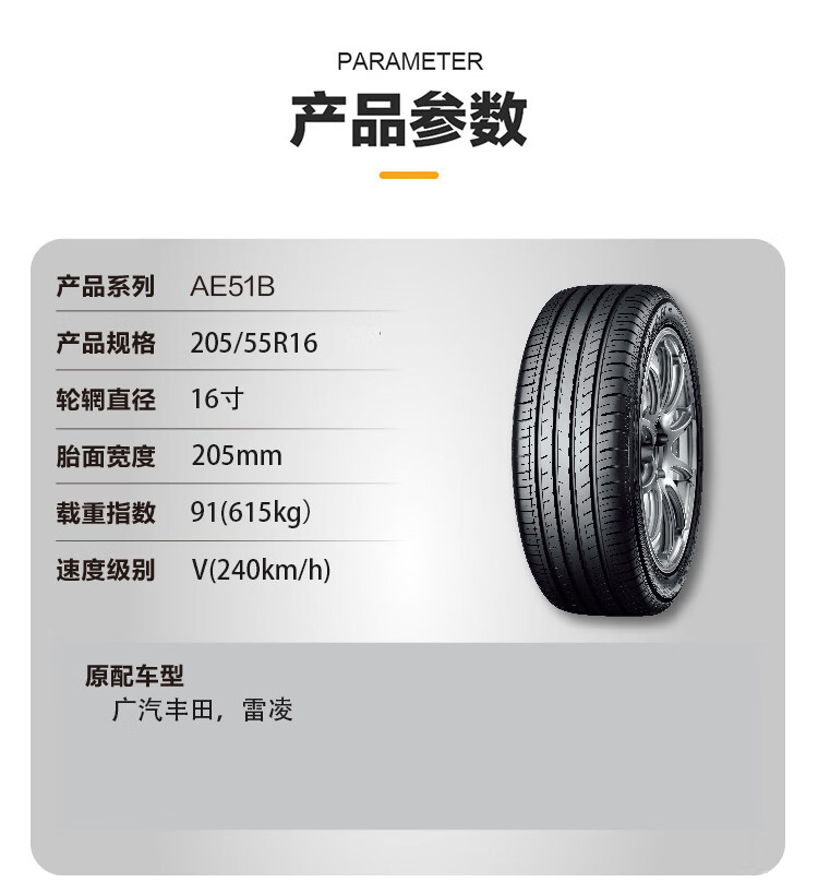 优科豪马横滨汽车轮胎 205/55R16 91V AE51B 原配广汽丰田/雷凌