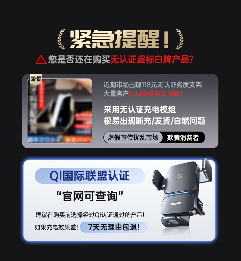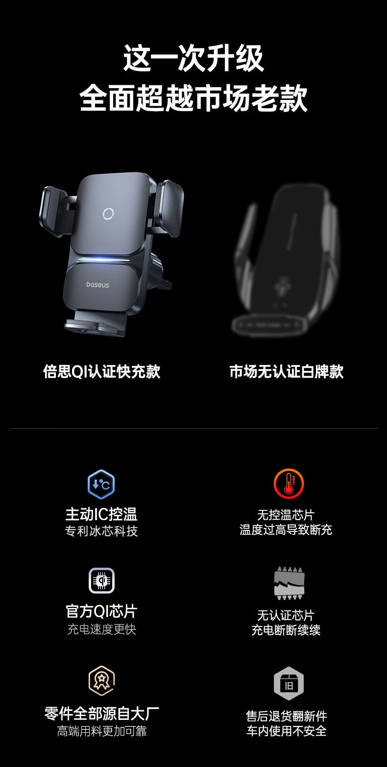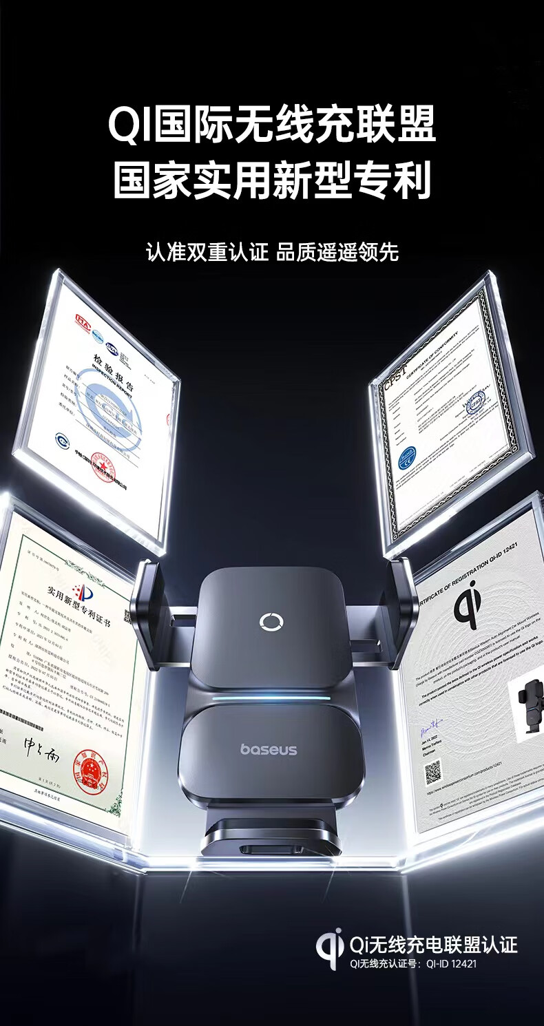 倍思 车载手机支架 汽车出风口导航无线充电器全自动快充苹果安卓通用