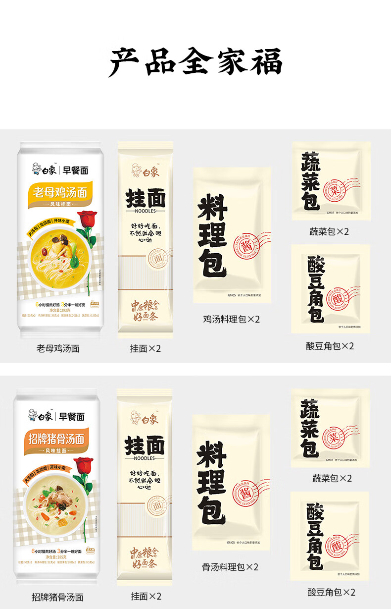 白象 挂面早餐面3包 老母鸡汤面+招牌猪骨汤面+番茄牛腩汤面 组合装