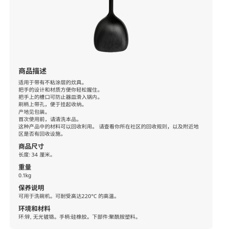 宜家(IKEA)UPPFYLLD乌普菲尔德锅铲烹饪勺夹钳厨房用具 深灰蓝色厨具3件套