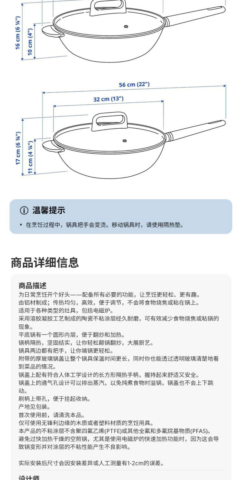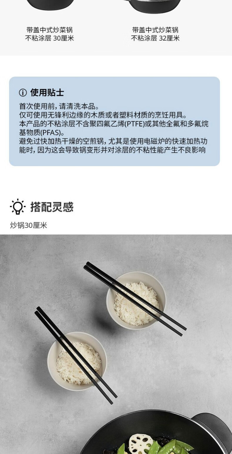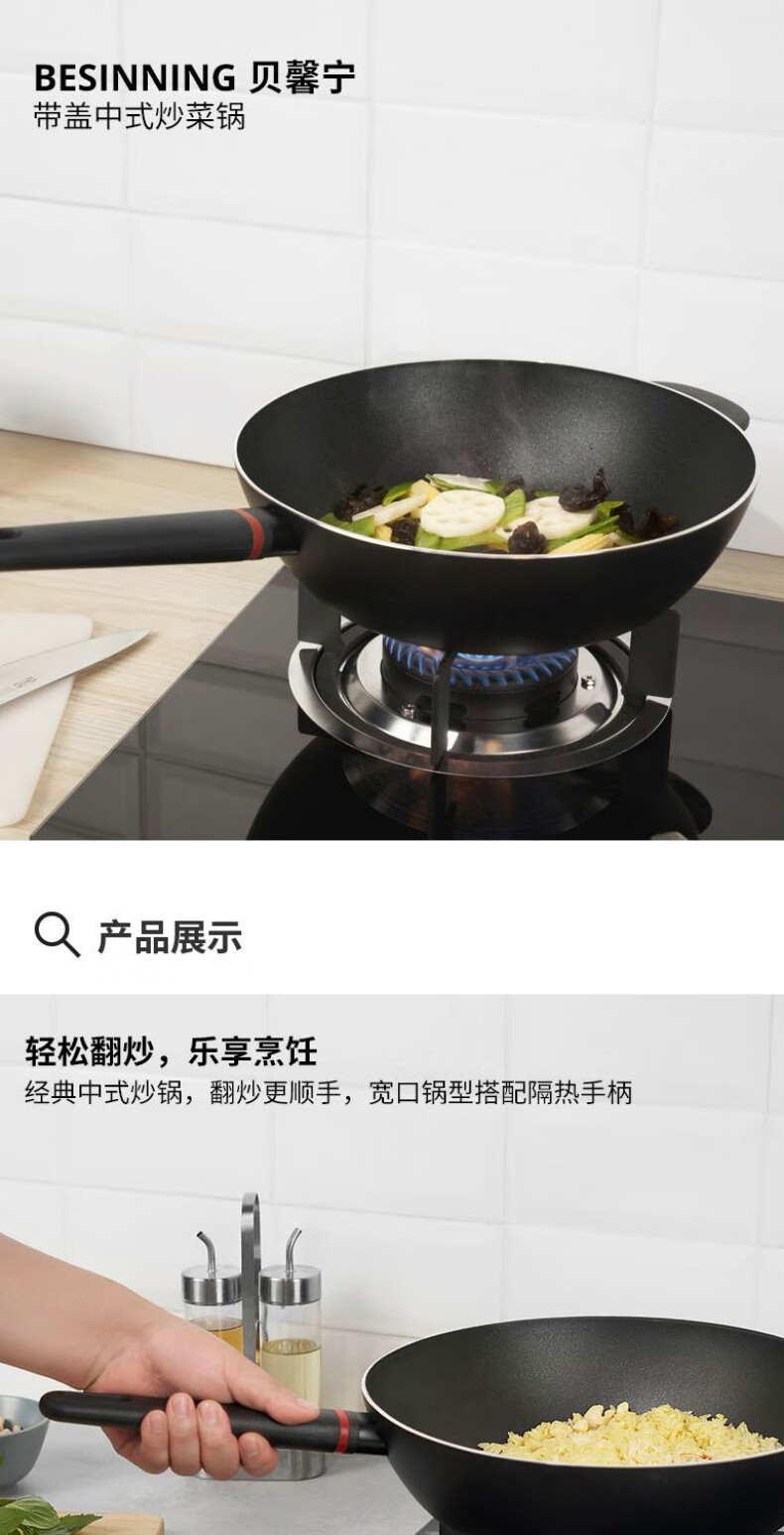 宜家(IKEA)BESINNING贝馨宁带盖中式炒菜锅不粘涂层多尺寸现代 带盖中式炒菜锅不粘涂层32 厘米 32cm 其他