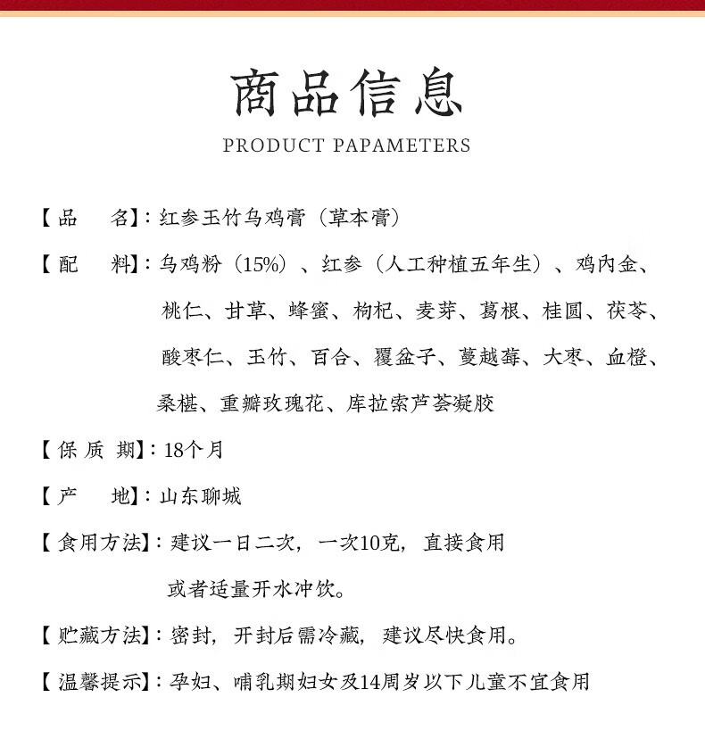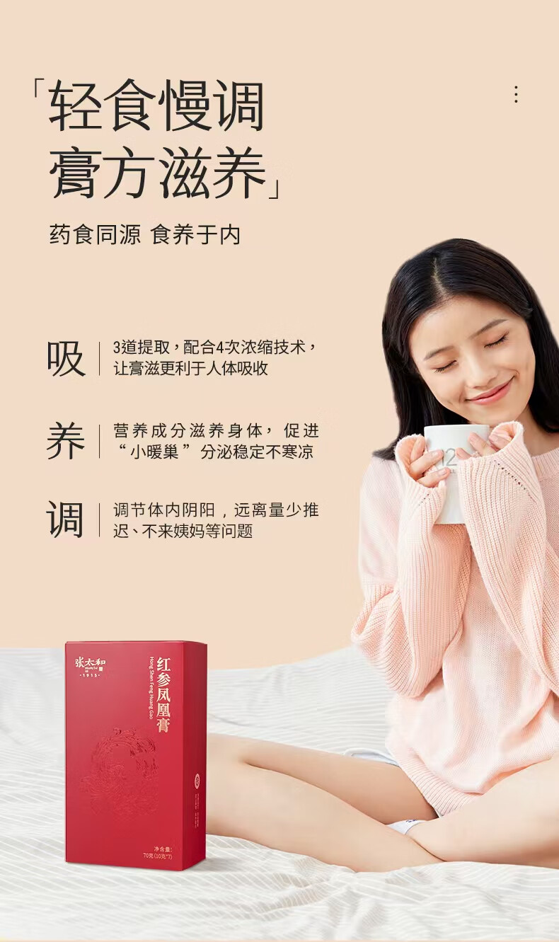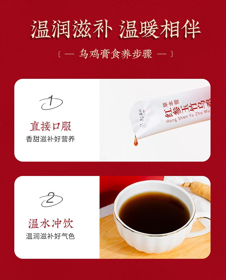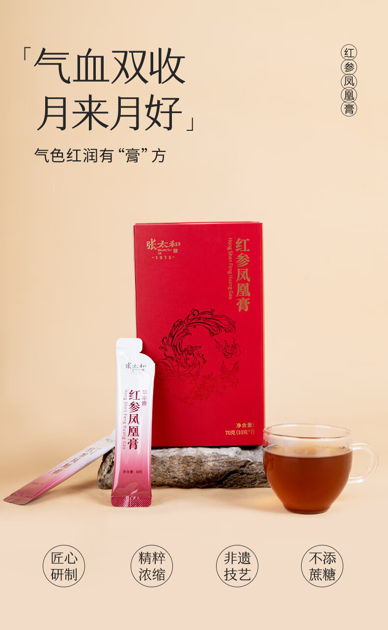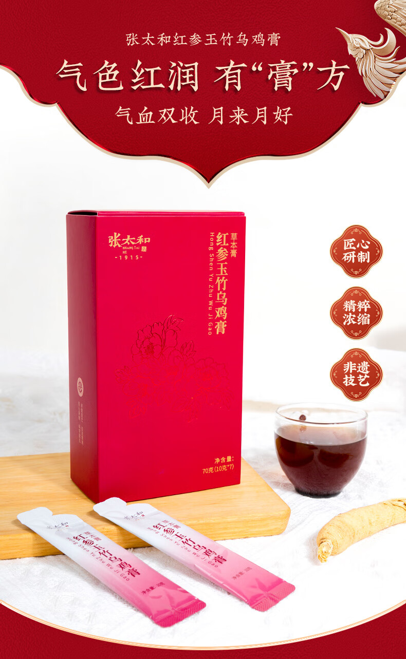 张太和红参玉竹乌鸡膏茯湿膏凤凰五黑膏山楂六物酸枣仁逍节怀姜枣膏礼品 红参玉竹乌鸡膏70g(10g*7)*4盒