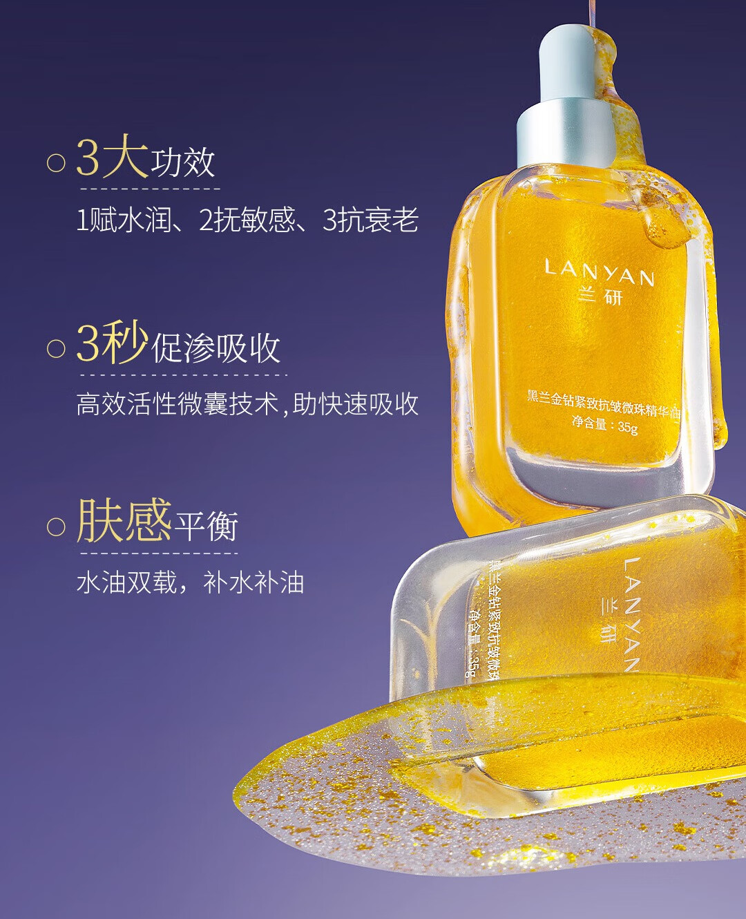 兰研(LANYAN)【真紧致抗皱】金钻面部精华油抗初老补水保湿以油养肤生日礼物 1瓶正装35g(买1送1)到手70g