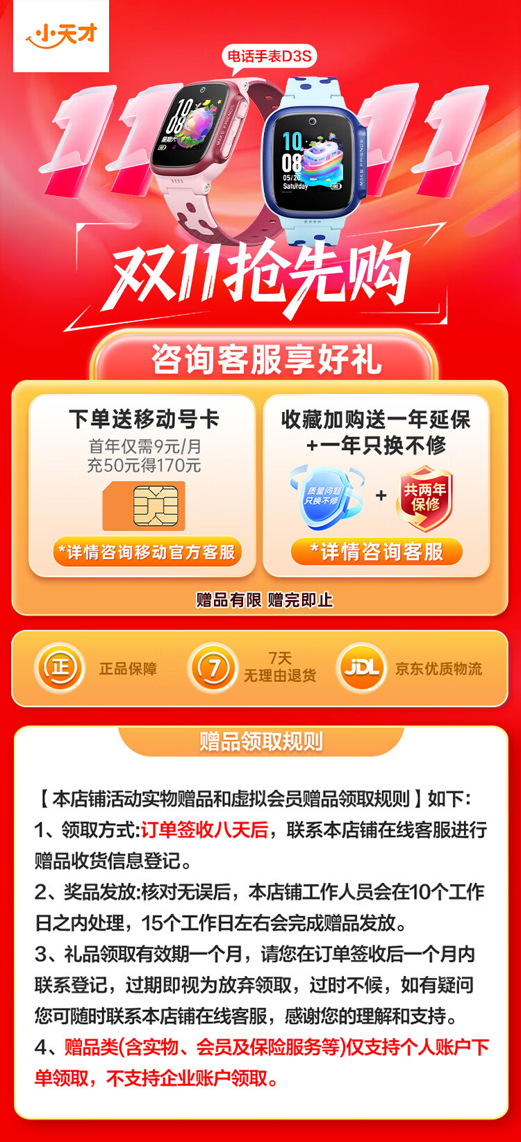 小天才电话手表D3S绯云红防水GPS定位智能手表 男女孩学生儿童全网通视频拍照手表男女表