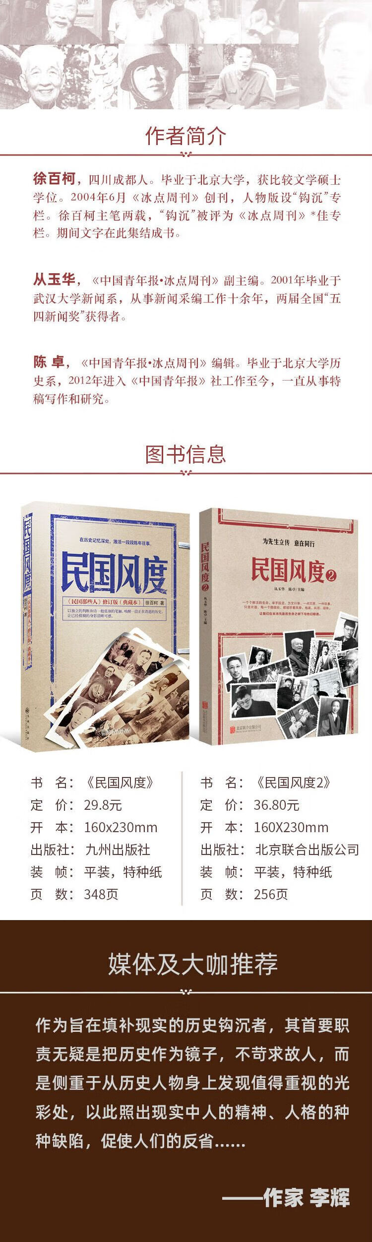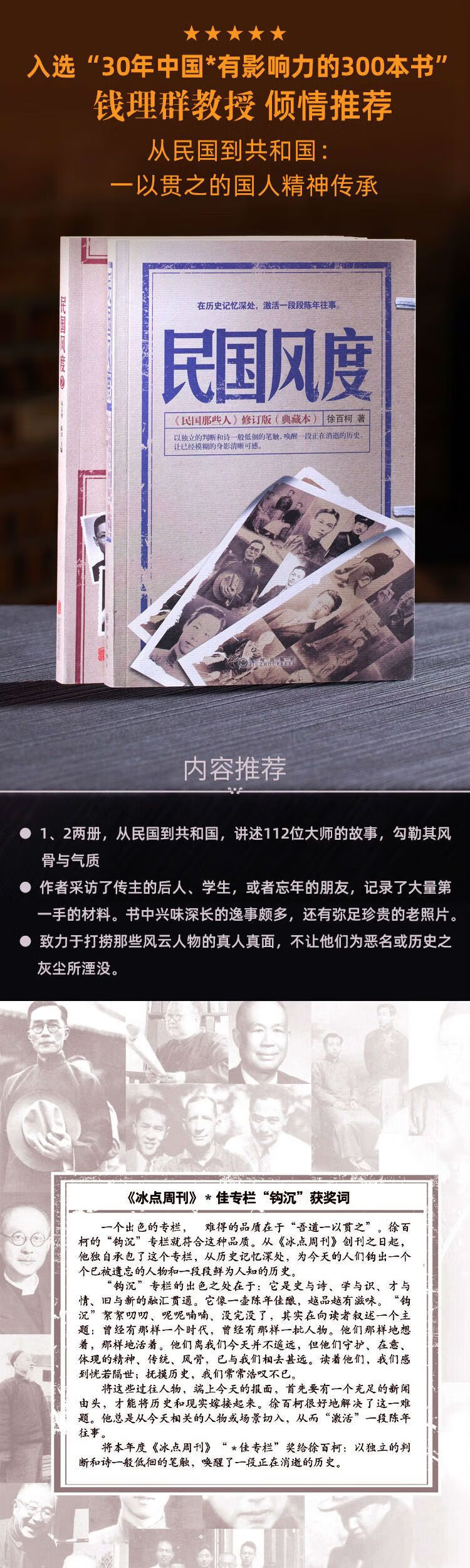 民国风度 一以贯之的精神传承 套装2册 (入选“30年中国有影响力的300百书” 著名学者钱理群倾情做序) 民国风度套装2册
