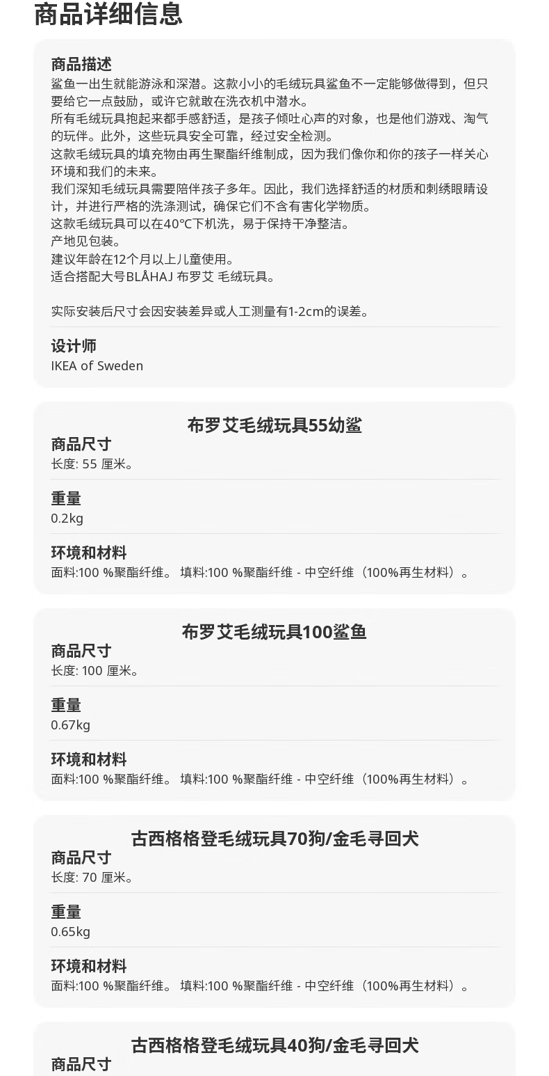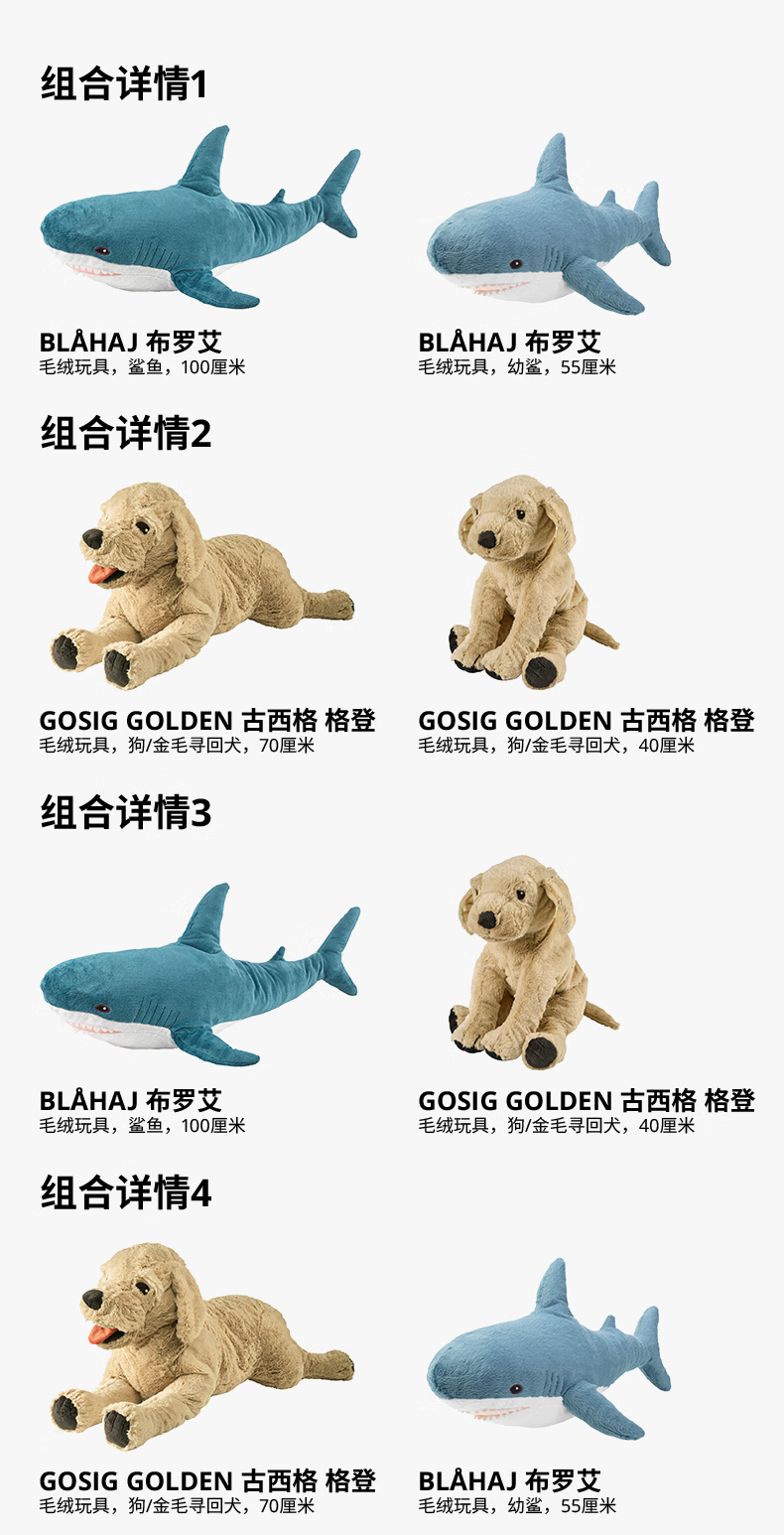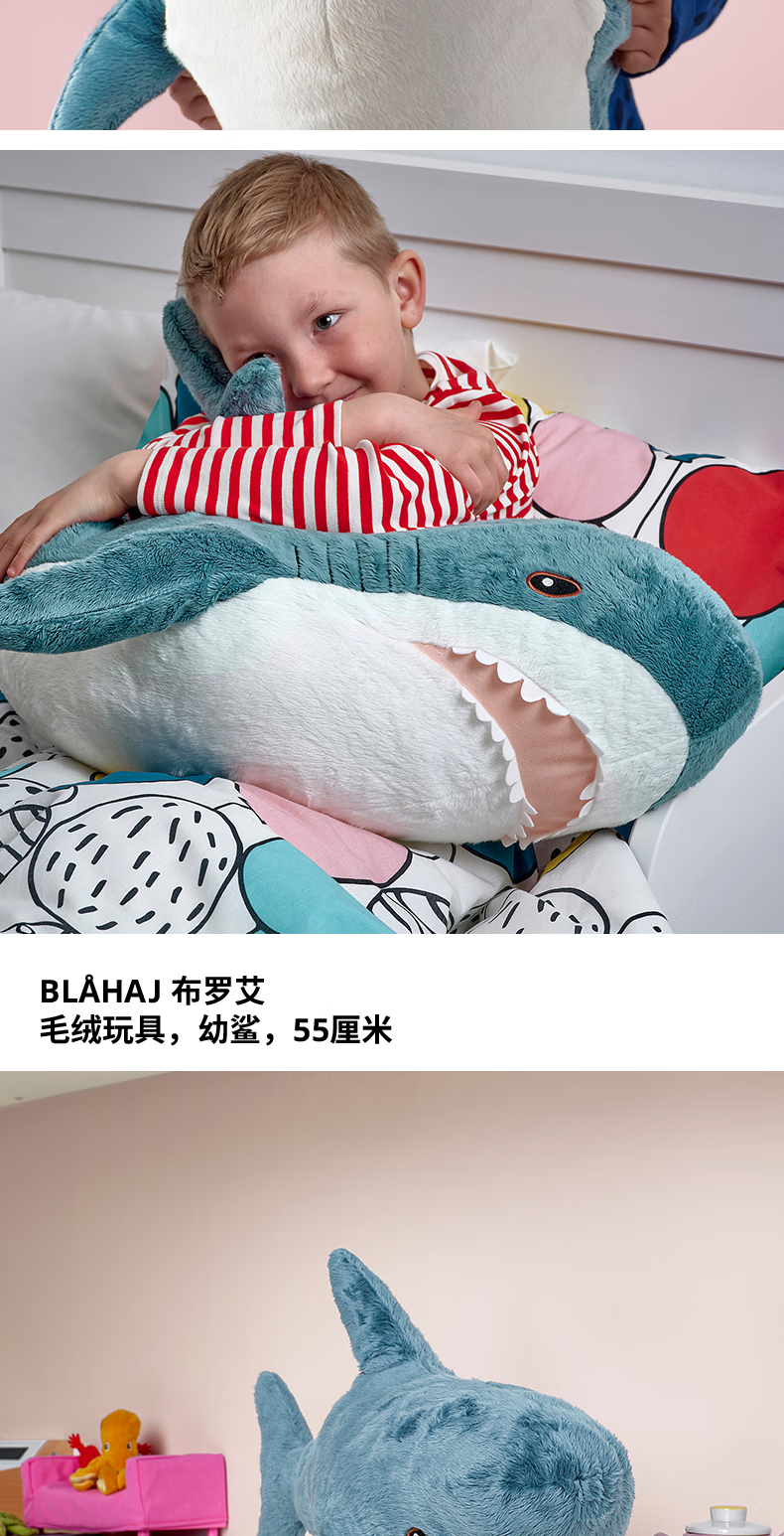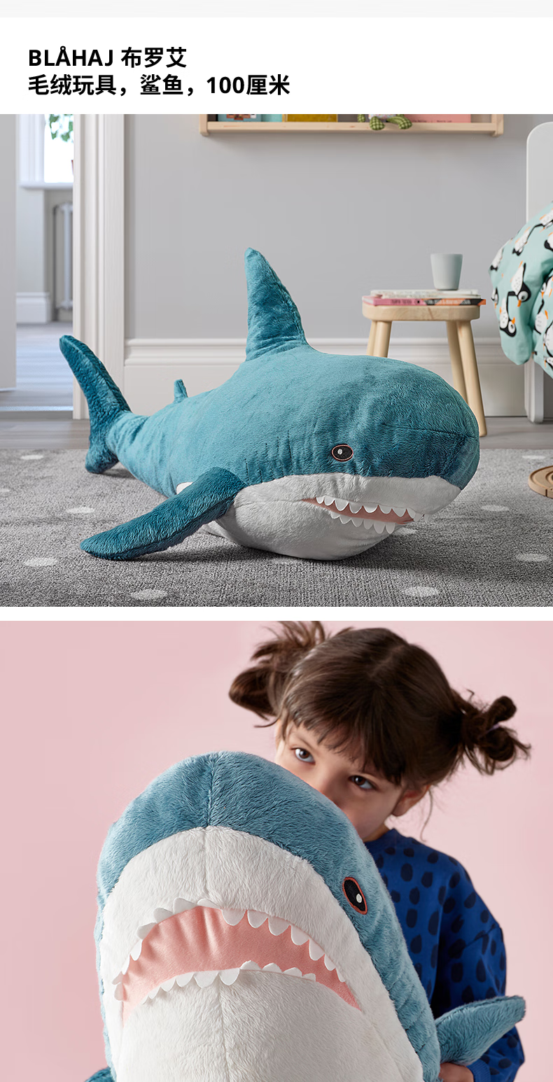 宜家(IKEA)【热销套组】儿童玩偶狗动物毛绒玩偶鲨鱼玩具组合 鲨鱼100cm+幼鲨55cm