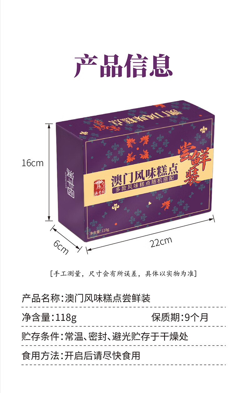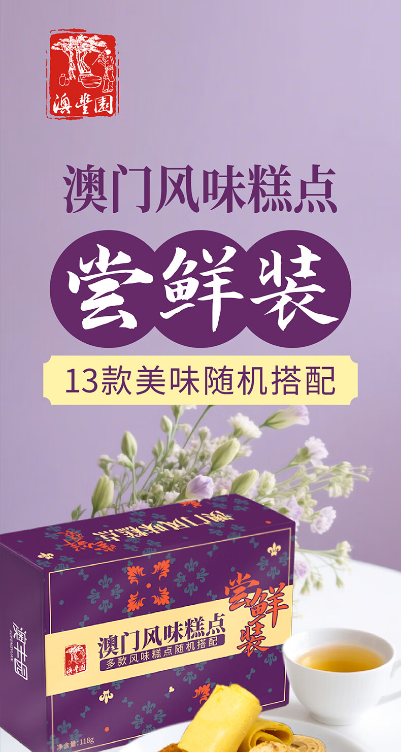 澳丰园澳门手信糕点什锦尝鲜装118g广东风味糕点心办公室下午茶零食小吃