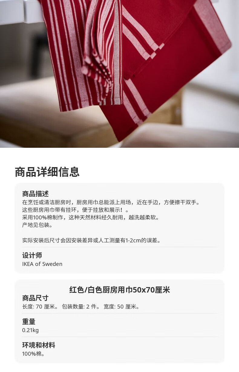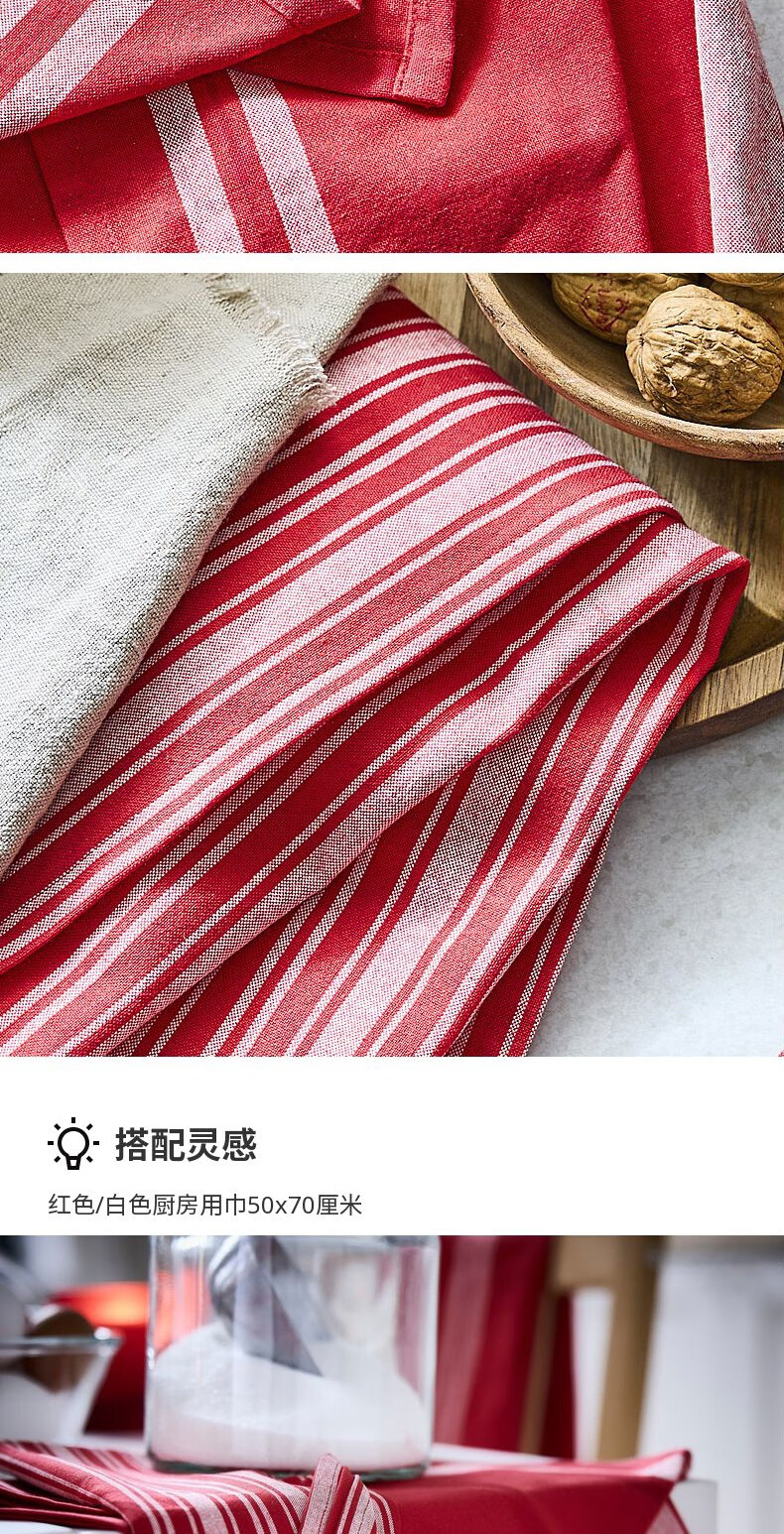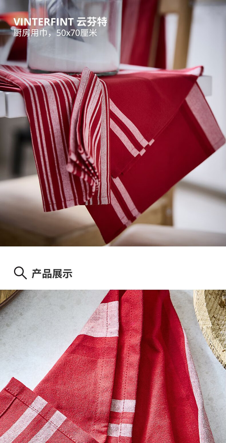 宜家(IKEA)【新品】VINTERFINT云芬特厨房用巾吸水抹布清洁布 红色白色厨房用巾50x70cm
