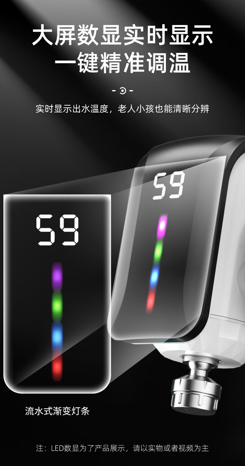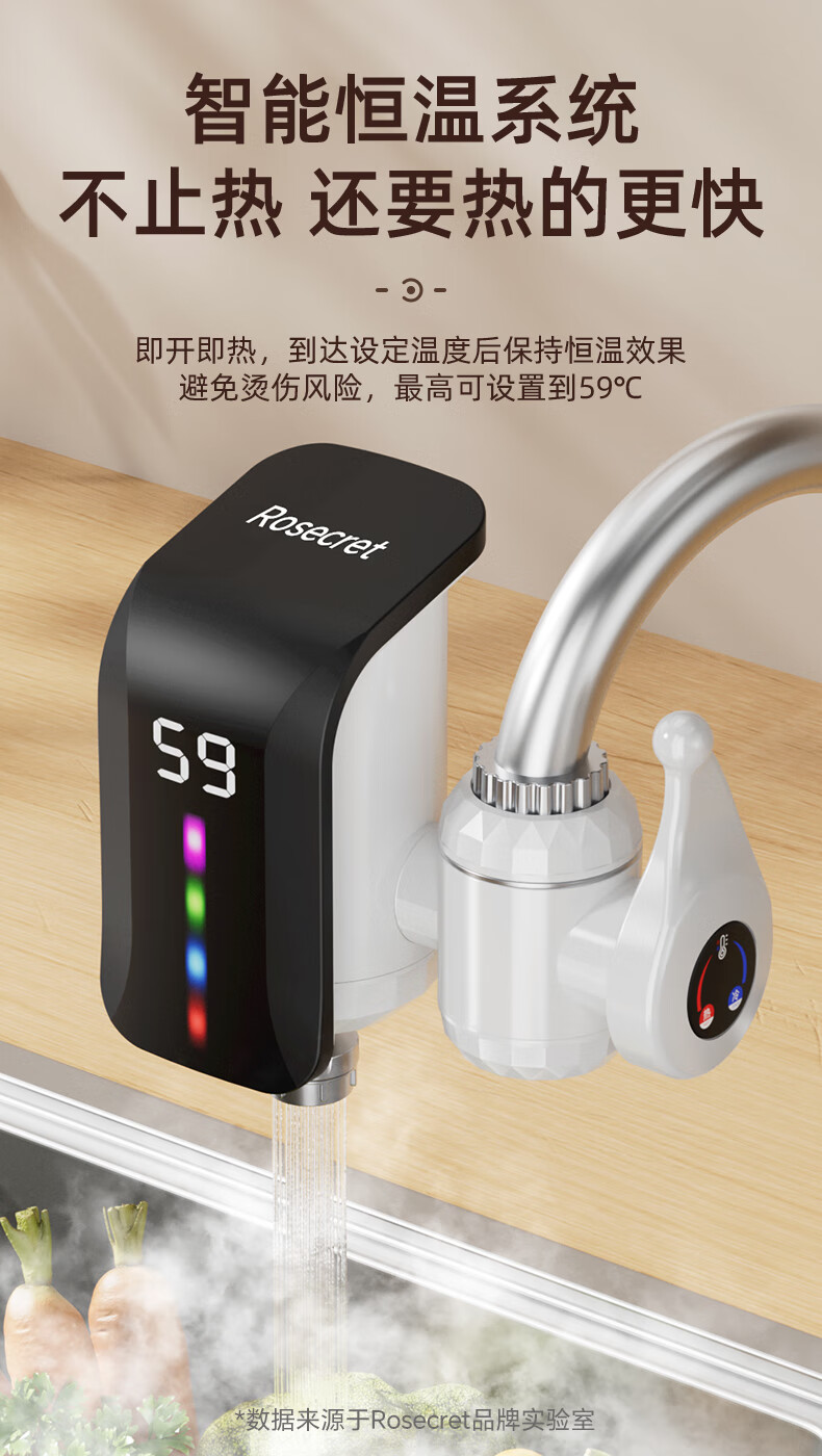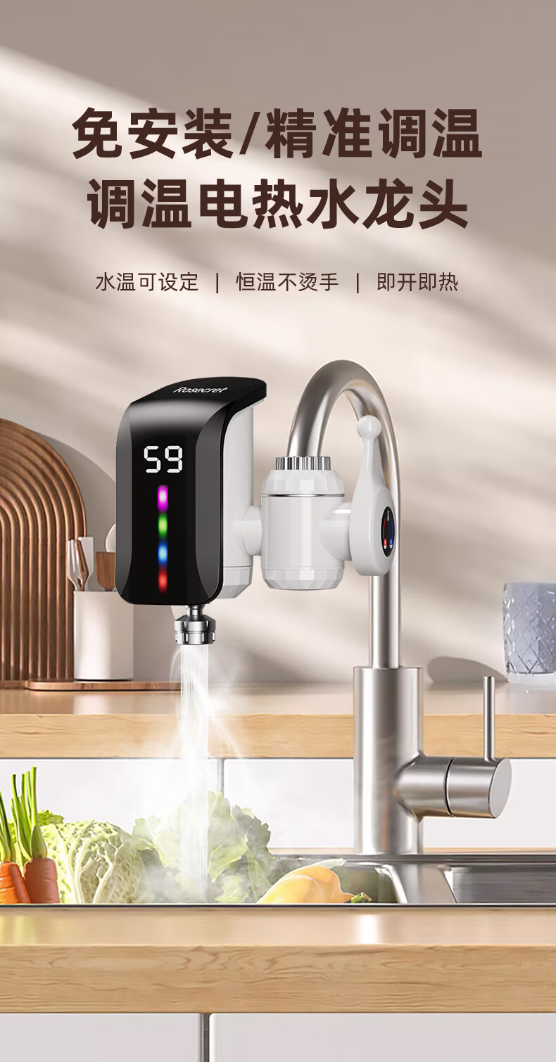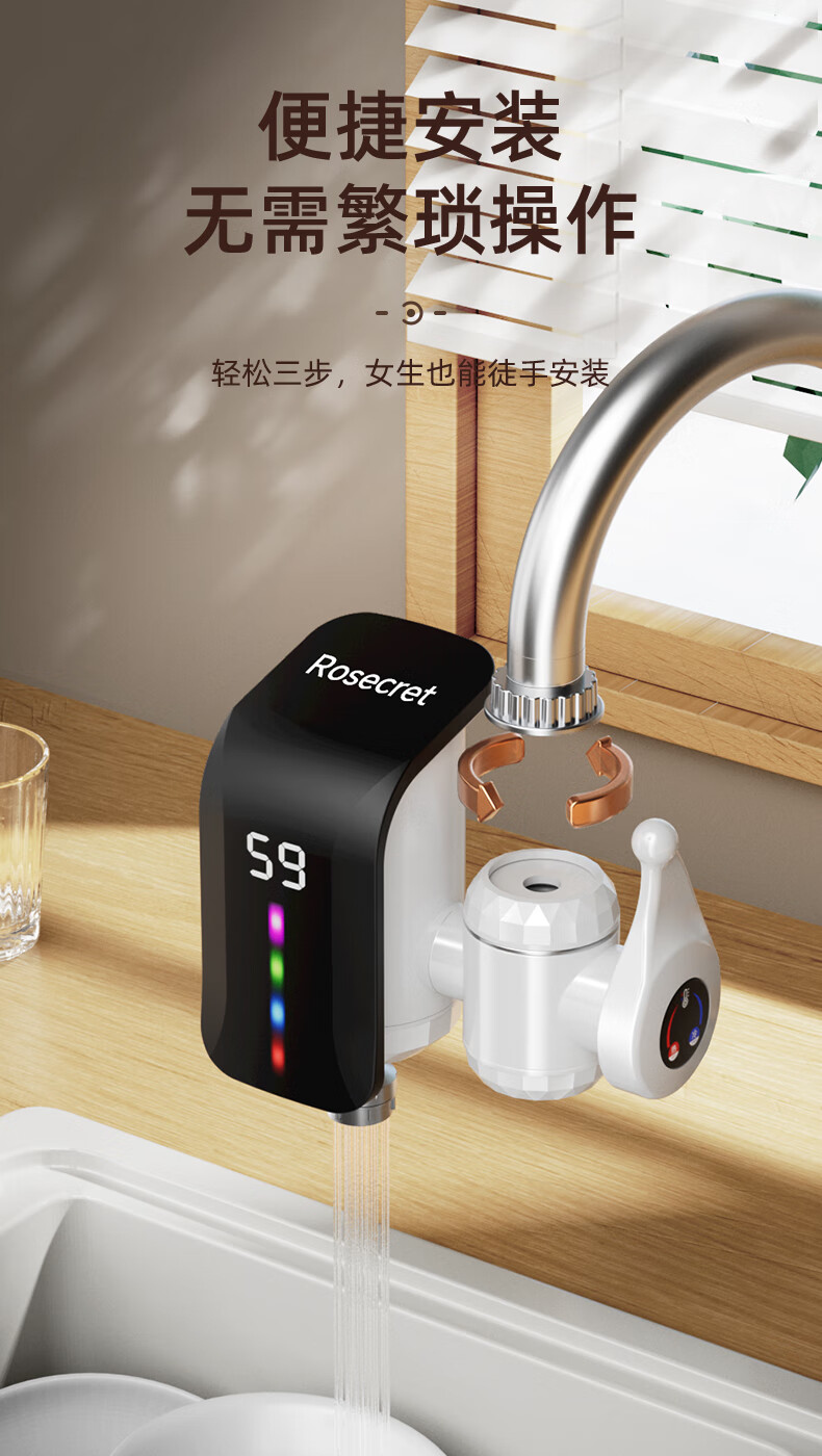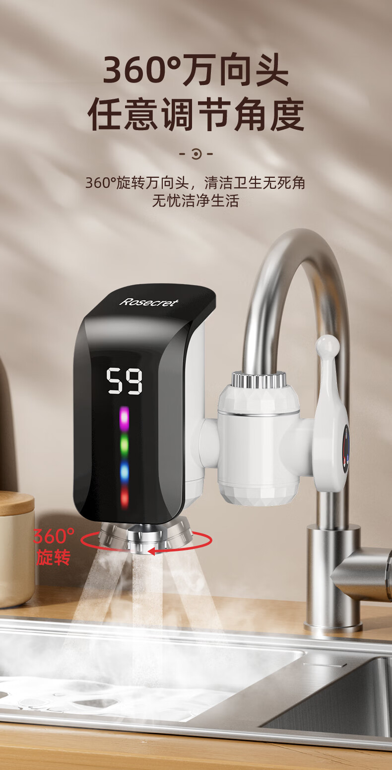 Rosecret【德国】免安装电热水龙头即热式加热速热水龙头热水器智能恒温数显厨房过滤即热洗菜池水龙头 【免安装】数显动态电热龙头-基础款 万向旋转+配漏保插头
