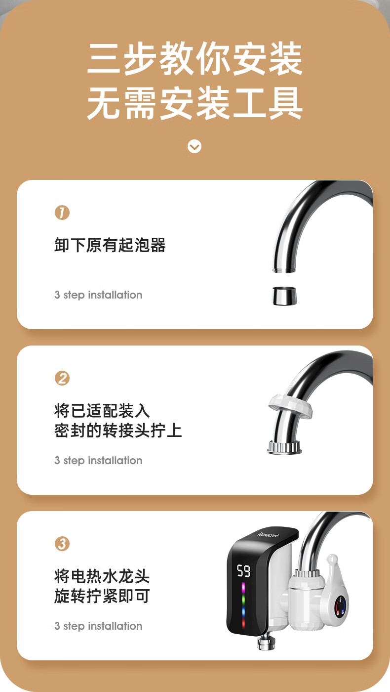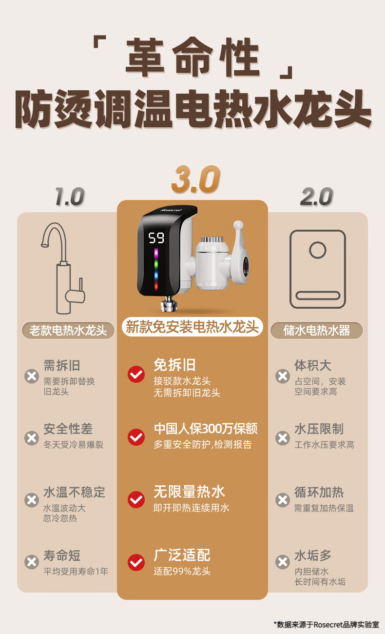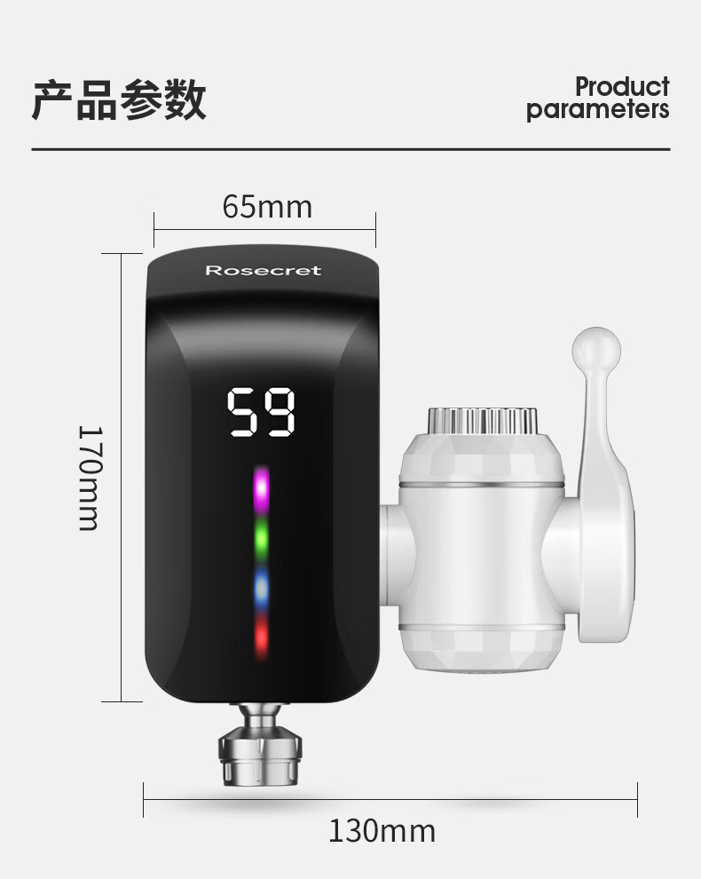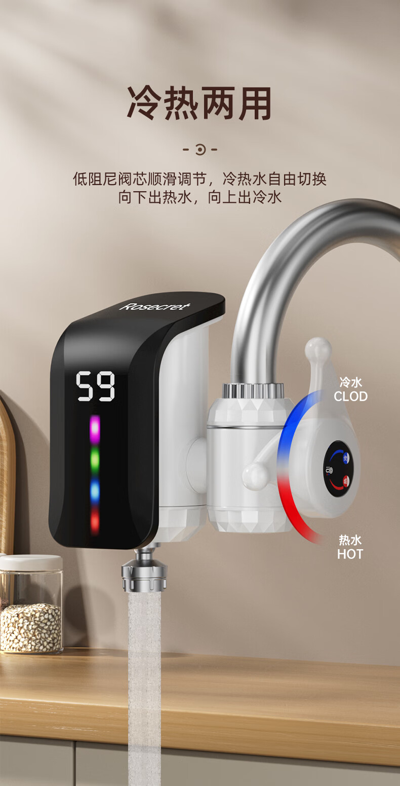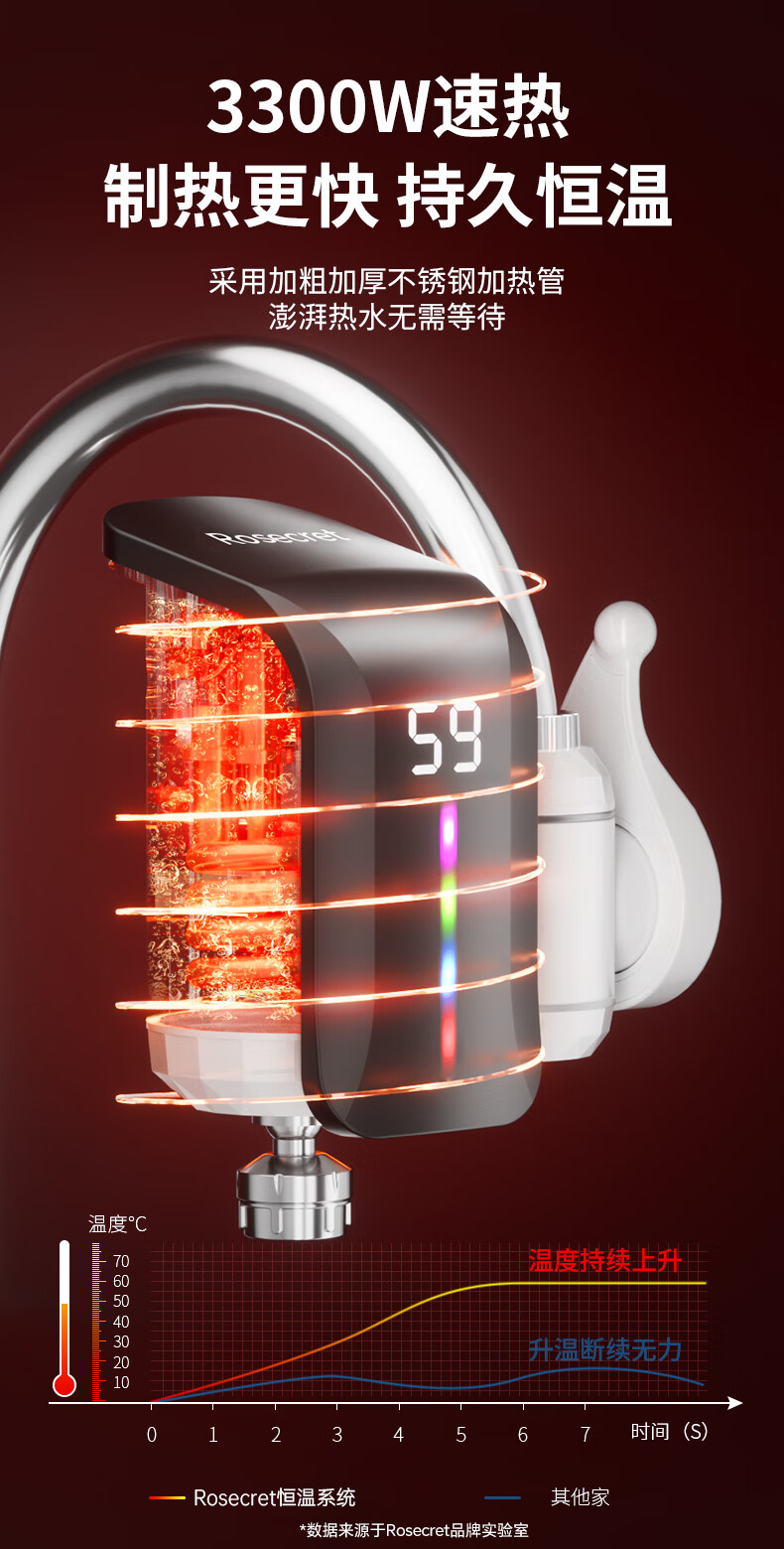 Rosecret【德国】免安装电热水龙头即热式加热速热水龙头热水器智能恒温数显厨房过滤即热洗菜池水龙头 【免安装】数显动态电热龙头-基础款 万向旋转+配漏保插头