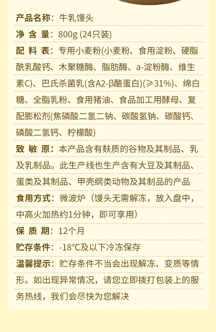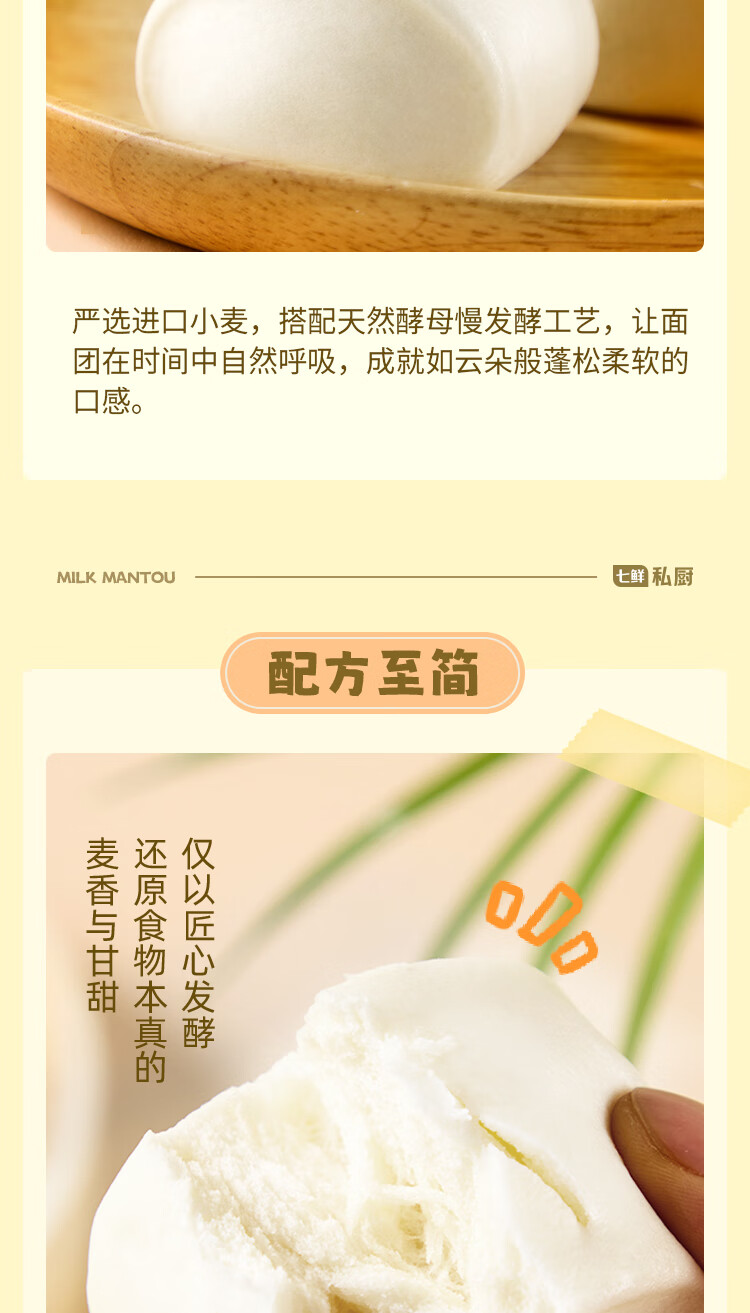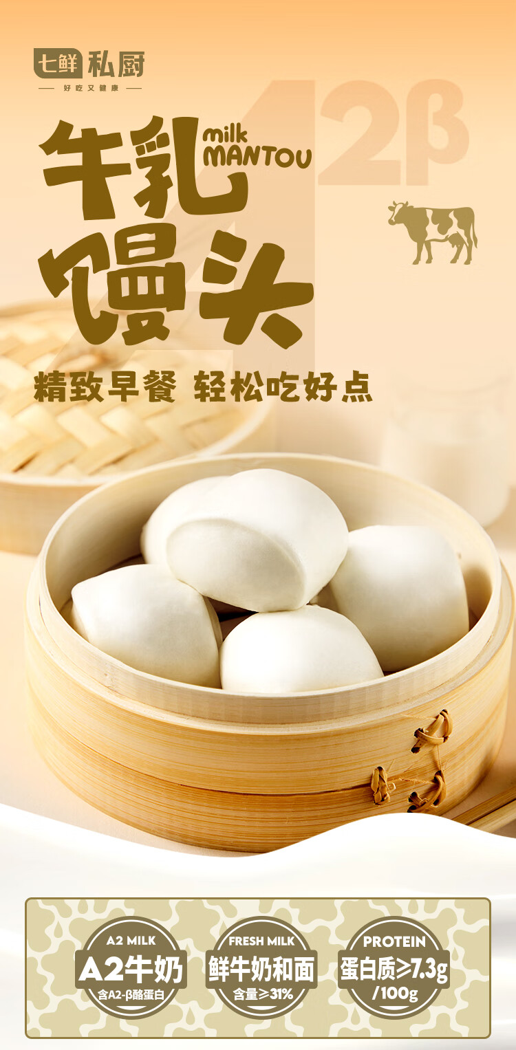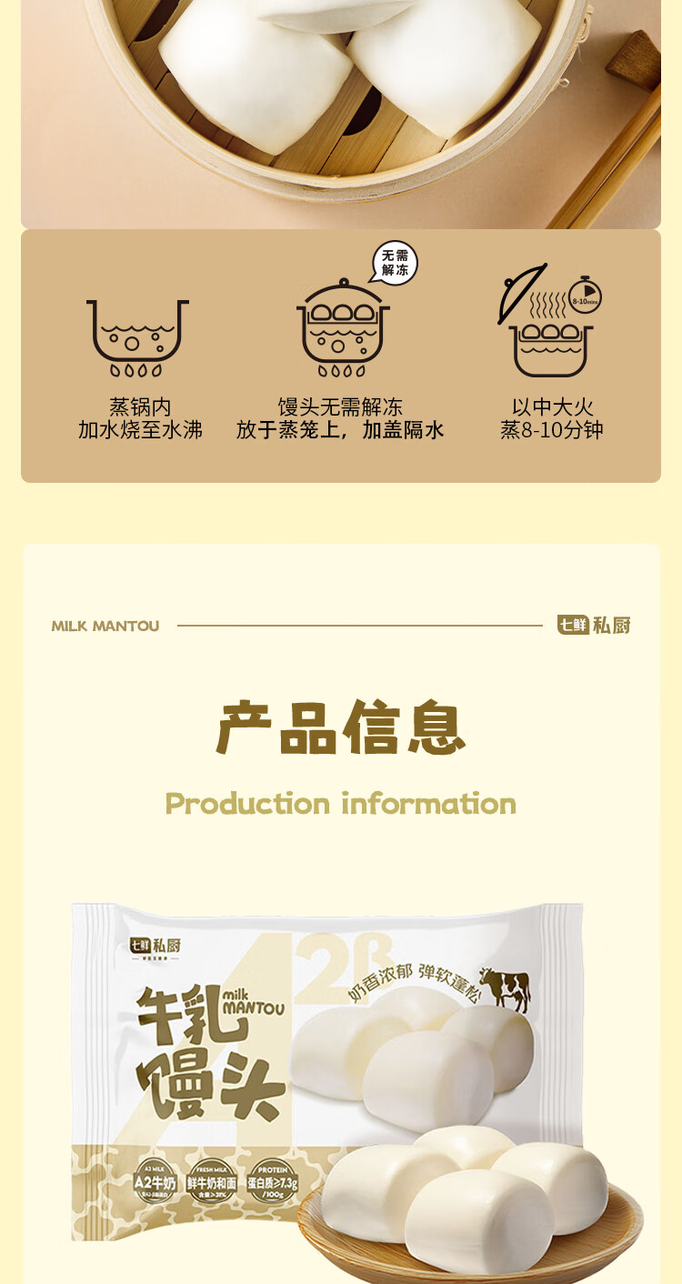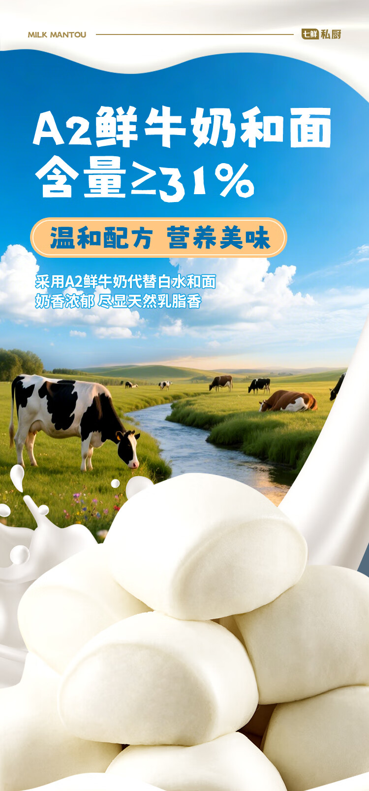 七鲜私厨 A2牛乳馒头800g(24只)鲜牛乳和面儿童早餐补给蛋白牛奶