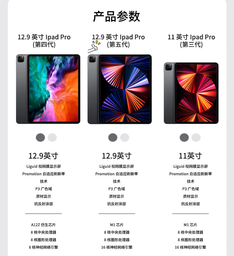 AppleiPadPro M1 12.9英寸第5代原封未激活M1芯片支持AI 苹果官方认证翻新 2021蜂窝2TB海外版灰