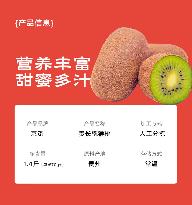 京觅贵州修文贵长猕猴桃绿心24枚 单果70g+ 生鲜水果 源头直发 包邮