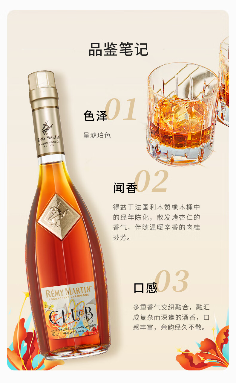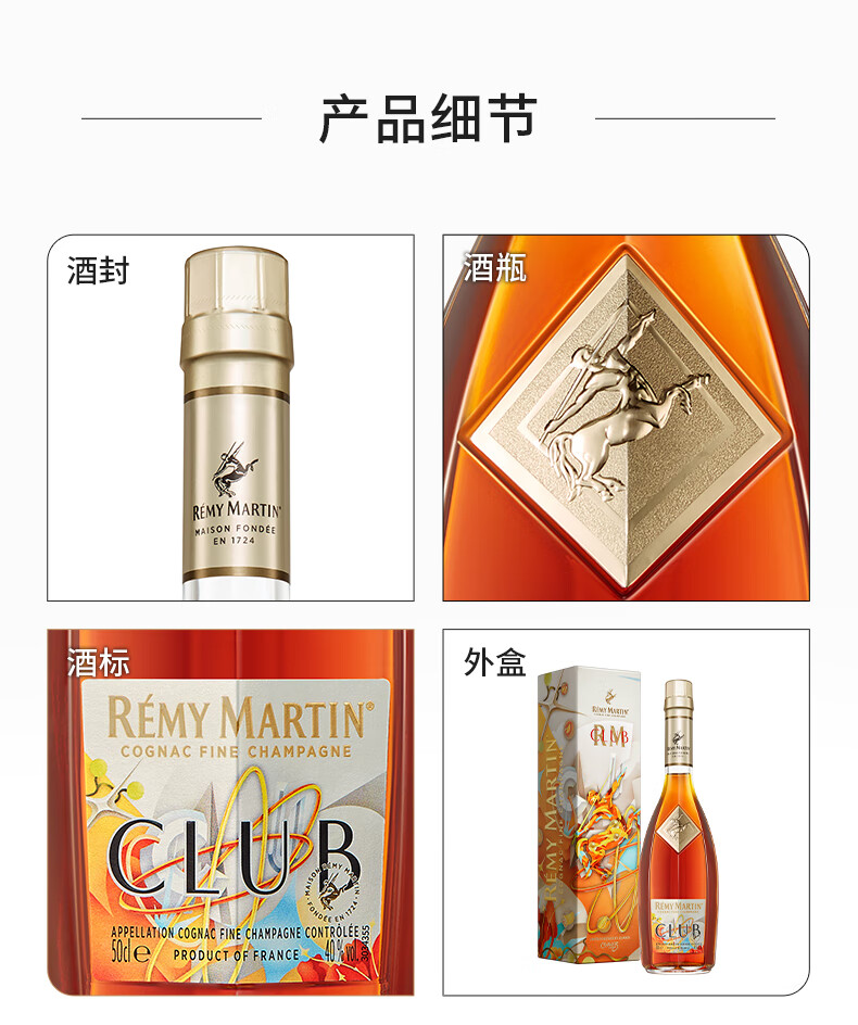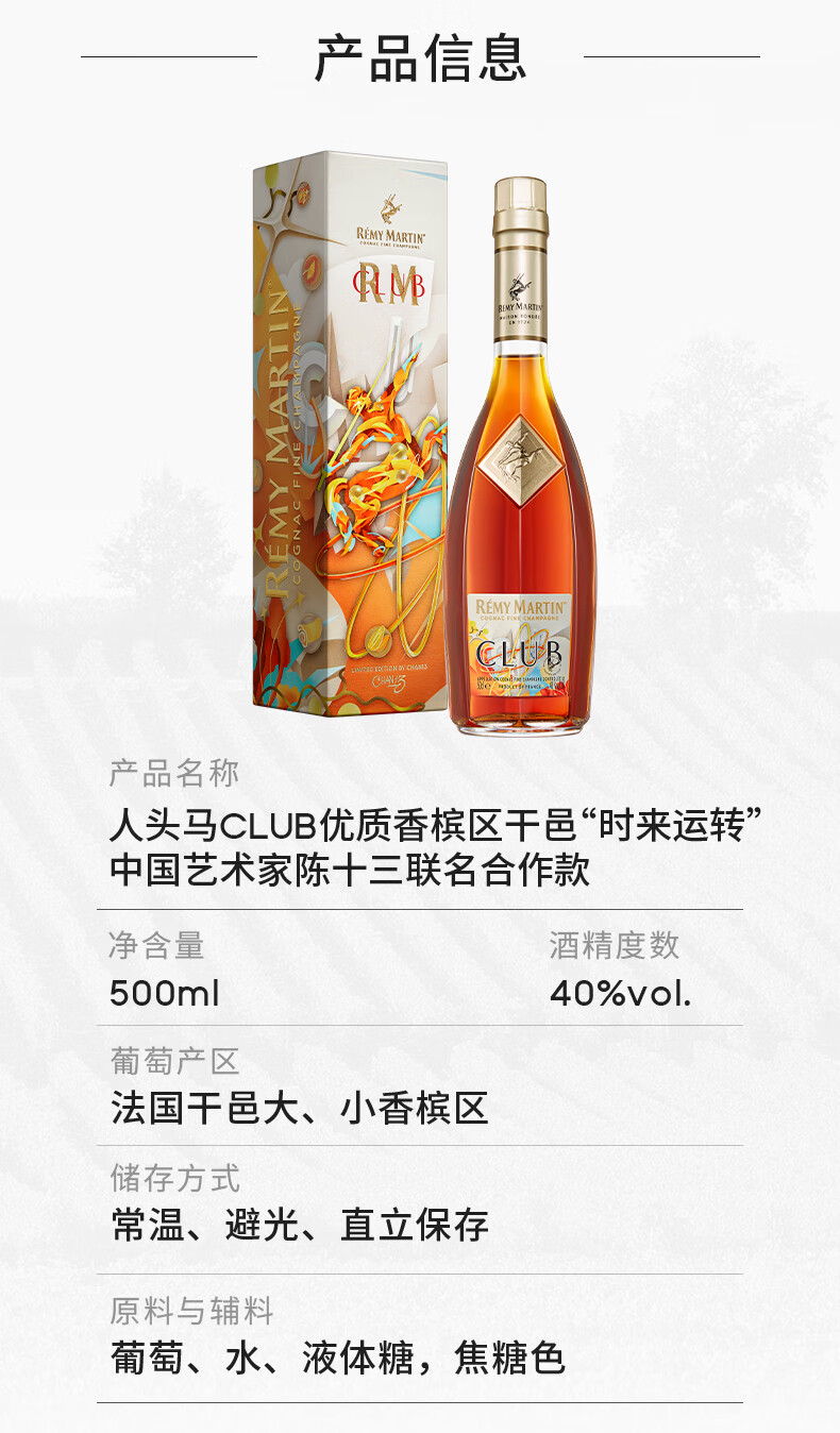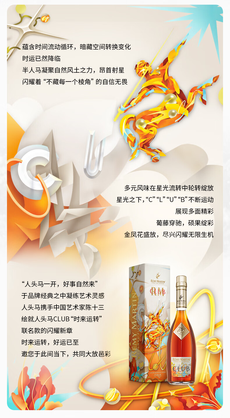 人头马(Remy Martin)洋酒 CLUB优质香槟区干邑白兰地 500ml 时来运转限量版
