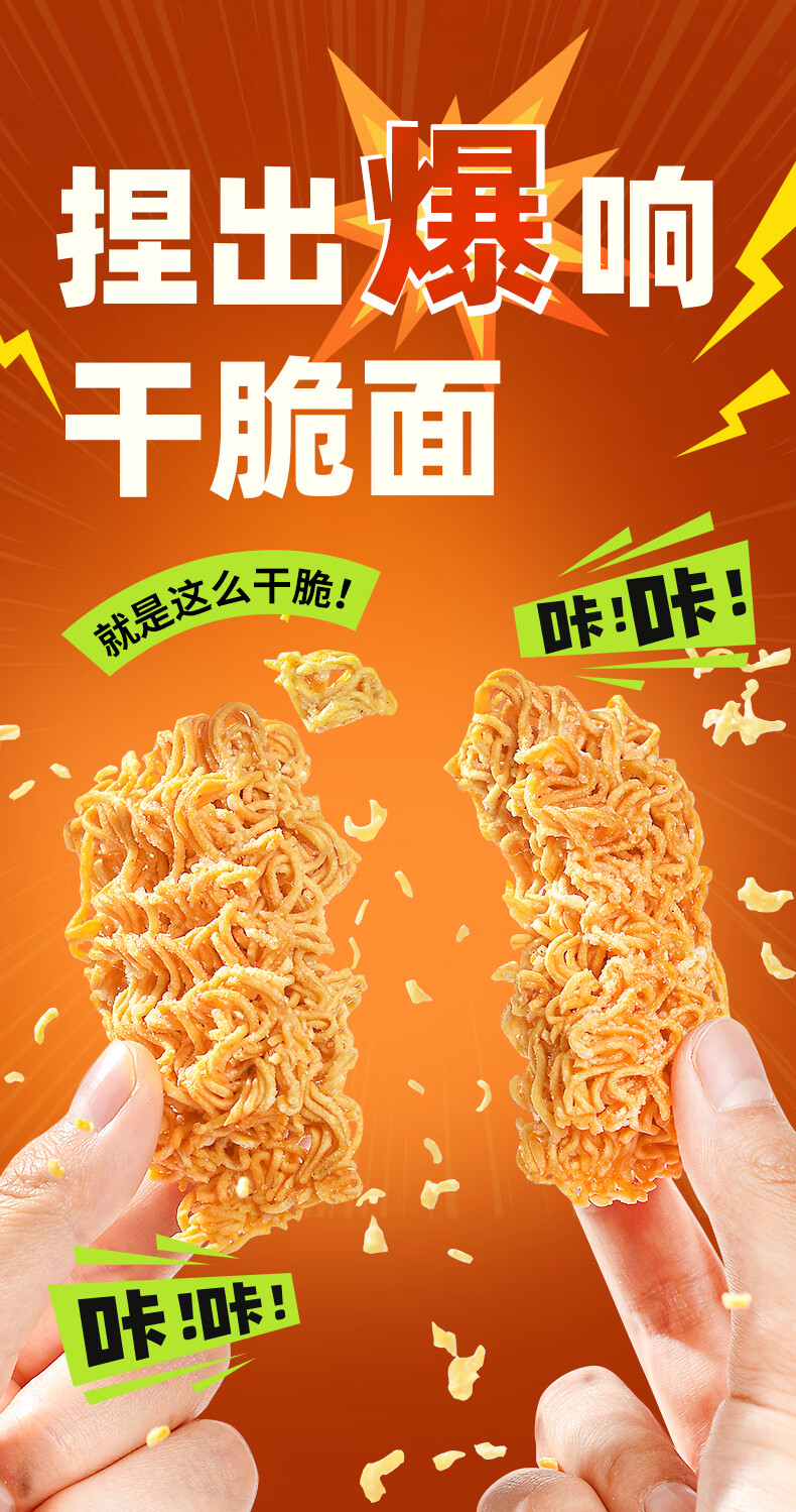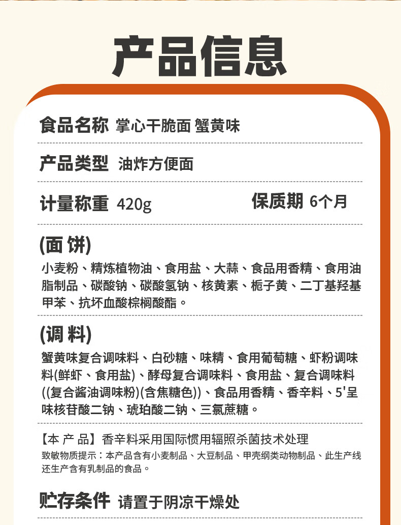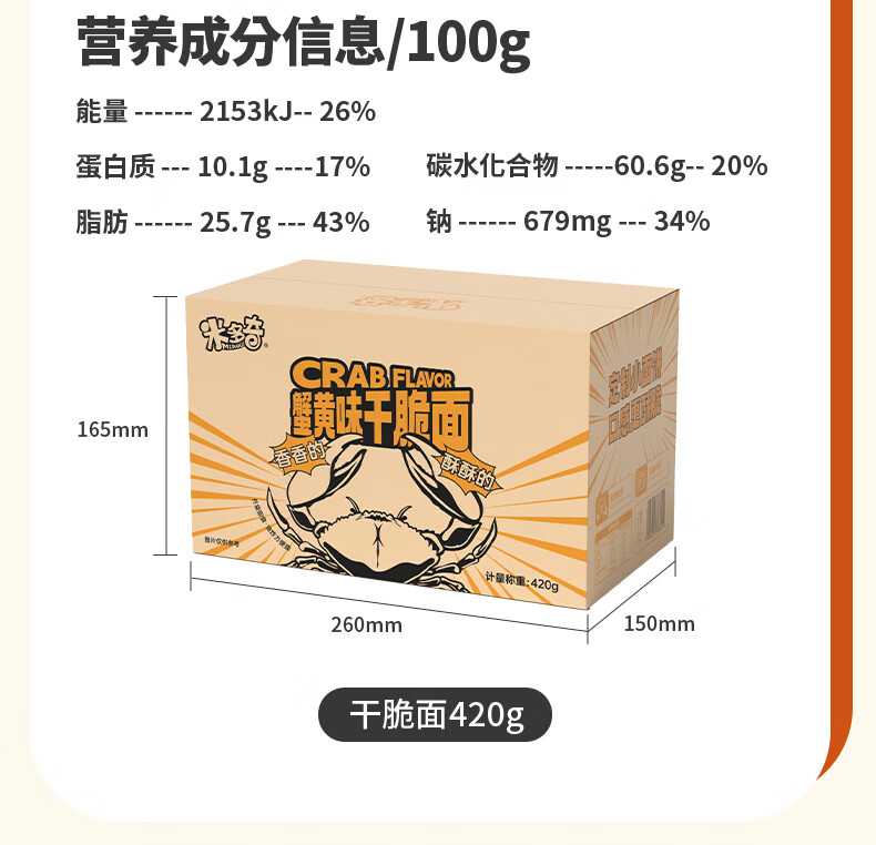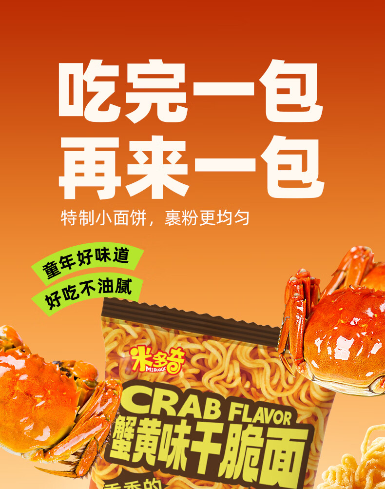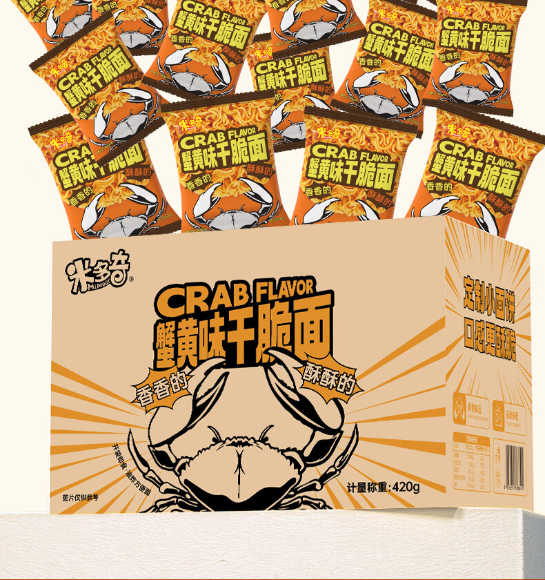 米多奇蟹黄味干脆面420g 掌心脆干吃方便面整箱解馋小零食休闲食品