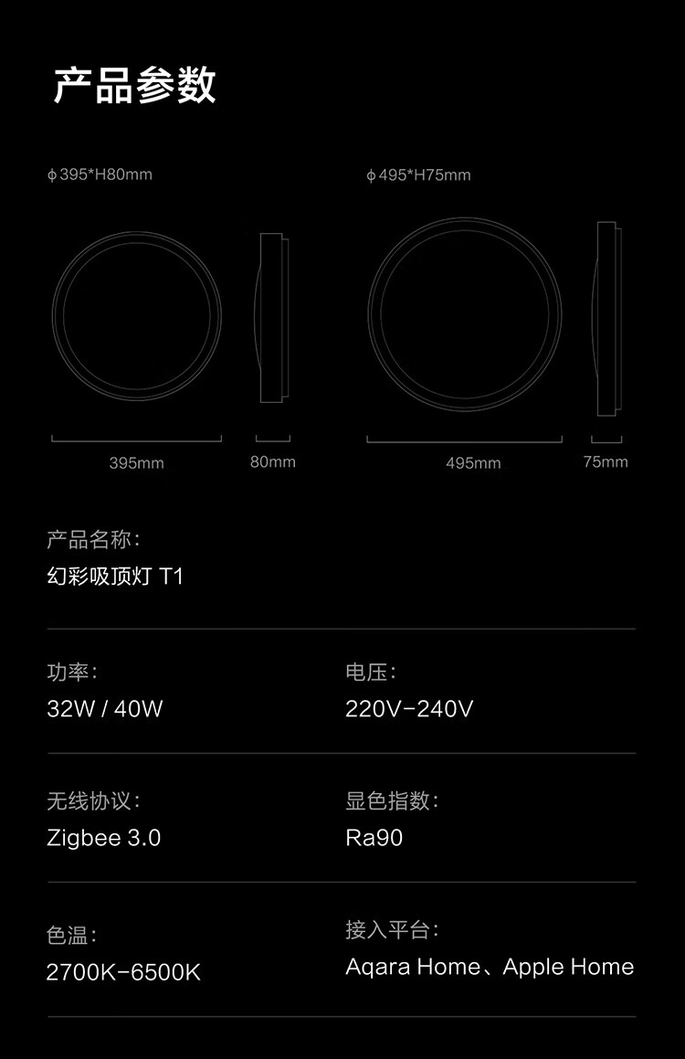 Aqara幻彩吸顶灯T1卧室客厅灯 led灯已接入HomeKit 智能联动 直径395MM(适用6-10平方米)