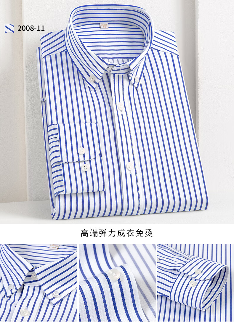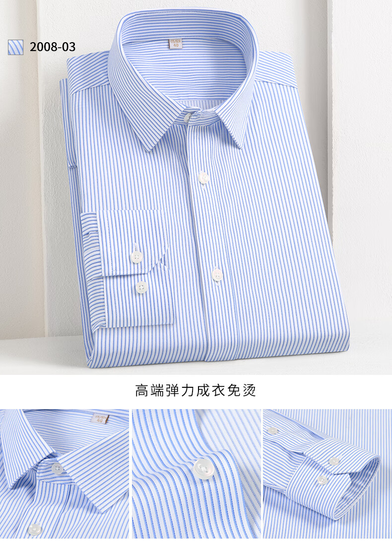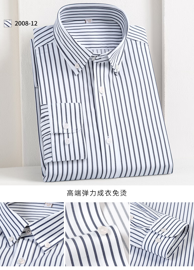 乔亚意大利轻奢品牌男装DP成衣免烫弹力长袖衬衫男士商务休闲条纹衬衣 2008-15 47 码【建议225-235斤】