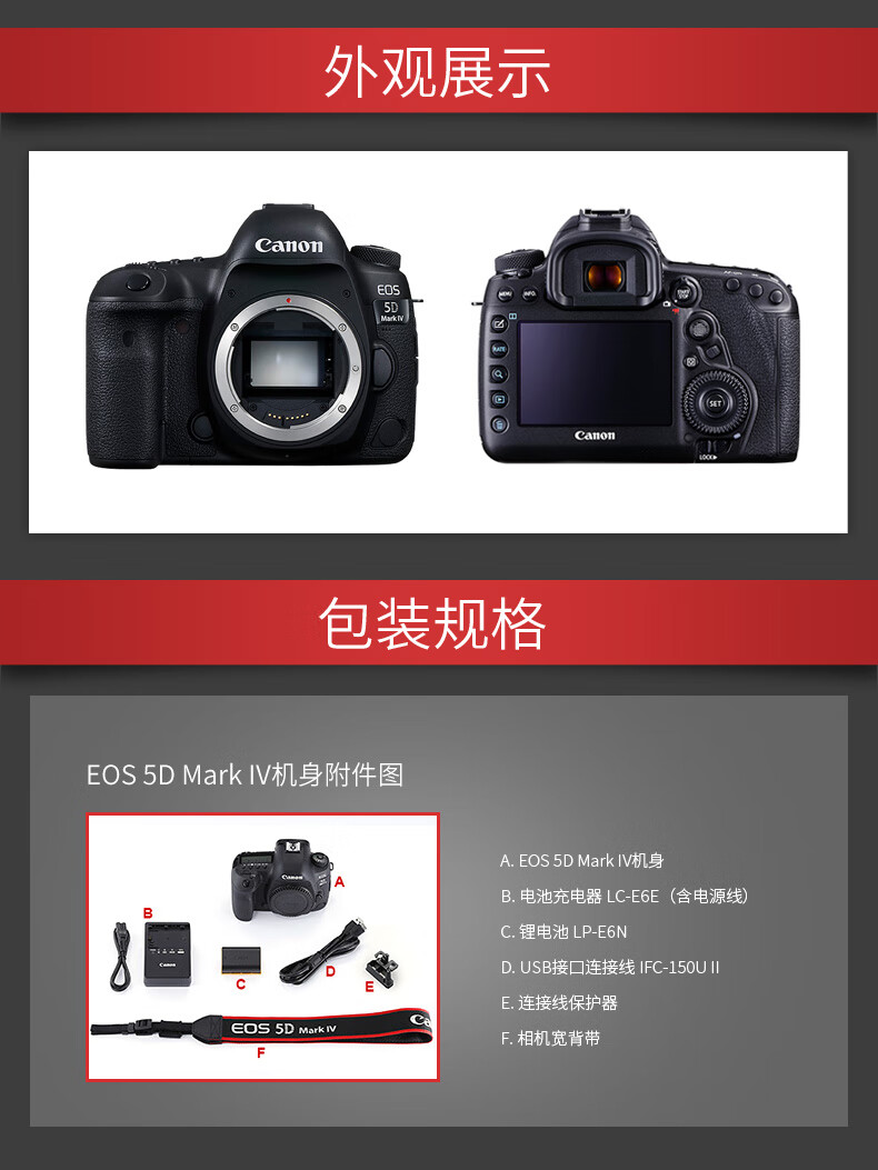 佳能EOS 5D Mark IV 机身/套机 5D4 全画幅 单反相机 5D Mark IV 套机 EF 24-105mm