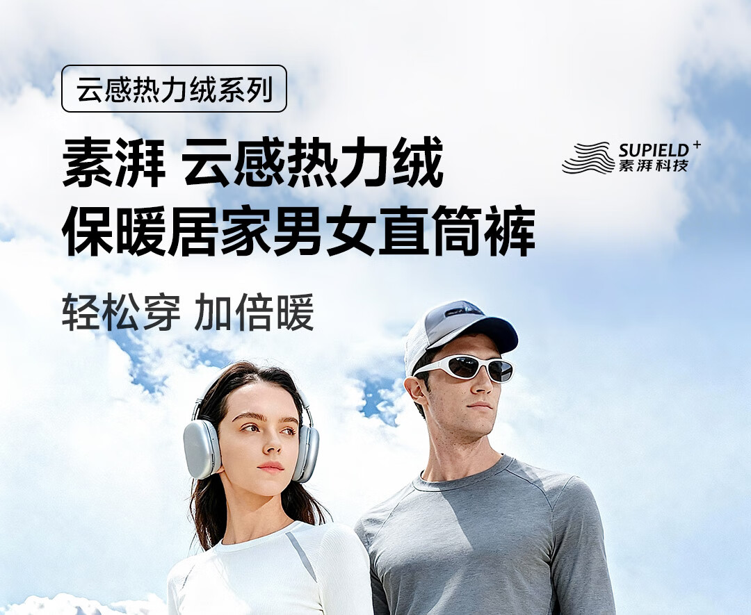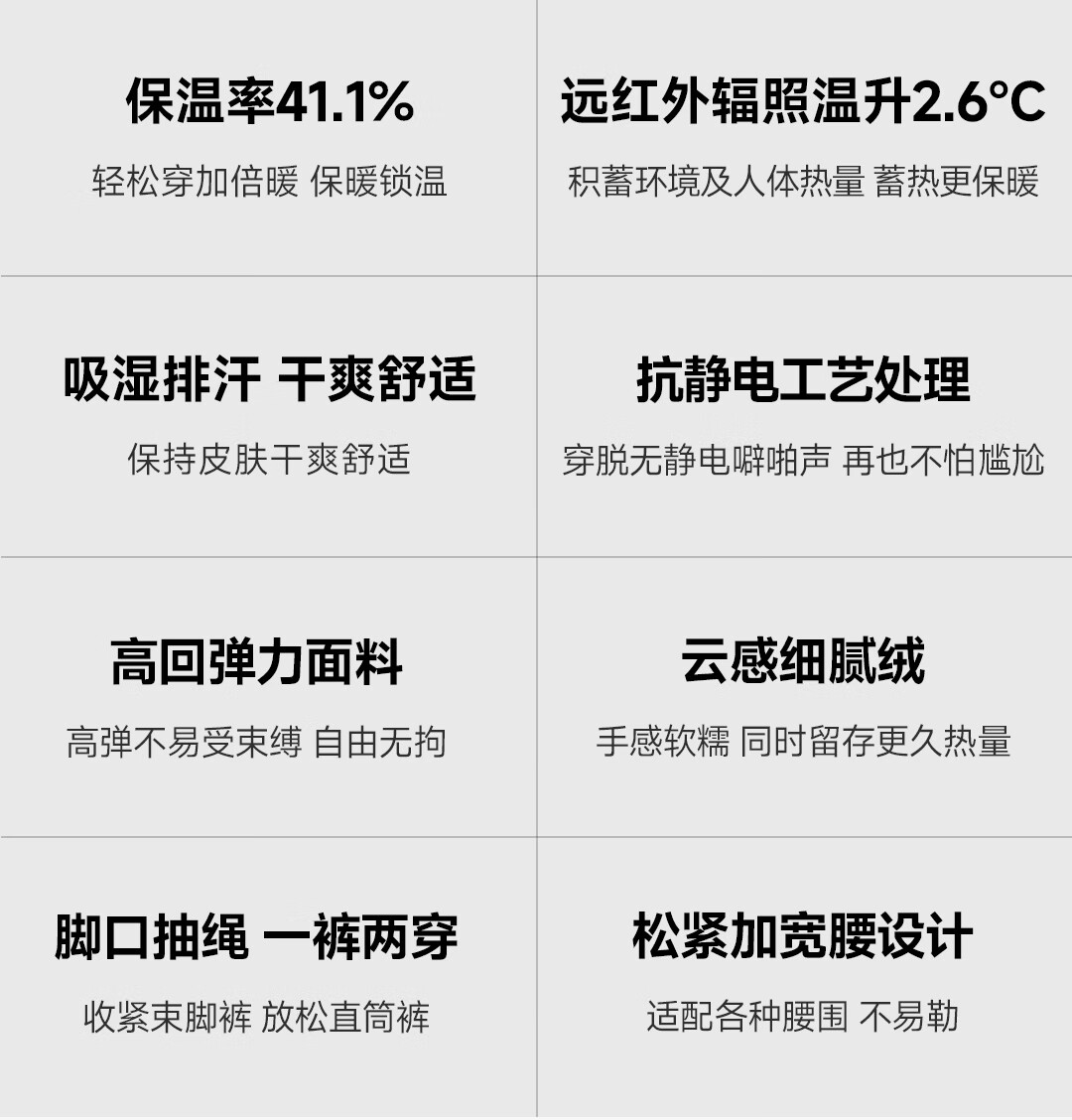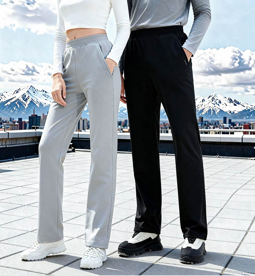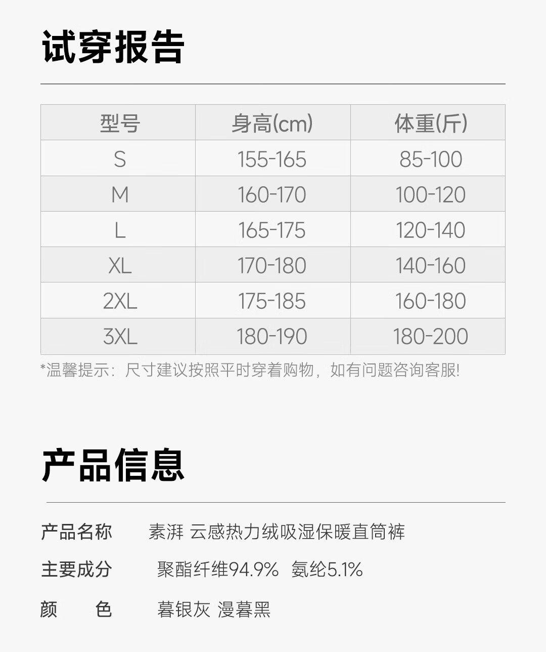 素湃云感热力绒保暖抓绒裤秋男女弹力吸湿干爽家居休闲裤 漫暮黑 2XL