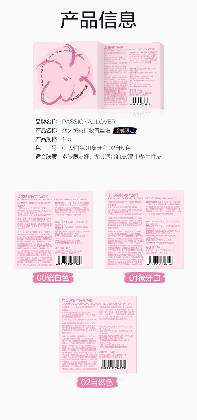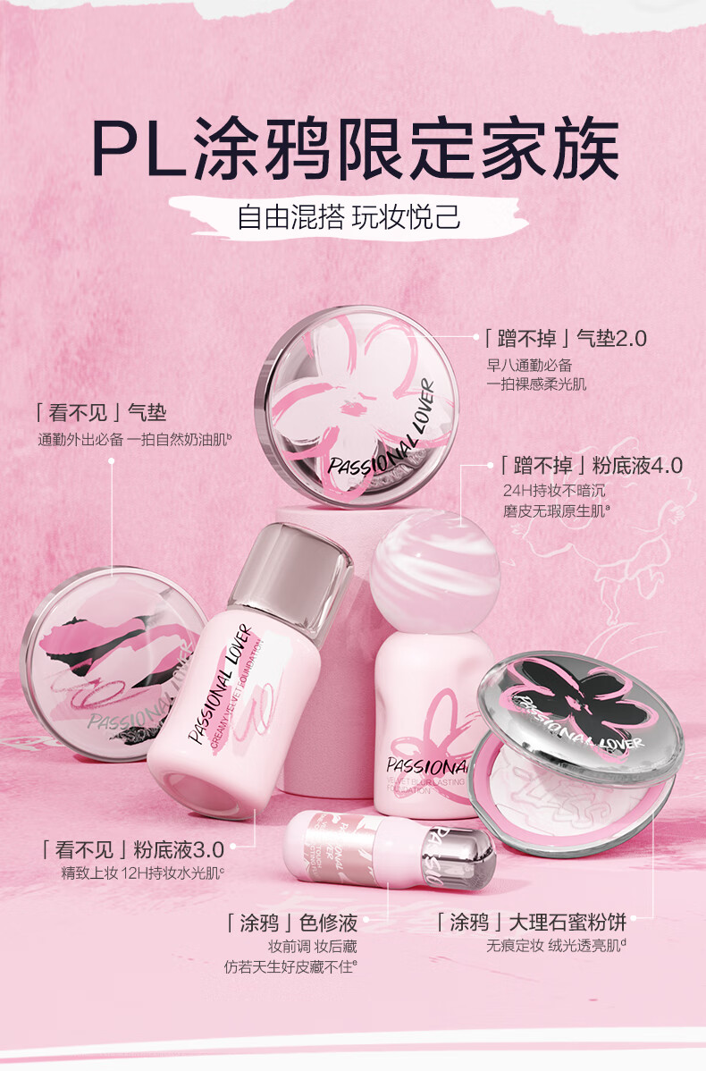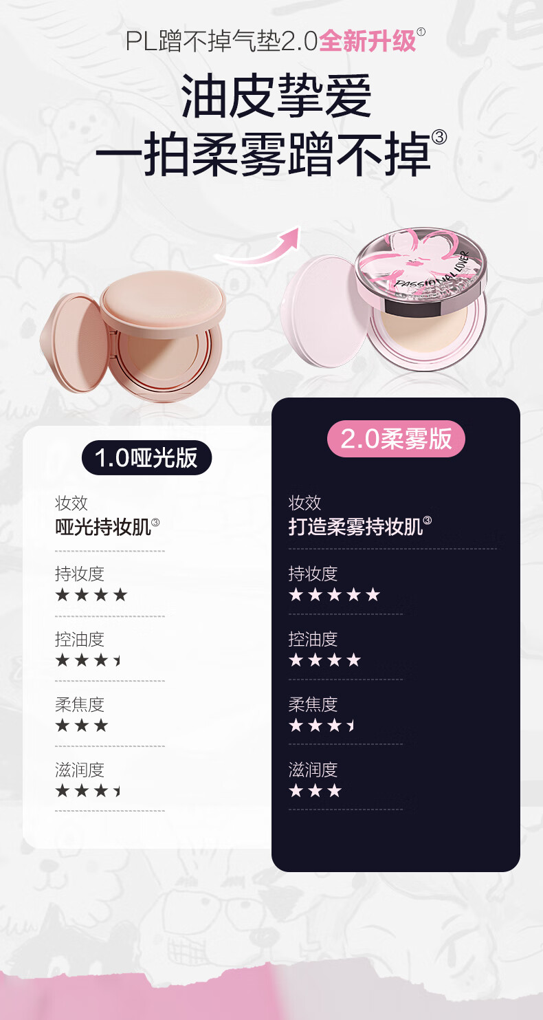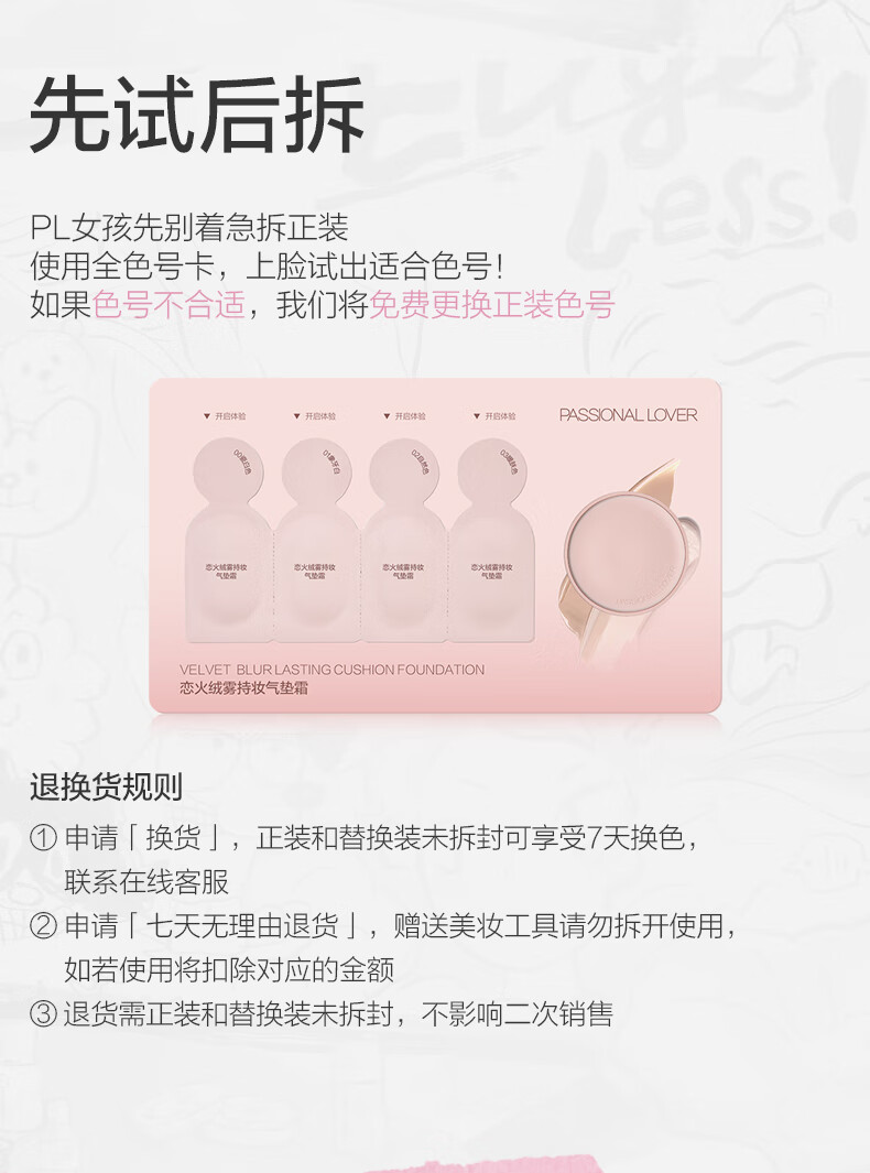恋火(Passional Lover)PL涂鸦限定蹭不掉气垫01色 粉底液遮瑕BB气垫霜 正装*1+替换装*2