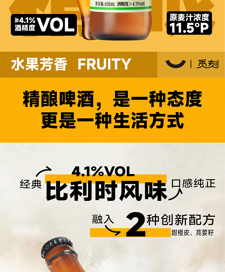 觅刻比利时小麦精酿白啤酒全麦原浆水果香450ml*12瓶浓郁麦香口感丰富