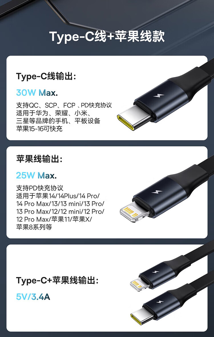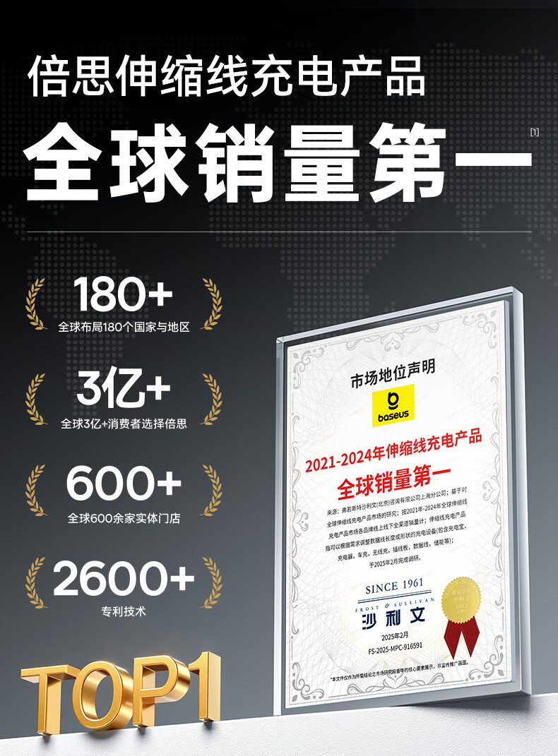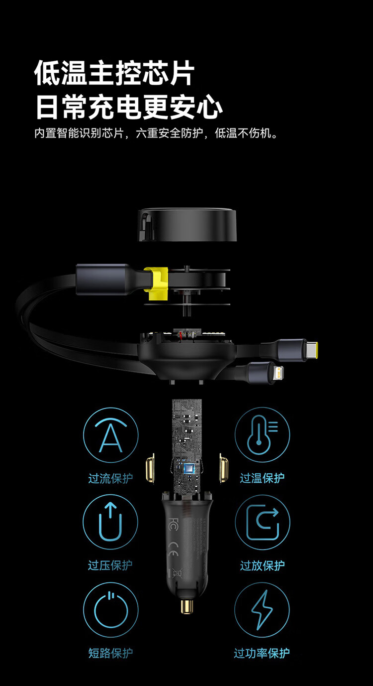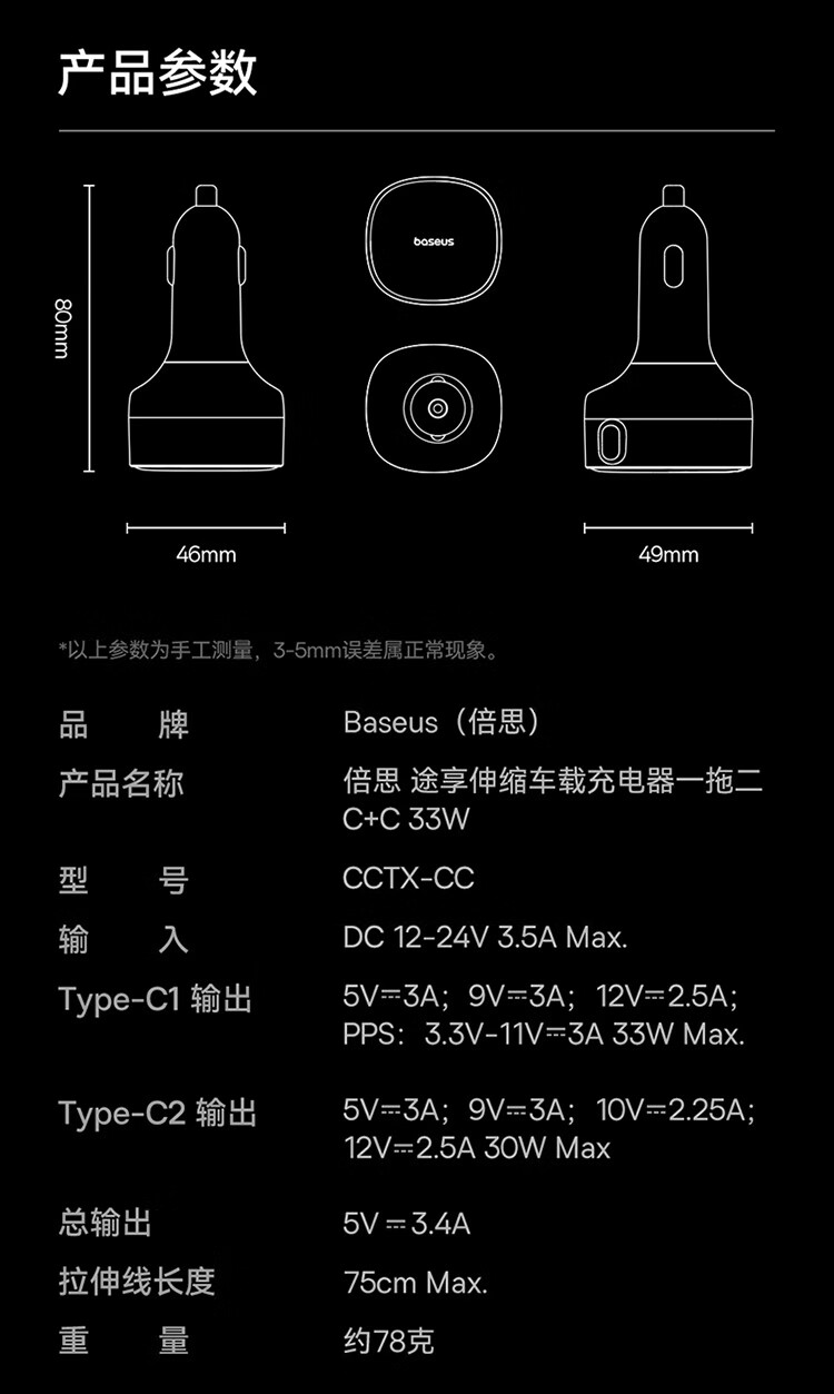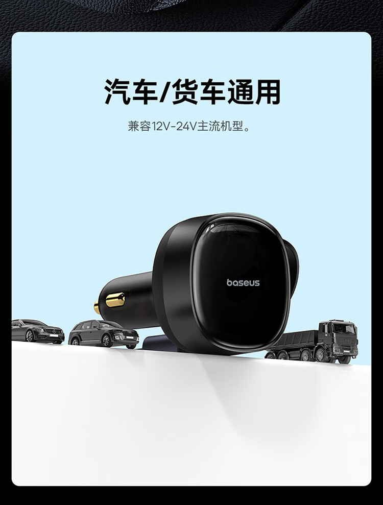 倍思车载充电器伸缩一拖二点烟器自带线超级快充适用苹果华为小米
