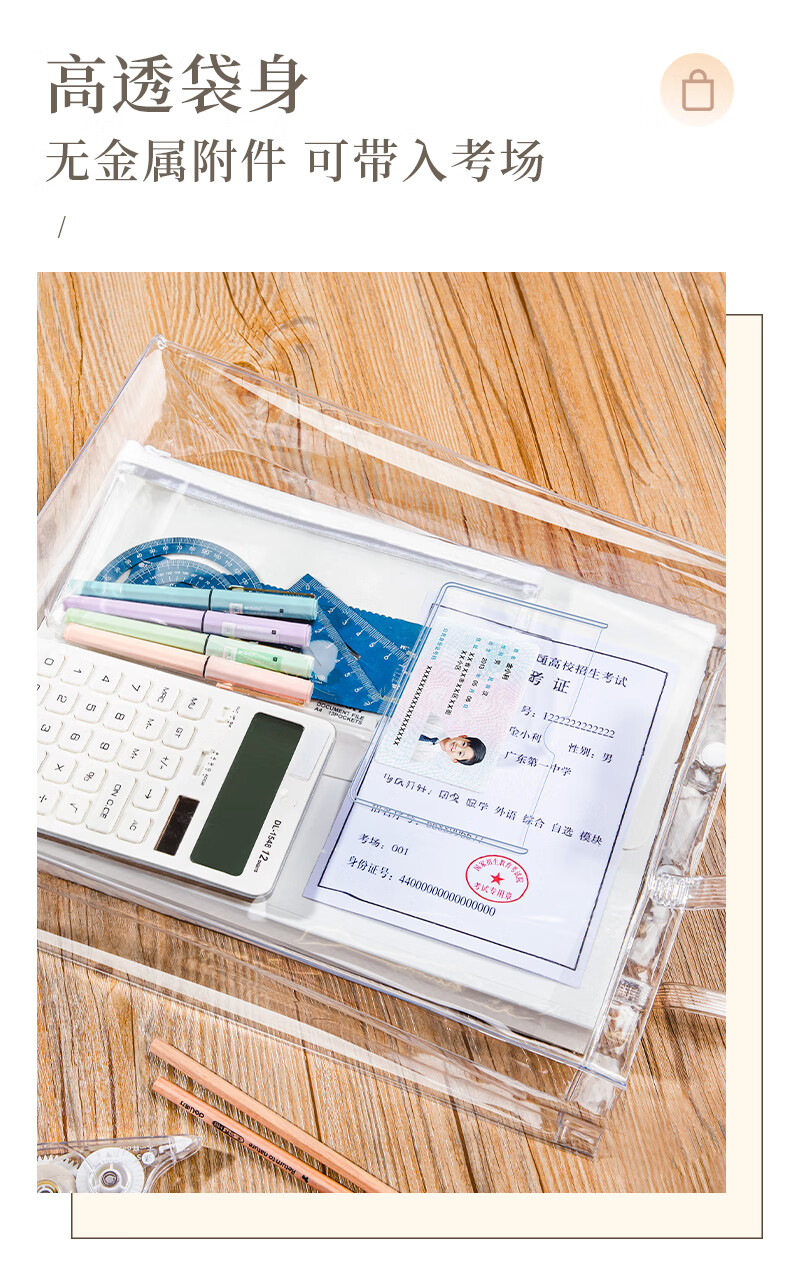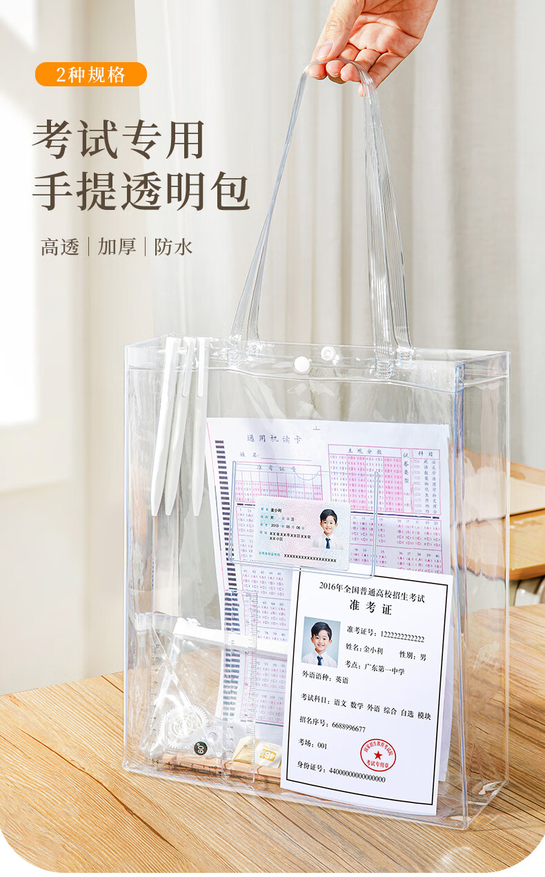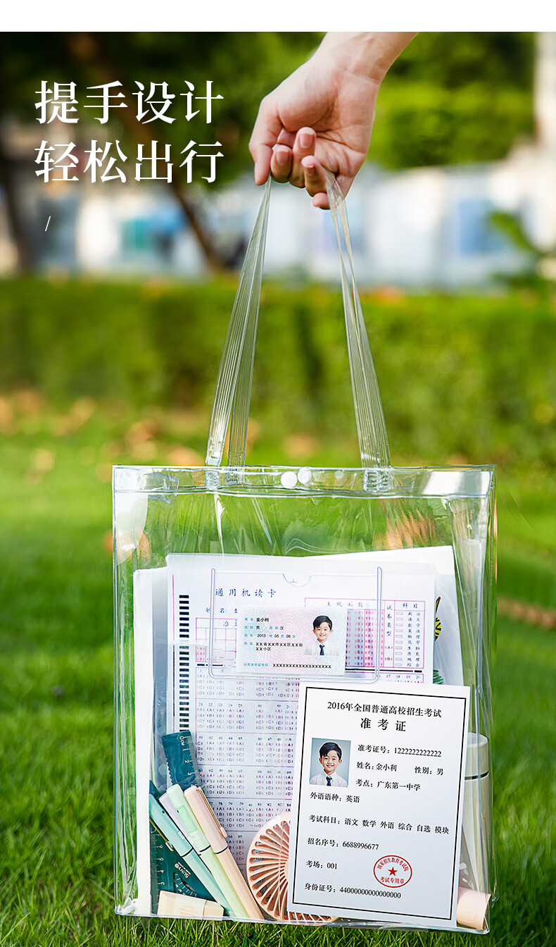 金得利考试必备透明袋子手提袋学生文件袋收纳袋中考文具考试袋补习包补习袋小学生美术袋作业袋FB9856