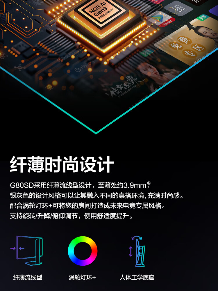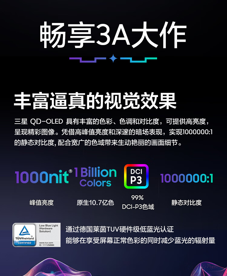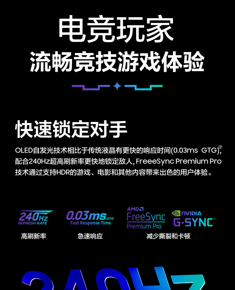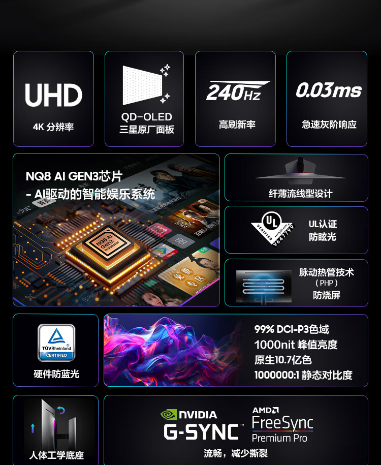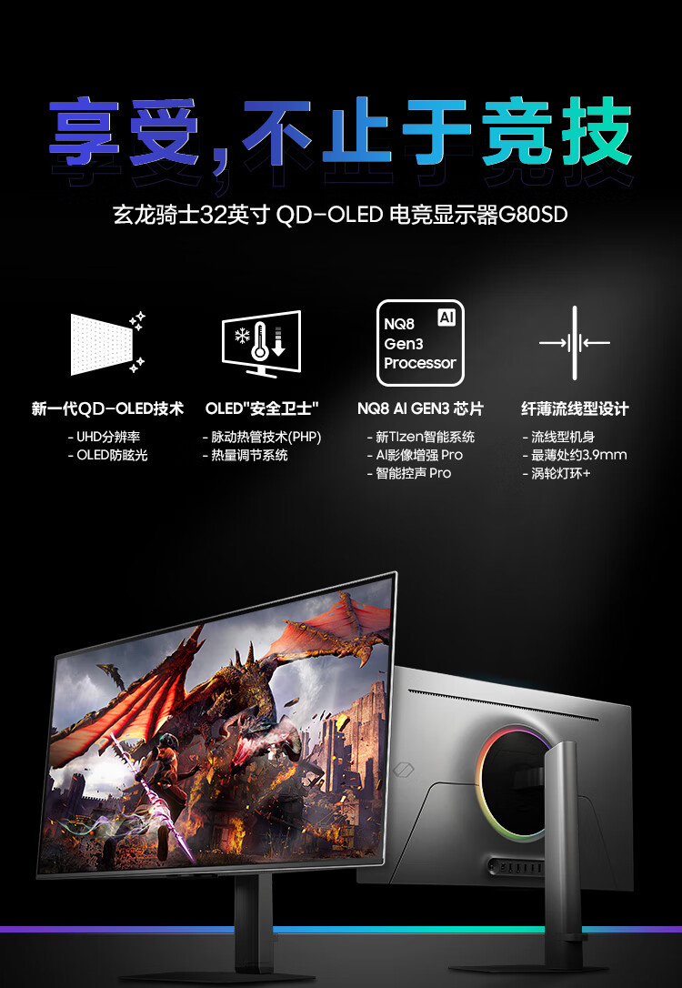 三星(SAMSUNG)32英寸 G80SD QD-OLED 4K 240Hz 0.03ms 防眩光超薄设计AI系统 玄龙骑士电竞显示器LS32DG802SCXXF