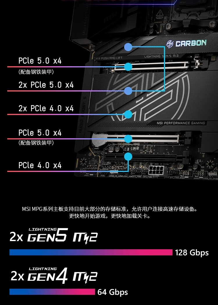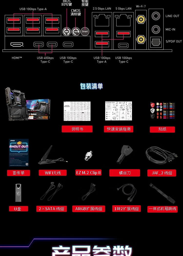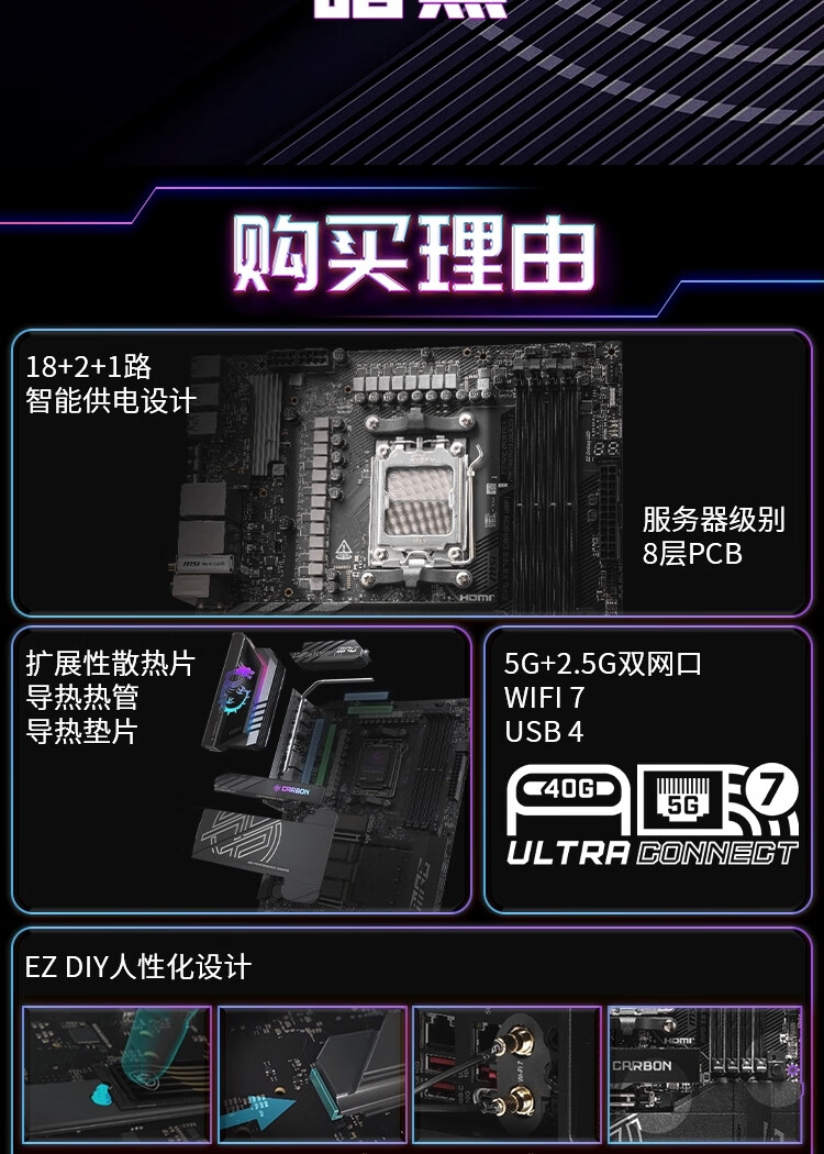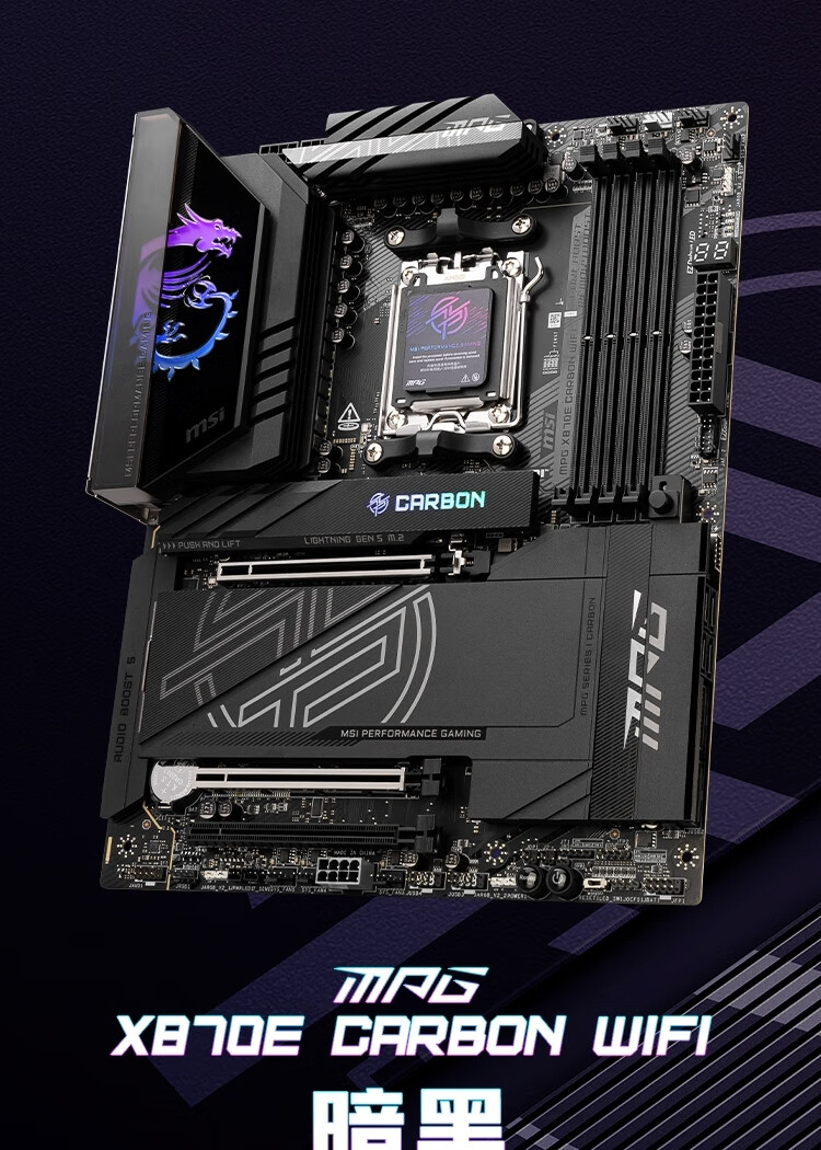 微星(MSI)MPG X870E CARBON WIFI 暗黑主板 支持CPU 9900X3D/9950X3D/9800X3D(AMD X870/socket AM5)