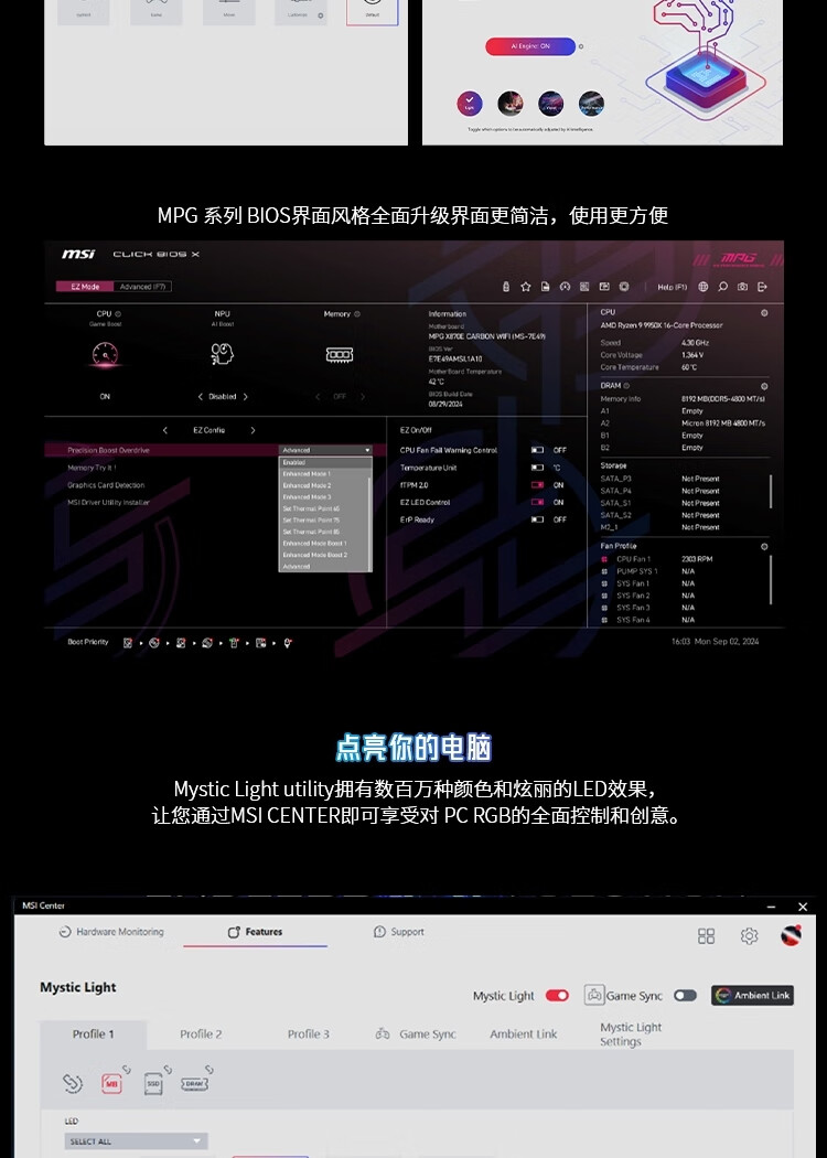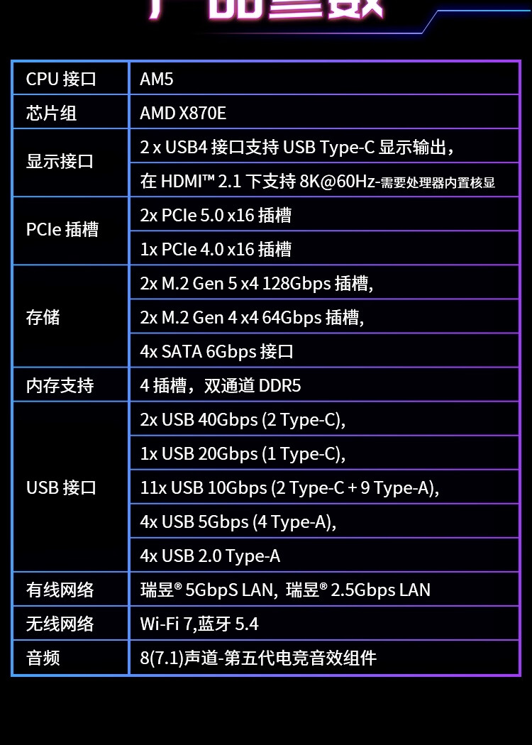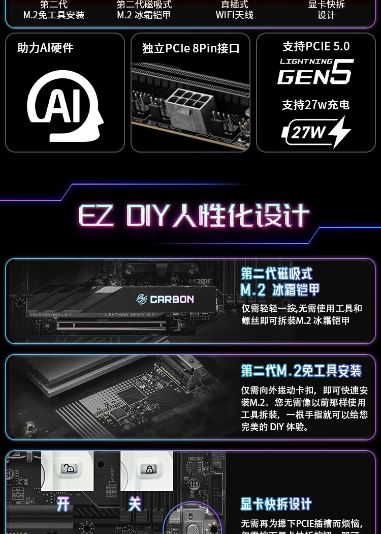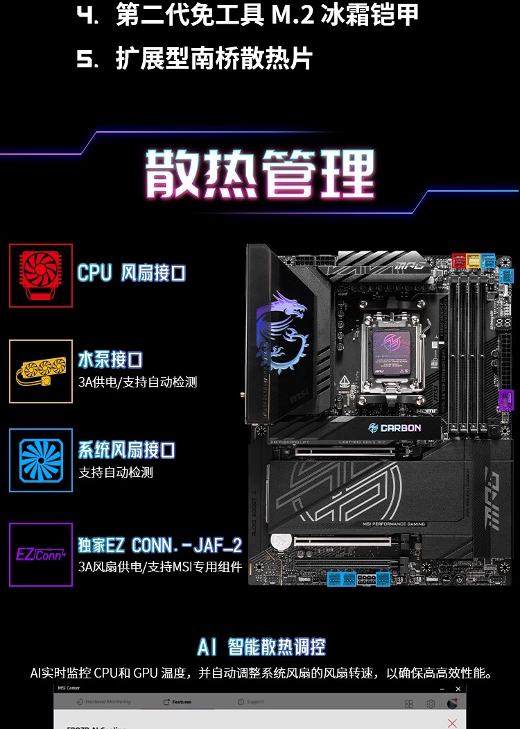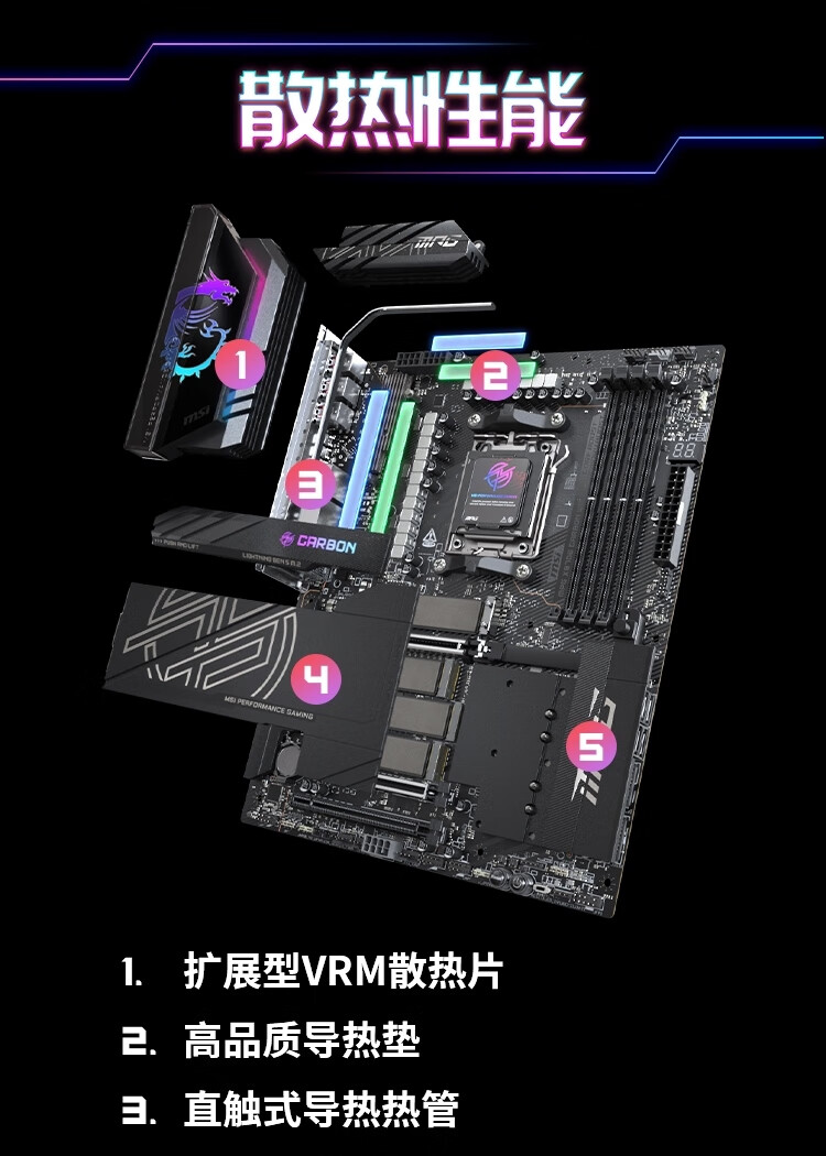 微星(MSI)MPG X870E CARBON WIFI 暗黑主板 支持CPU 9900X3D/9950X3D/9800X3D(AMD X870/socket AM5)