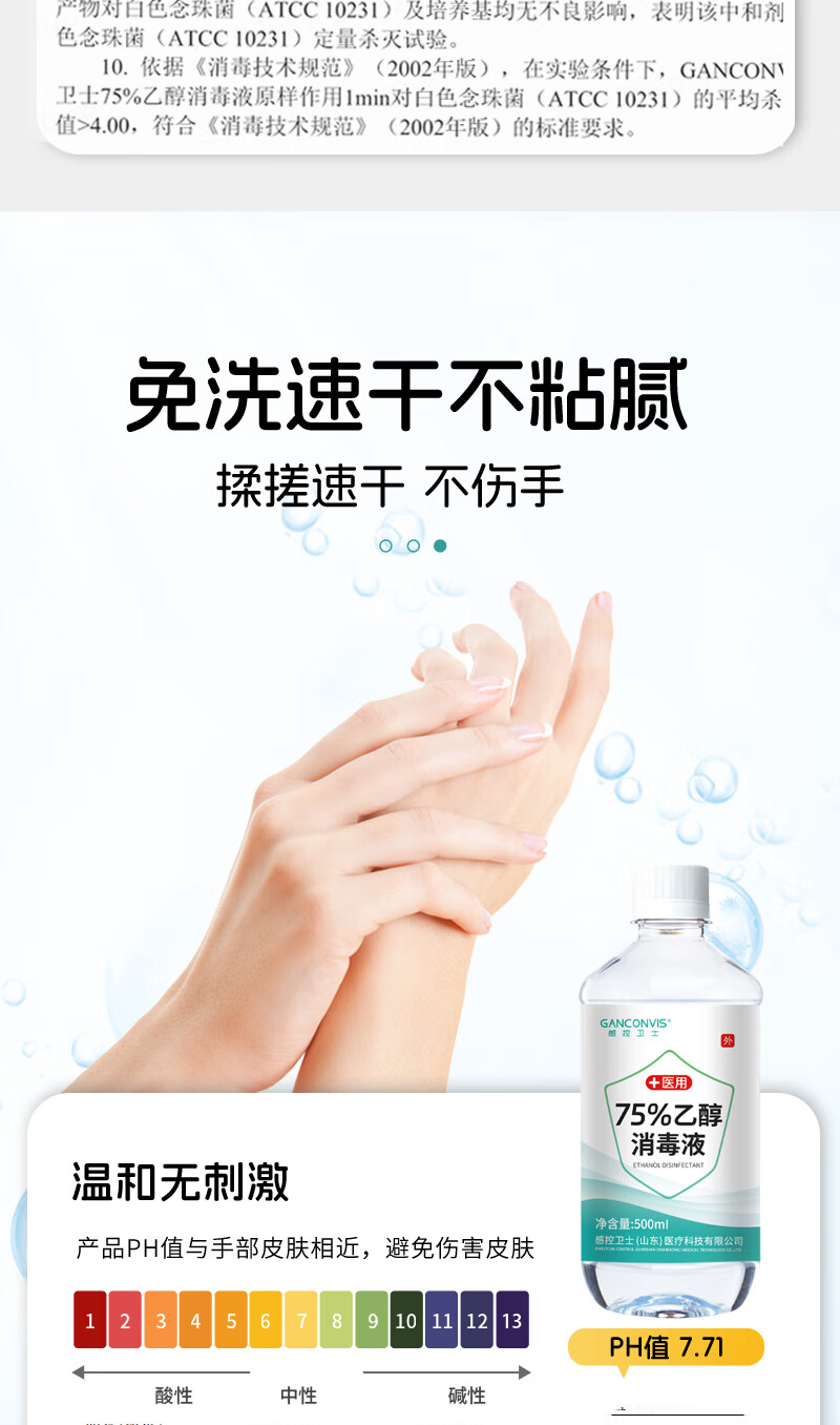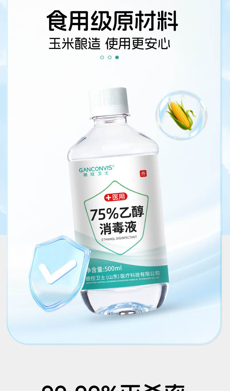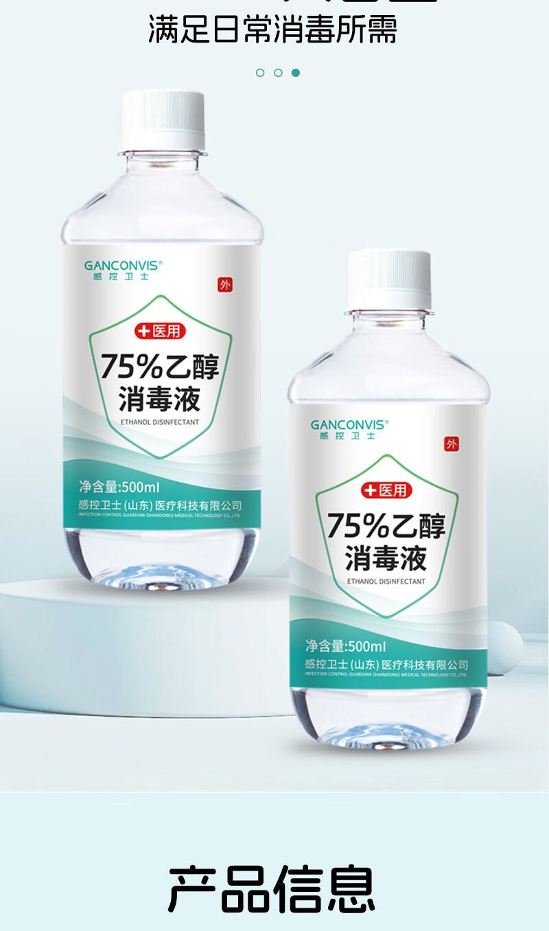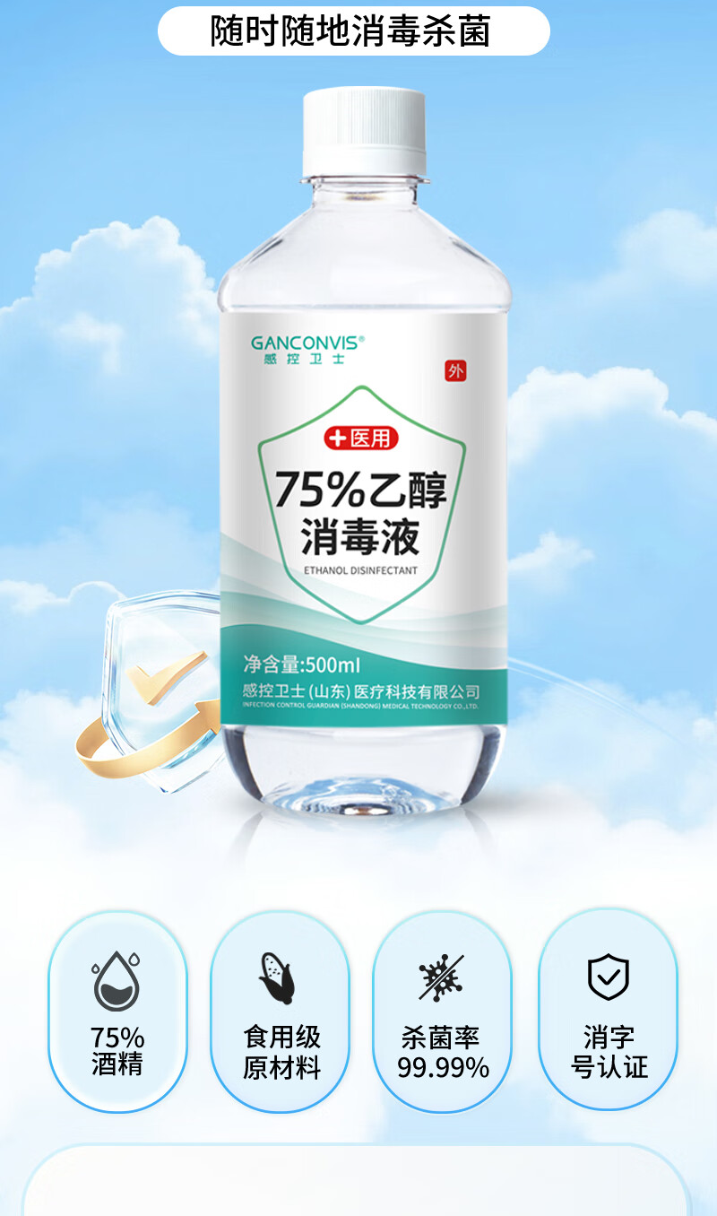 GANCONVIS医用酒精75%消毒液500ml乙醇酒精喷雾替换装皮肤物品清洁消毒