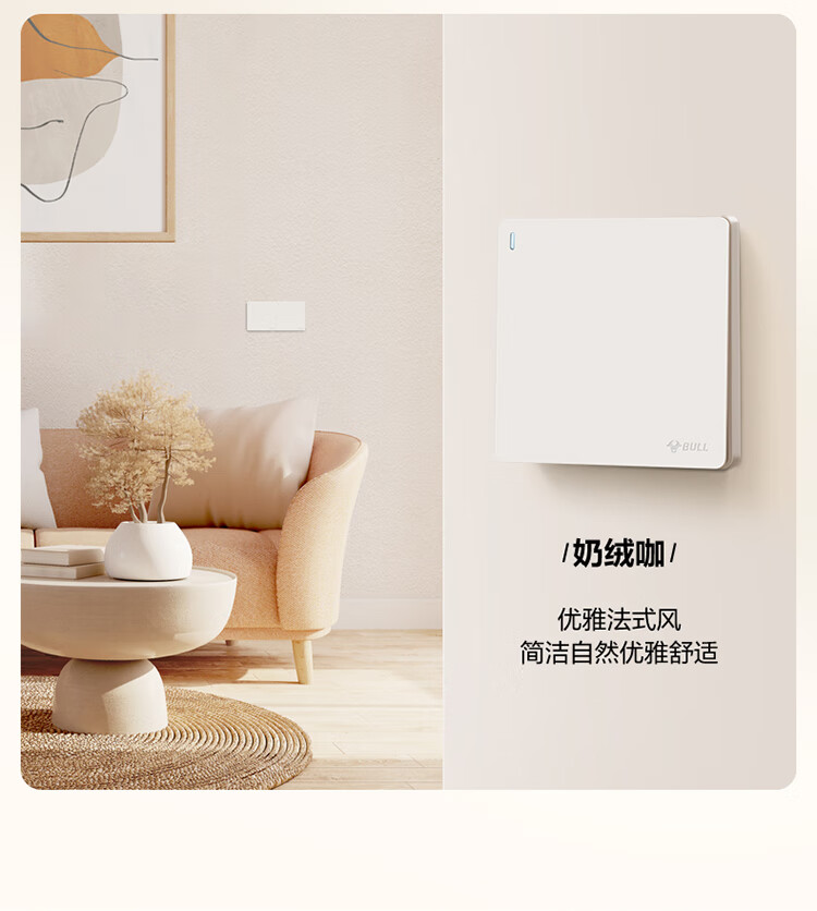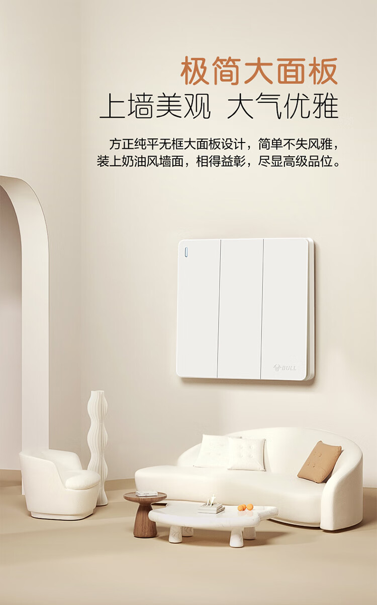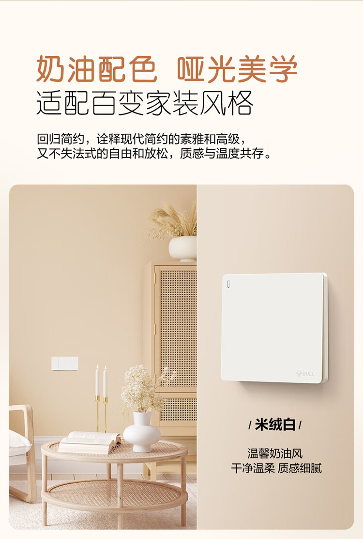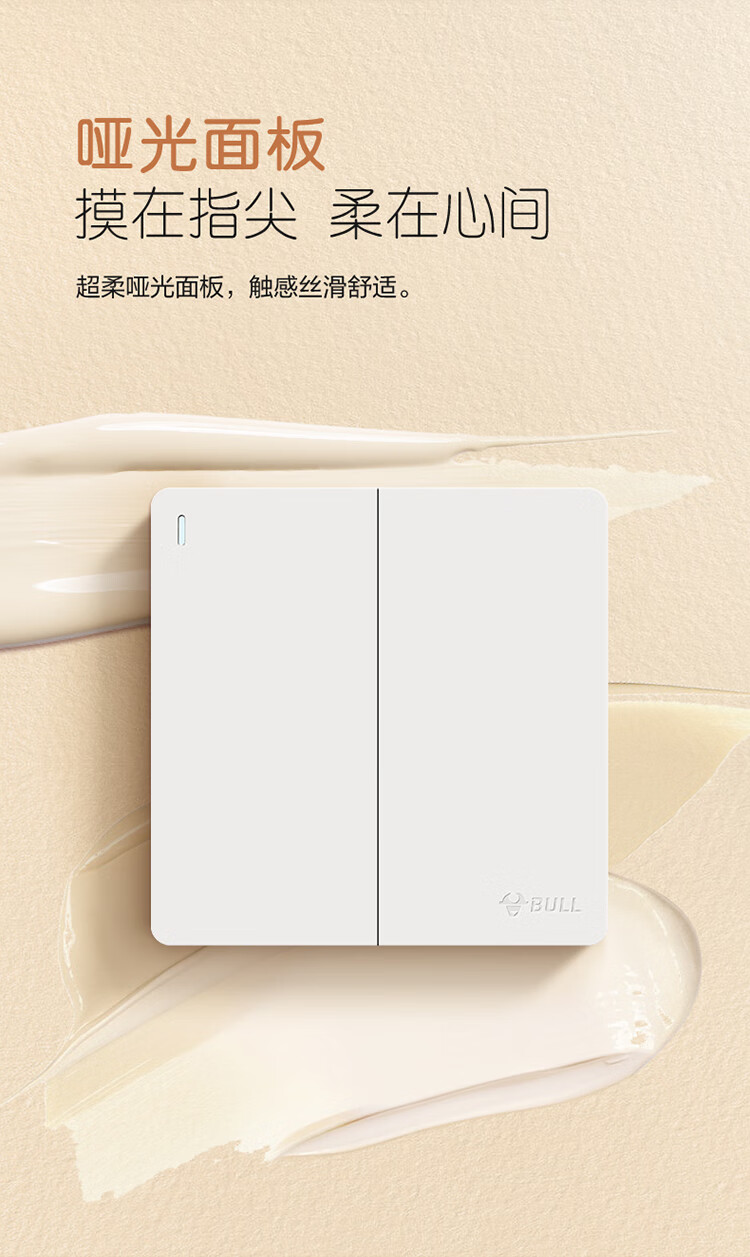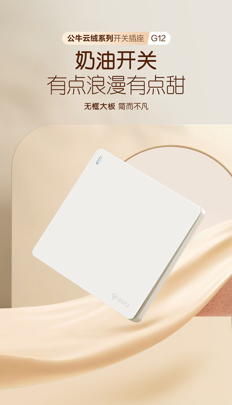公牛(BULL)开关插座G12肤感哑光奶油风一开双控开关大面板开关G12K112米绒白