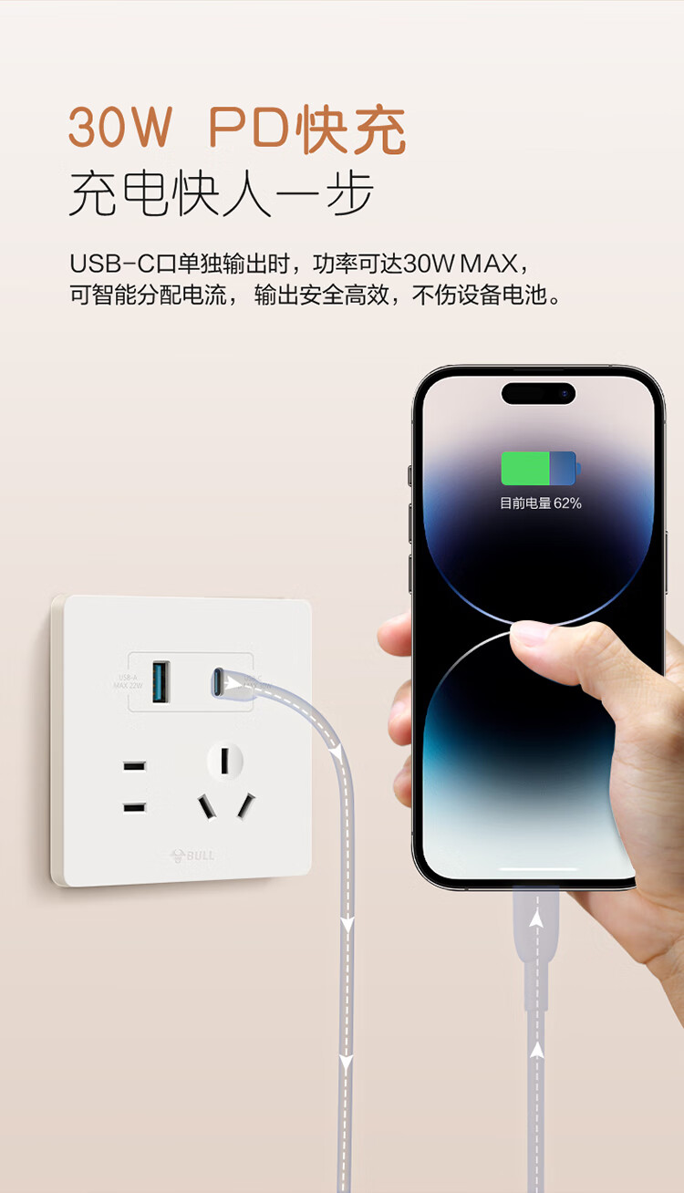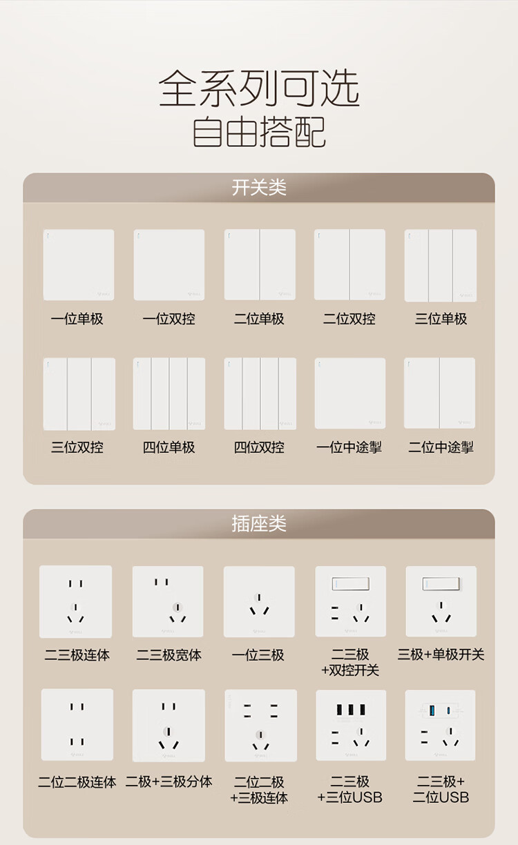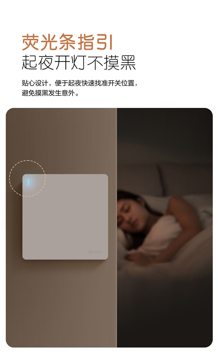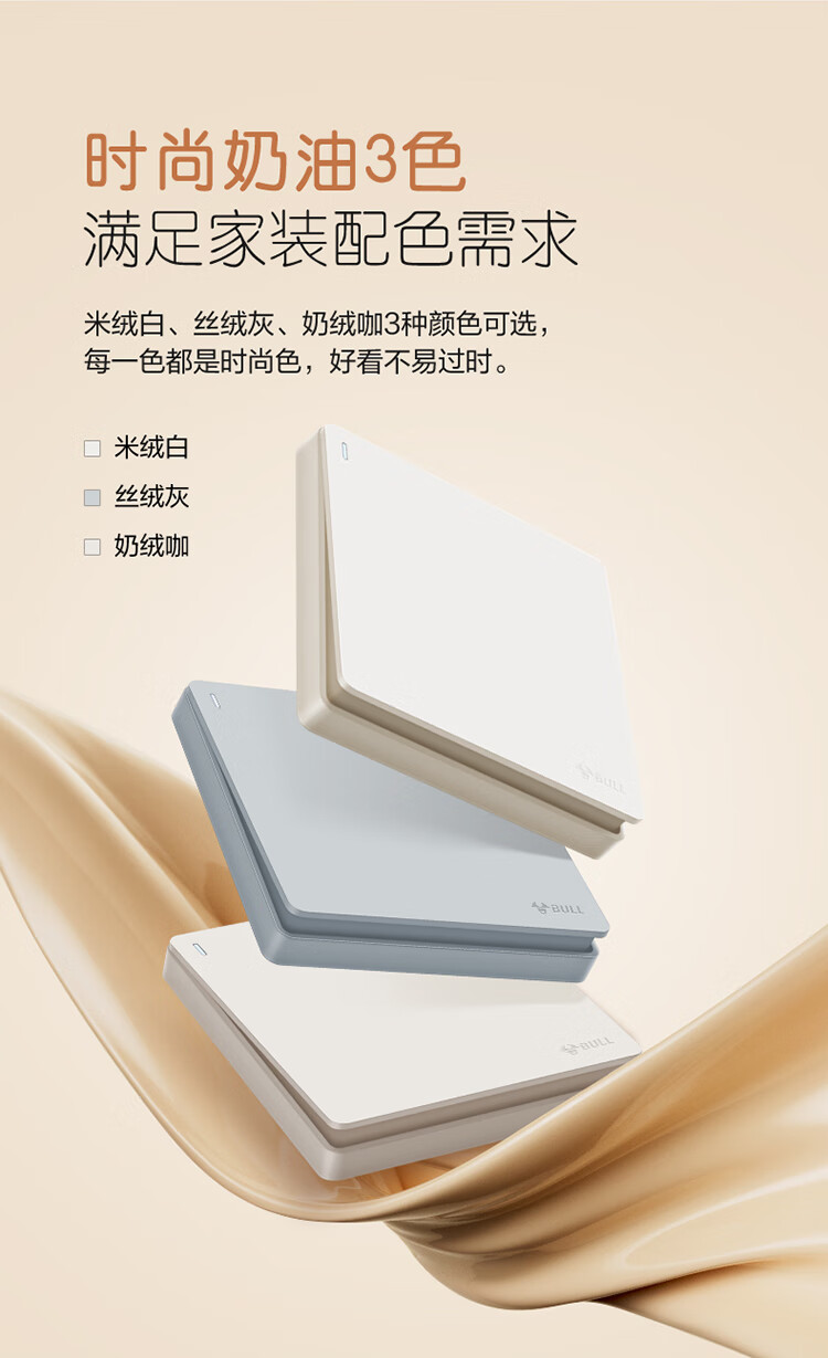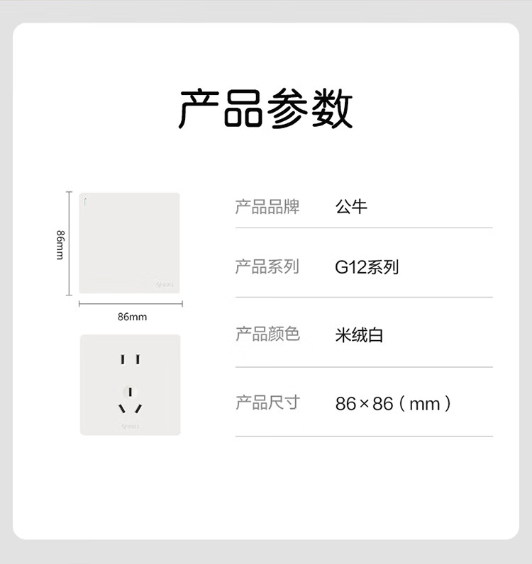 公牛(BULL)开关插座G12肤感哑光奶油风一开双控开关大面板开关G12K112米绒白