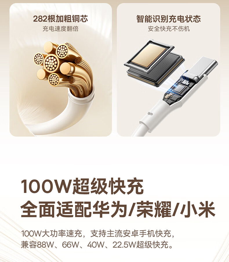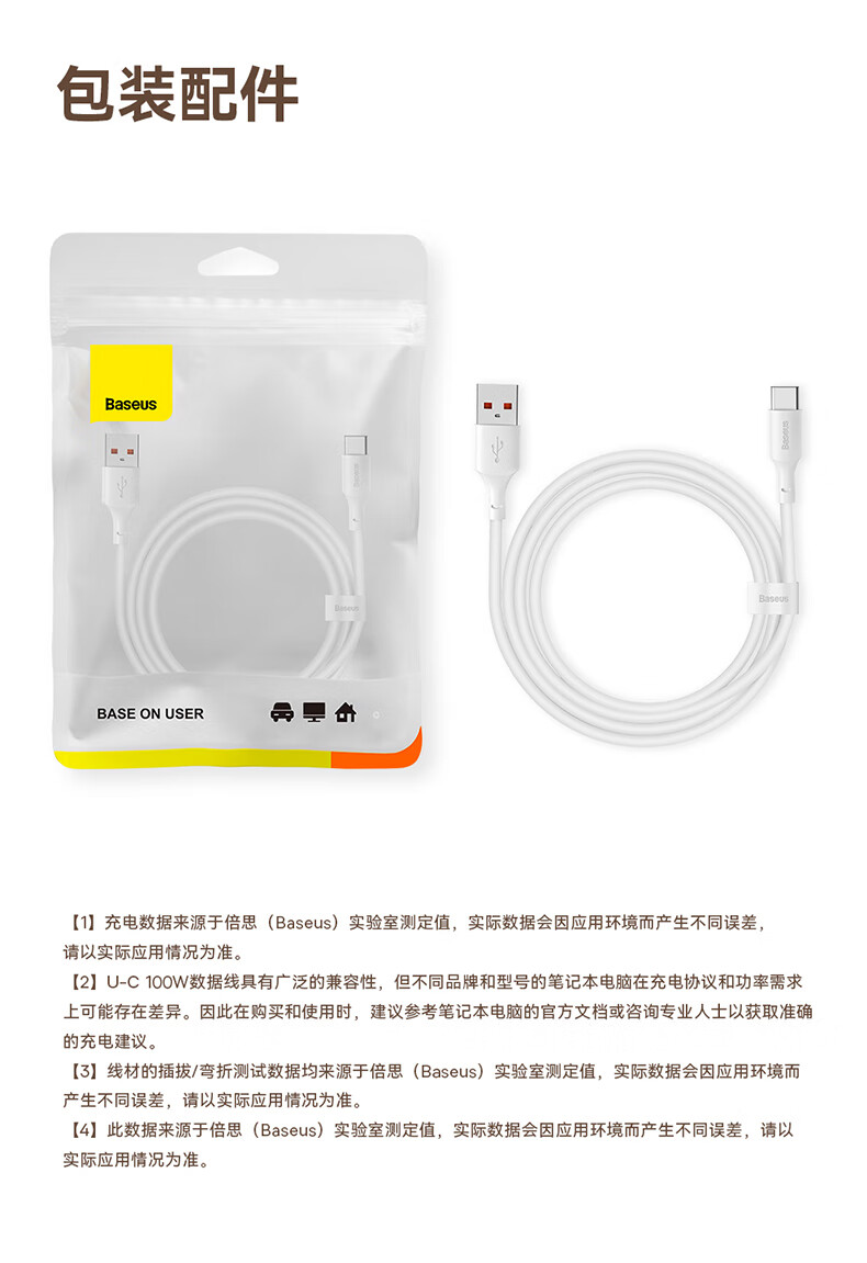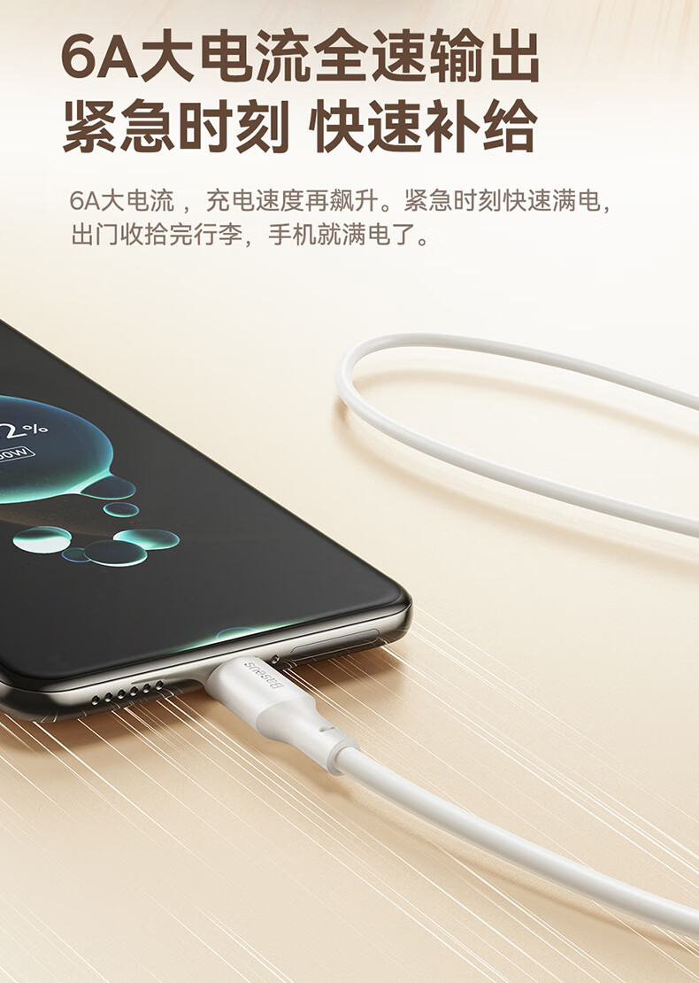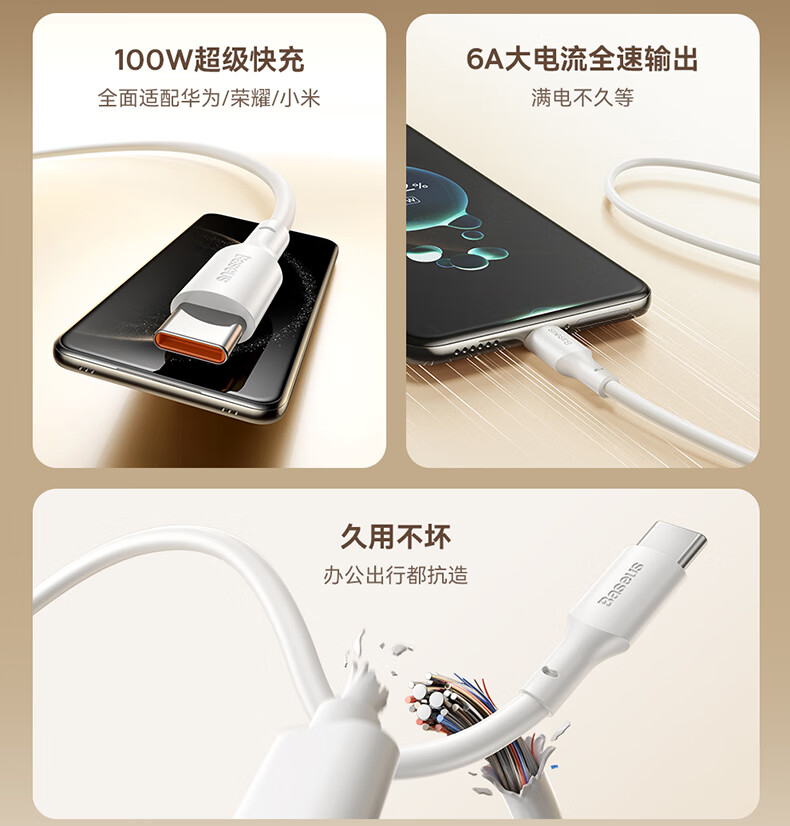 倍思Type-c数据线6A超级快充100W/88W/66W/40W适用华为荣耀小米安卓手机平板充电Pura70/Mate70/60 1米