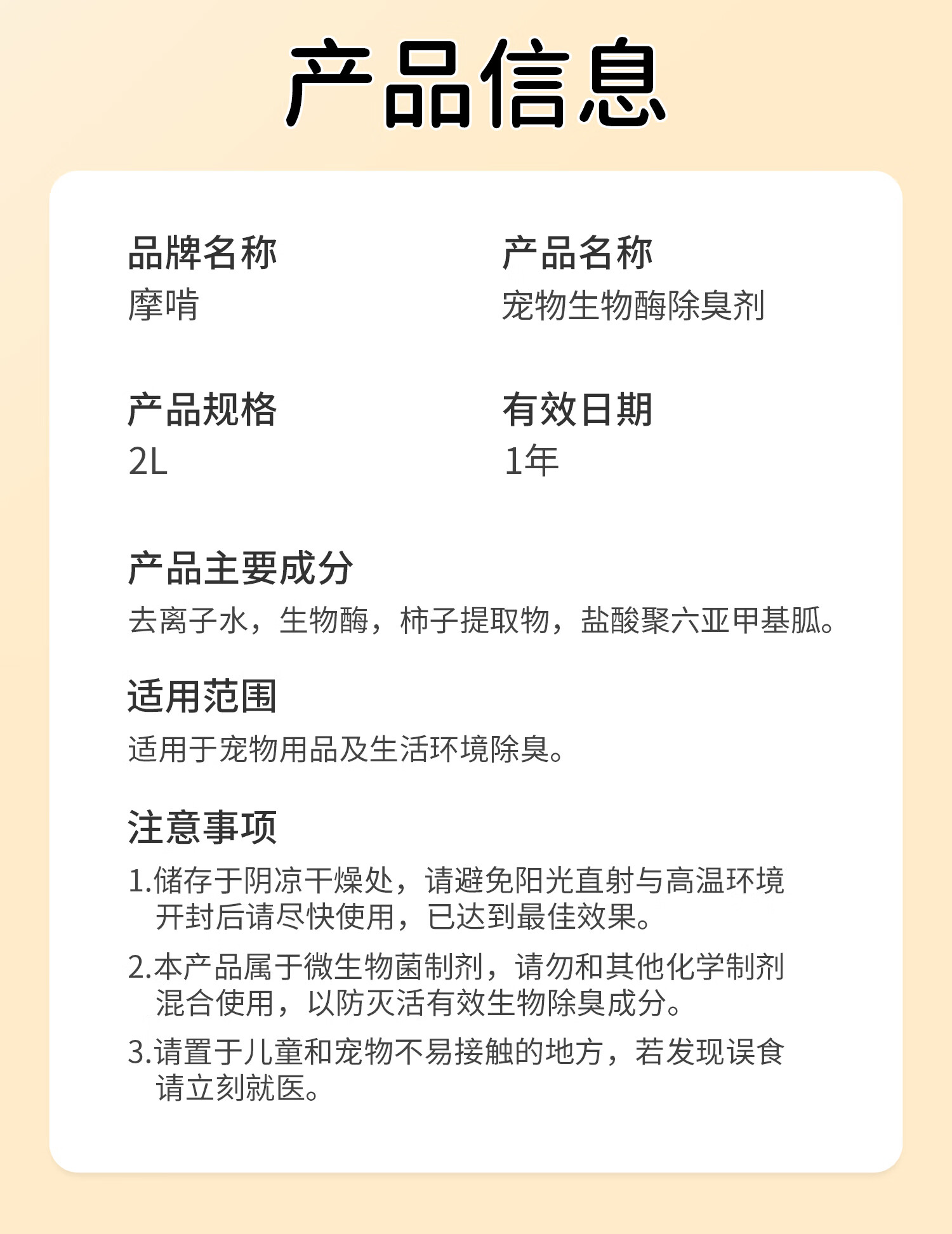 摩啃生物酶宠物除臭剂大桶装狗狗猫咪去尿味喷雾除味剂【2L+300ml】