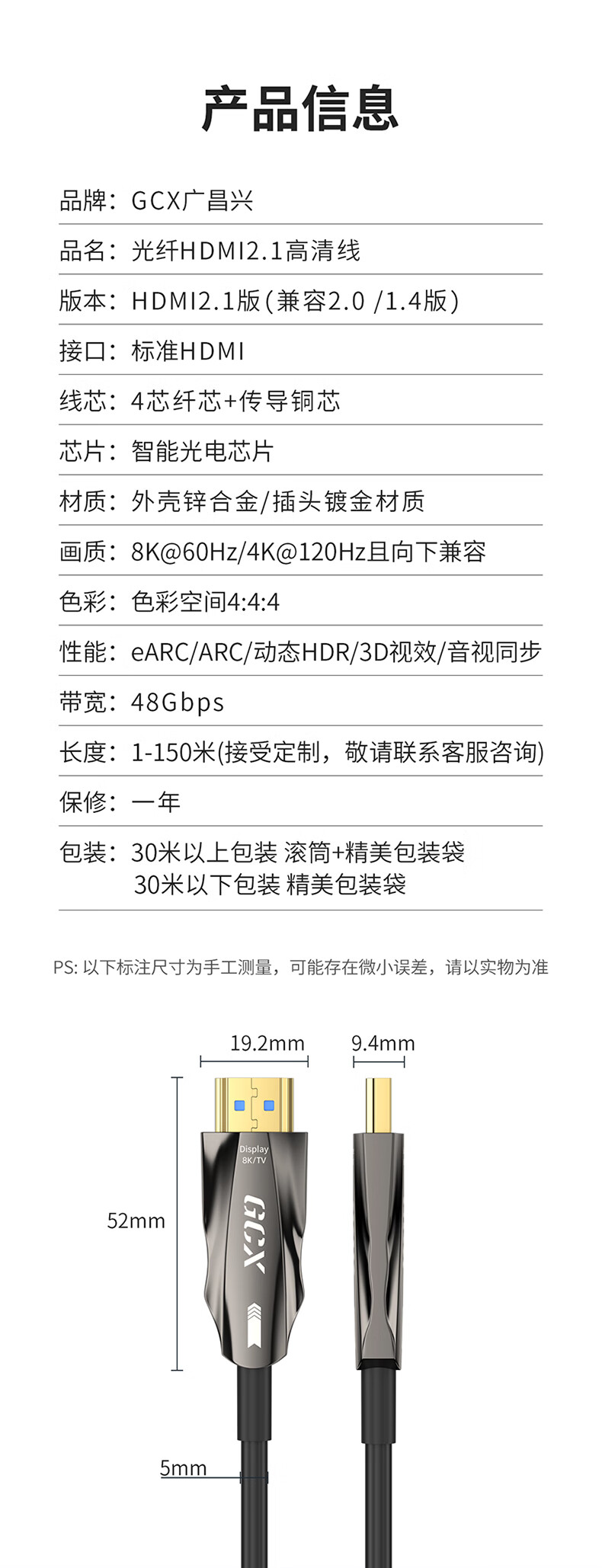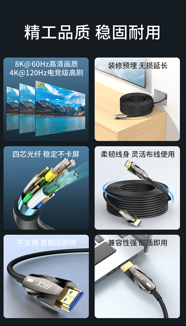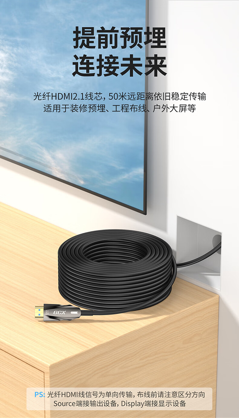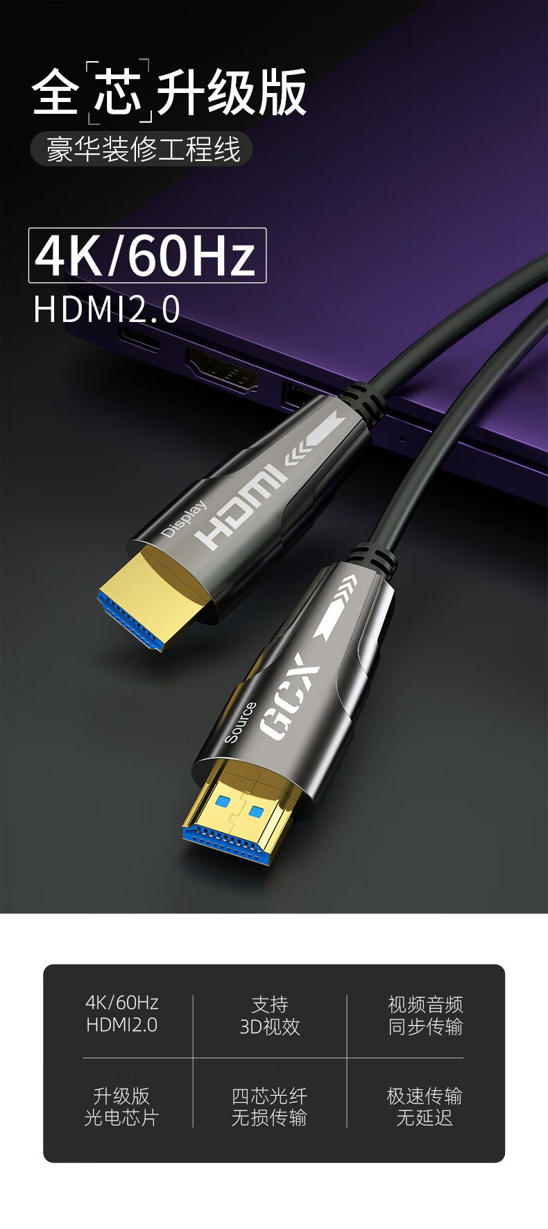 广昌兴(G.C.X) 光纤HDMI线2.0版4K发烧级高清穿管线适用于笔记本电脑电视投影仪家庭影院视频线工程装修连接线 2.1版-8K光纤线 25米